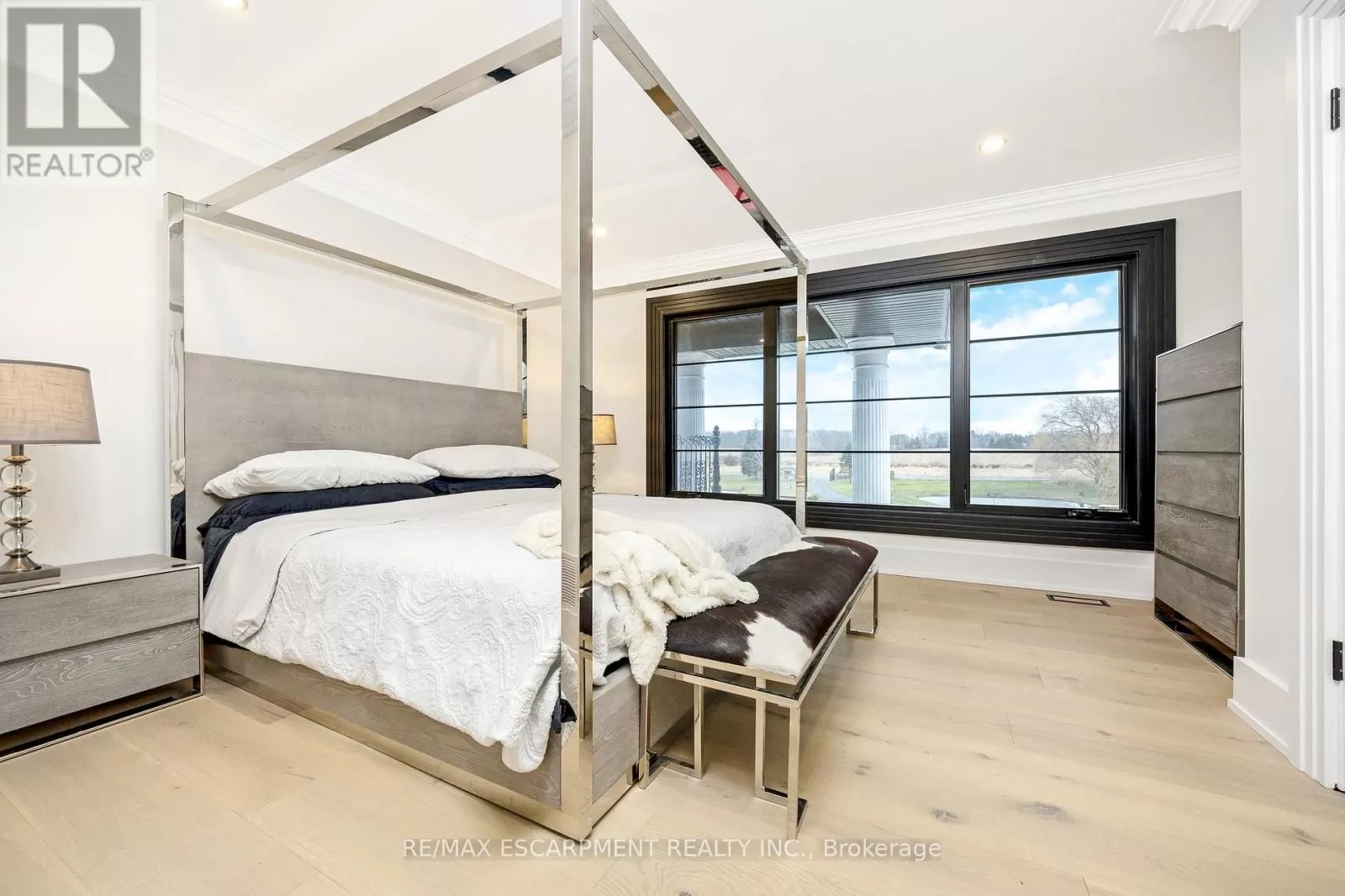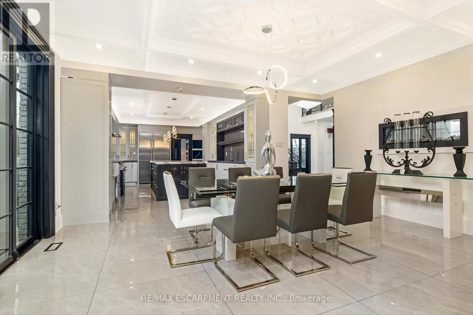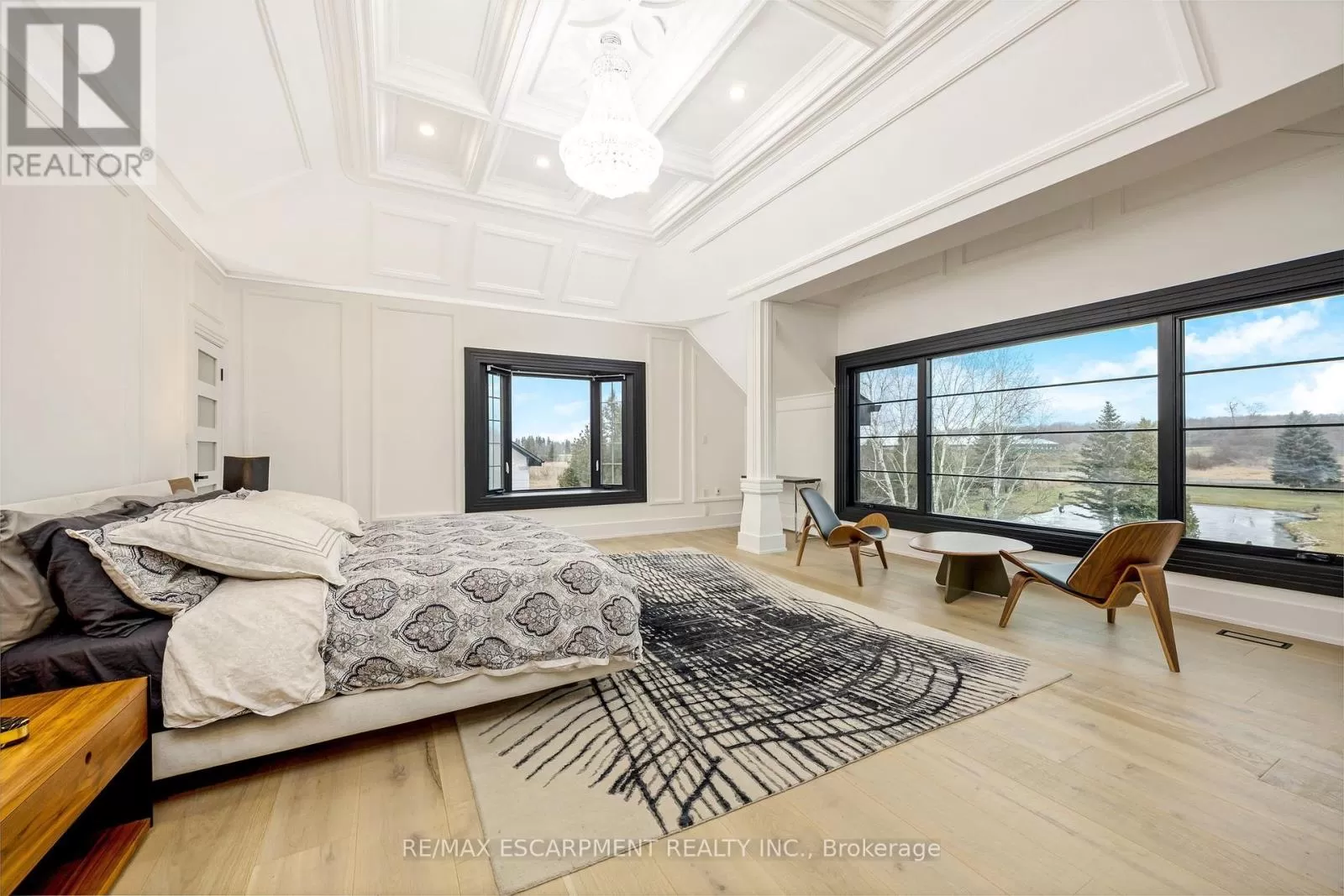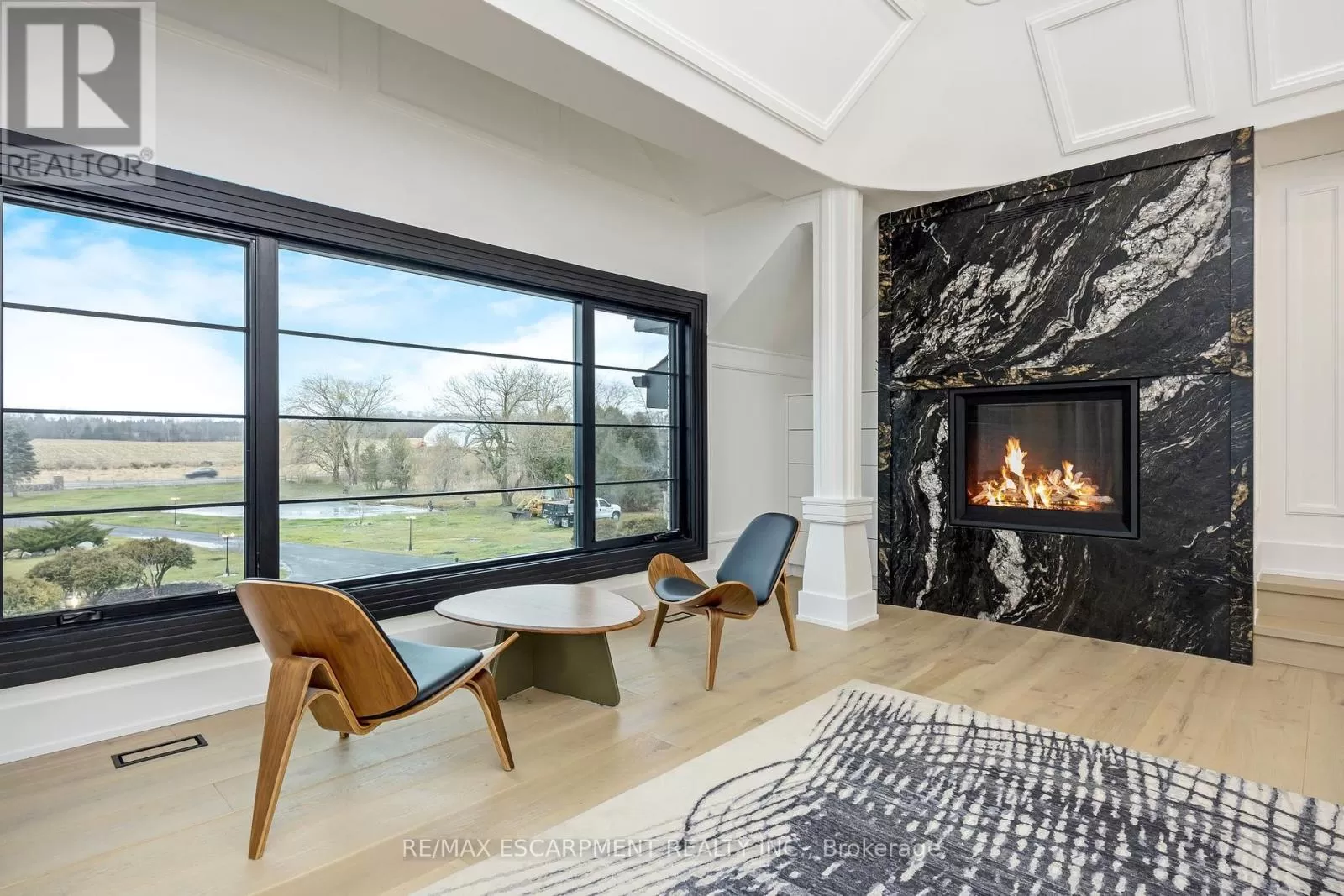North of the 401, Guelph Line and 20 Side Road Step into a world of opulence and sophistication with this extraordinary estate, a true architectural masterpiece offering over 9,000 square feet of exquisite living space. Located in Campbellville, this 10-bedroom, 8-bathroom residence redefines luxury living with impeccable design, craftsmanship, and attention to detail. Crown moldings throughout the house, accentuating the timeless elegance of the interiors. The expansive living spaces feature soaring high ceilings, five custom fireplaces, and an abundance of natural light streaming through oversized windows, designed for the ultimate entertainer, this estate boasts four state-of-the-art kitchens, including a primary chef's kitchen with professional-grade appliances, custom cabinetry, and an oversized island. Whether hosting an intimate gathering or a grand soirée, this home offers unmatched versatility and style. The property includes a private guest house and a thoughtfully designed in-law suite, perfect for accommodating extended family or visitors in comfort and privacy. Outdoor living is equally impressive, with manicured grounds ideal for relaxation or entertainment. The8-car garage provides ample space for a car enthusiast's collection, while the home's multiple balconies and patios create seamless indoor and outdoor flow along side the massive indoor pool. UPPER LEVEL IS REFERRING TO THE GUEST HOUSE (2 BEDS, 1 BATH, 1 KITCHEN). LUXURY CERTIFIED. (id:27476)