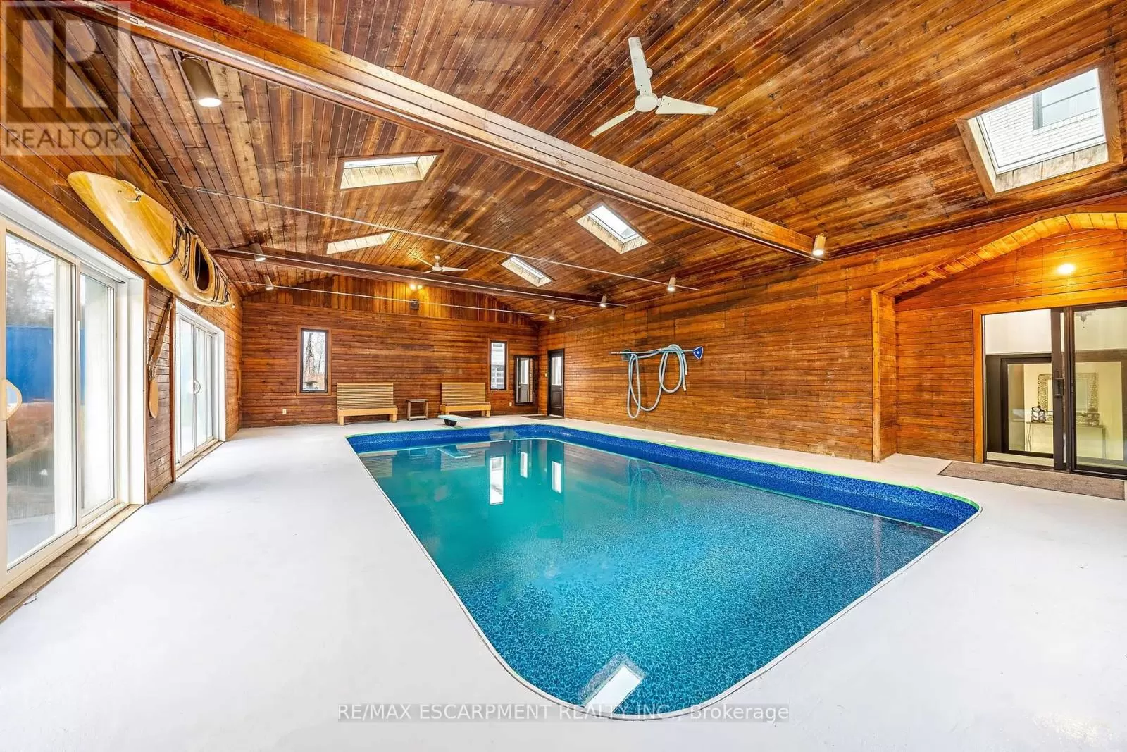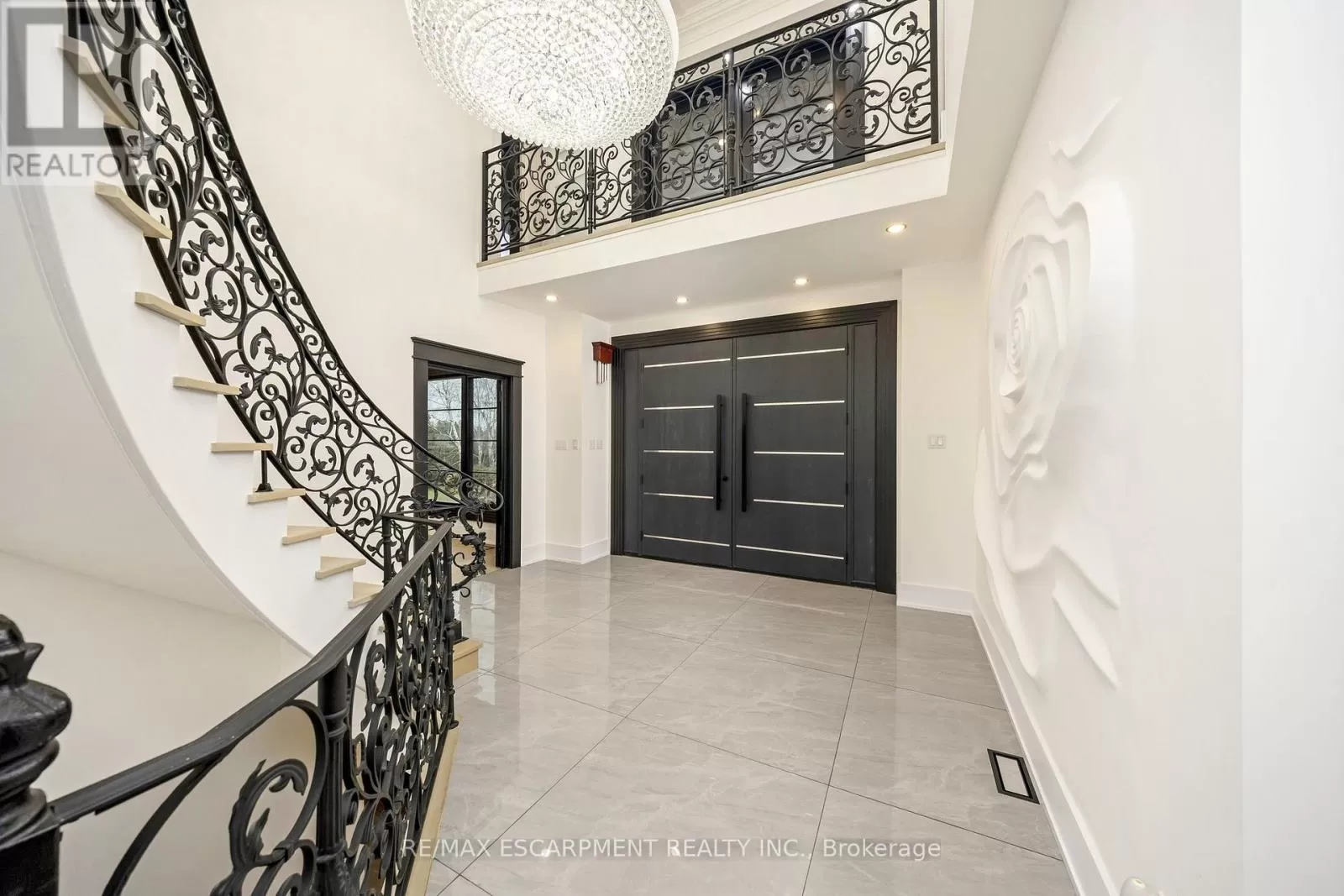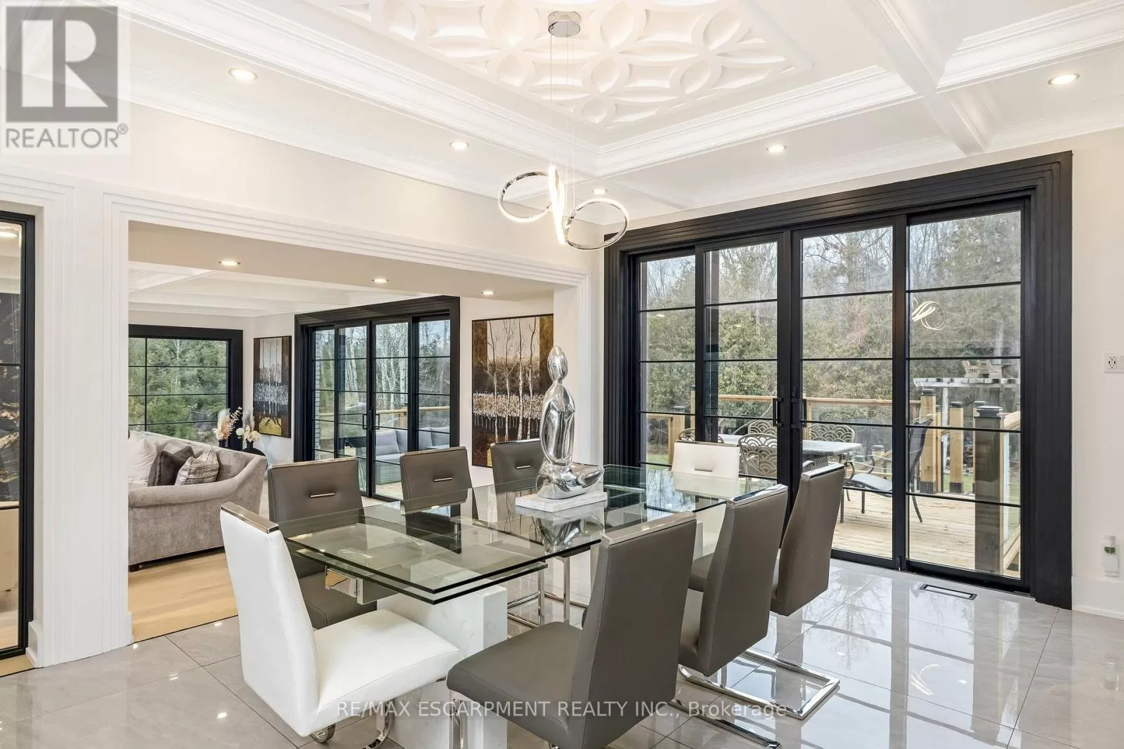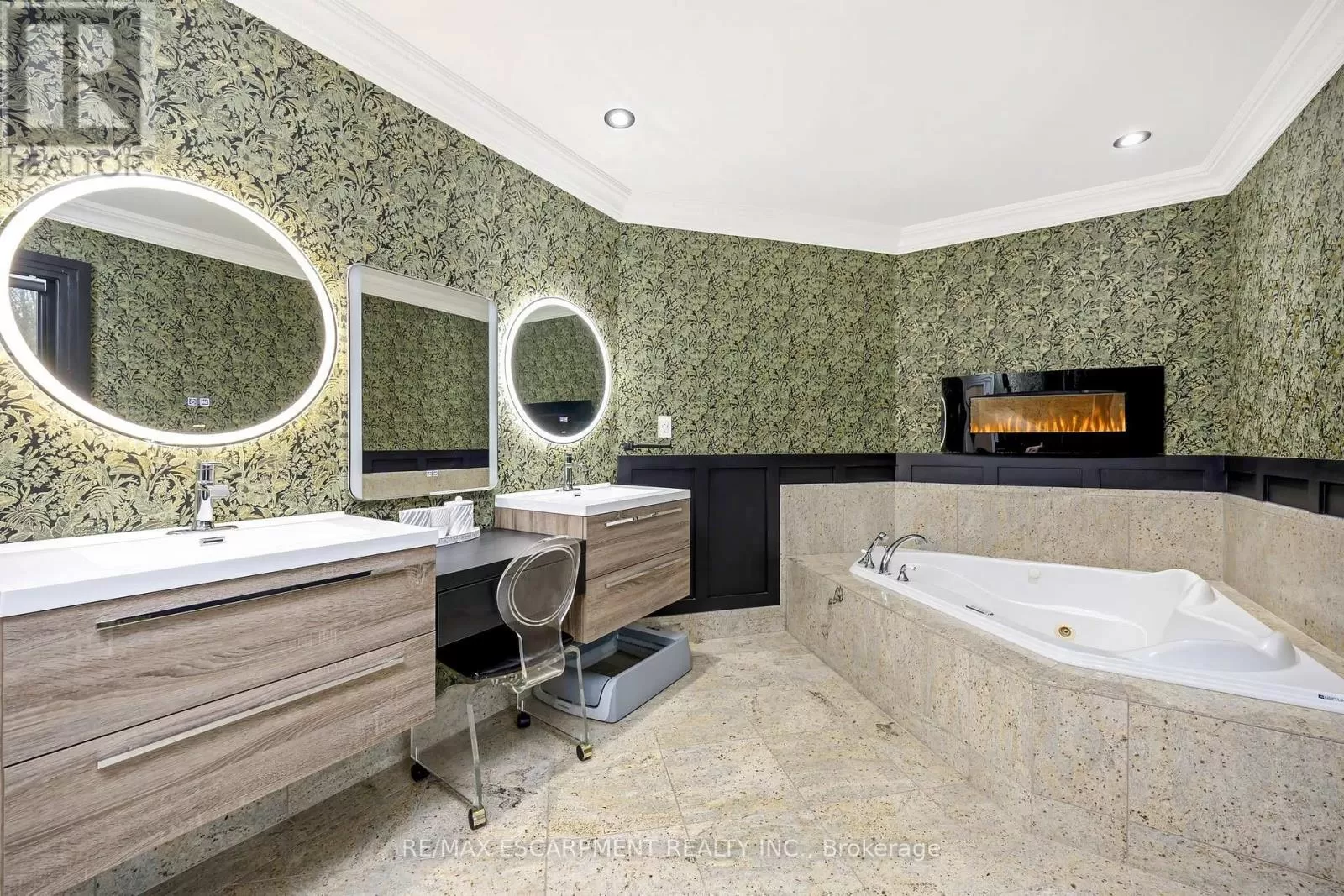 North of the 401, Guelph Line and 20 Side Road Step into a world of opulence and sophistication with this extraordinary estate, a true architectural masterpiece offering over 9,000 square feet of exquisite living space. Located in Campbellville, this 10-bedroom, 8-bathroom residence redefines luxury living with impeccable design, craftsmanship, and attention to detail. Crown moldings throughout the house, accentuating the timeless elegance of the interiors. The expansive living spaces feature soaring high ceilings, five custom fireplaces, and an abundance of natural light streaming through oversized windows, designed for the ultimate entertainer, this estate boasts four state-of-the-art kitchens, including a primary chef's kitchen with professional-grade appliances, custom cabinetry, and an oversized island. Whether hosting an intimate gathering or a grand soirée, this home offers unmatched versatility and style. The property includes a private guest house and a thoughtfully designed in-law suite, perfect for accommodating extended family or visitors in comfort and privacy. Outdoor living is equally impressive, with manicured grounds ideal for relaxation or entertainment. The8-car garage provides ample space for a car enthusiast's collection, while the home's multiple balconies and patios create seamless indoor and outdoor flow along side the massive indoor pool. UPPER LEVEL IS REFERRING TO THE GUEST HOUSE (2 BEDS, 1 BATH, 1 KITCHEN). LUXURY CERTIFIED. (id:27476)