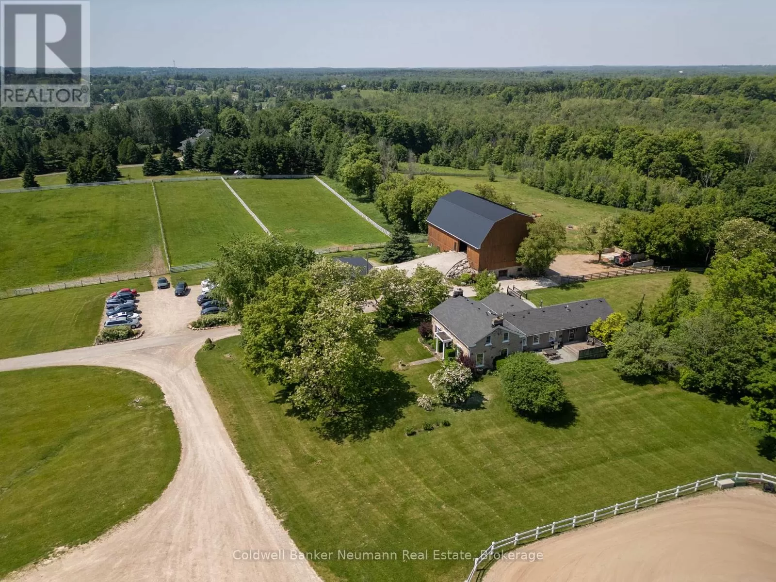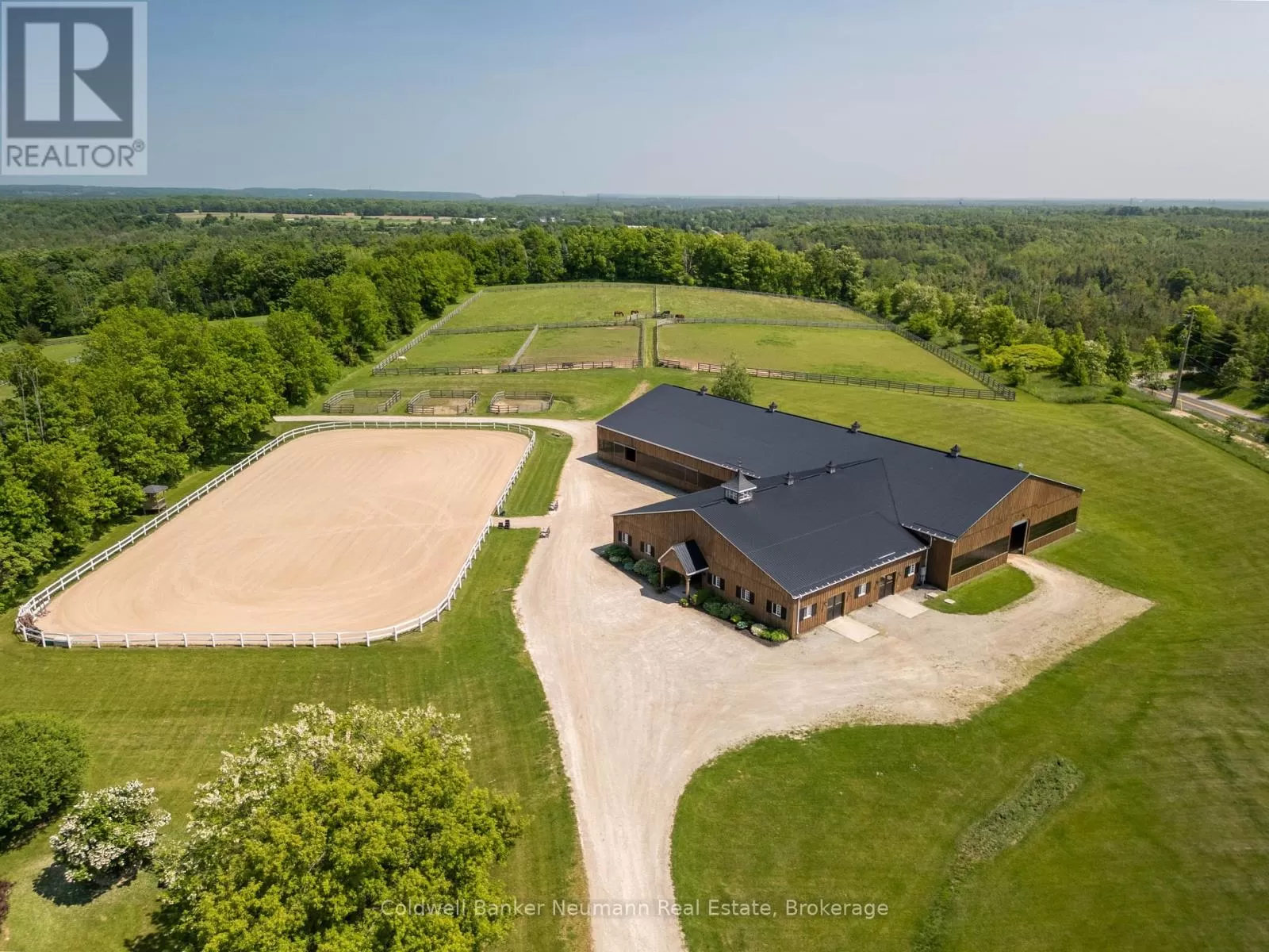 Cross Streets: 15 Side Rd, Guelph Line. ** Directions: from 15 side Rd, turn to Guelph Line. Have you been waiting for that truly special property? Attention horse loversthis spectacular 92 + acre estate just outside the village of Campbellville offers everything youve dreamed of and more. At its heart is a beautifully restored 1800s stone farmhouse that blends timeless charm with thoughtful modern updates. The home features a bright sunroom and a spacious main-floor primary bedroom wrapped in windows offering stunning views in every direction. The walk-out basement provides a fully self-contained living space with its own kitchen and bathroomperfect for in-laws, guests, or staff. The equestrian facilities are second to none, with two exceptional barns. The top barn includes 10 large box stalls, a grooming stall, wash stall, radiant floor heated tack room, feed room, viewing lounge and bathroom, on-site laundry, fly maintenance system, and heated main barn. The massive indoor arena (180 x 80) features high-quality, dust-free GGT footing ideal for year-round training. The bank barn offers an additional 10 large box stalls, a foaling stall, high ceilings, a wash stall, a radiant heated tack room, a feed room, a bathroom, laundry, and a spacious loft for hay storage. Outdoors, you'll find a large sand ring with excellent drainage, multiple paddocks with four-rail oak fencing, water and electricity to each paddock for trough, heater , and several individual or recovery paddocks. The property also includes an automatic front security gate, beautifully manicured grounds, extensive riding trails, and a crystal-clear artesian well supplying endless water. Natural gas services the property, and 20 acres are currently rented for crops at the rear of the lot. A large detached garage with three overhead doors includes one heated bay with a lift ideal for tractor or equipment storage and there's plenty of parking throughout. Located 30 min to Pearson Airport and 5 min to the 401, this location will be a steadfast investment for any purchaser. (id:27476)