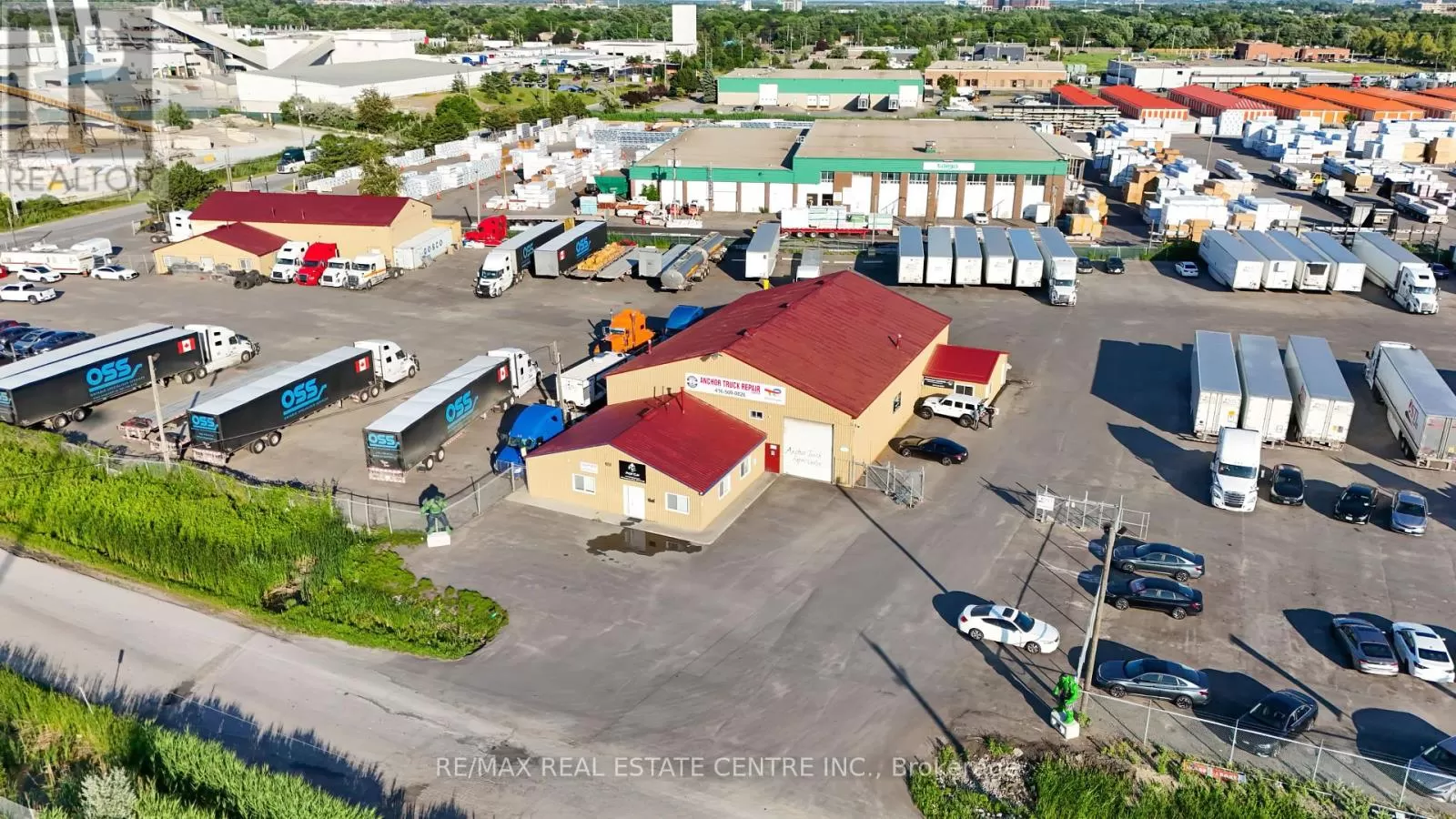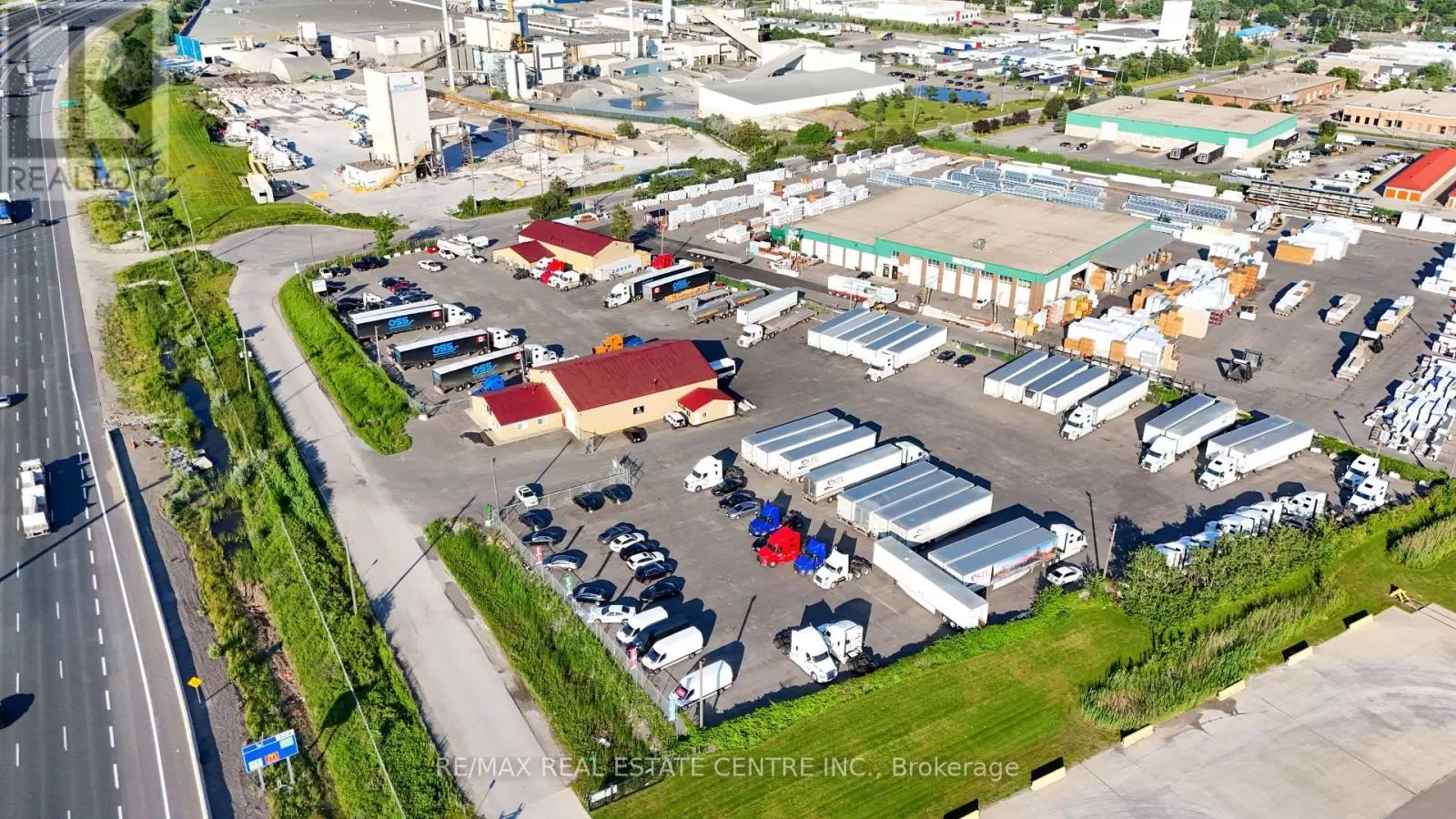 Cross Streets: Harrop Rd & Steeles Ave E. ** Directions: 401 WEST , Regional Rd 25 South , Turn Left on Steels go east , after half mile turn Left On Harrop Dr, Property end of Street left side. Prime Location Rare Freestanding Industrial Facility in Milton, Fully Fenced Yard. Outside Storage Permitted, Excellent Location With Direct Exposure Onto Hwy 401, Fully Paved , Lights, Security Fenced Yard, 2 Separate Repair Shops ( 4500 & 3000 SQ FEET ) On A Total Of 3.87 Acres Lot. Perfect For Truck/Car Sales & Transportation. (id:27476)
