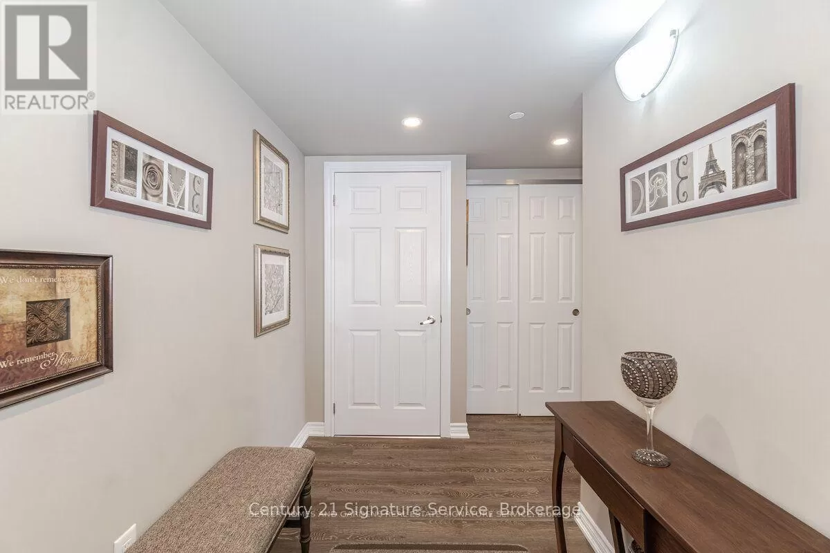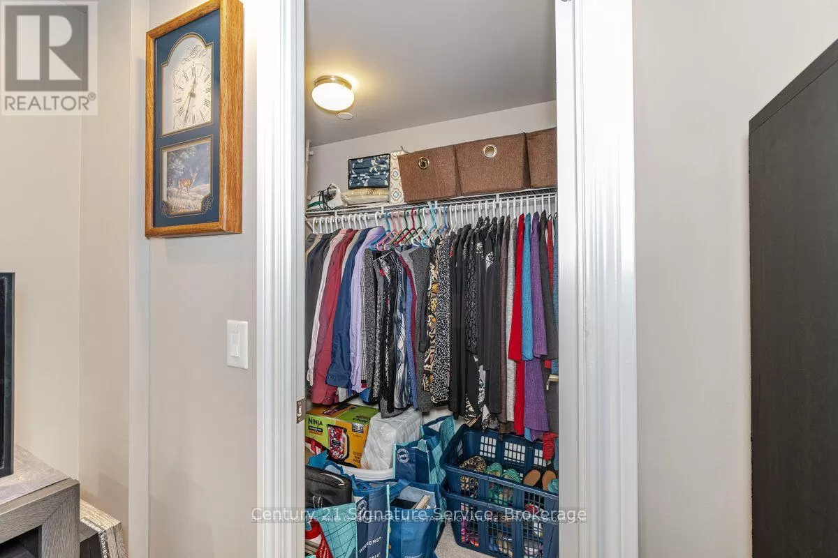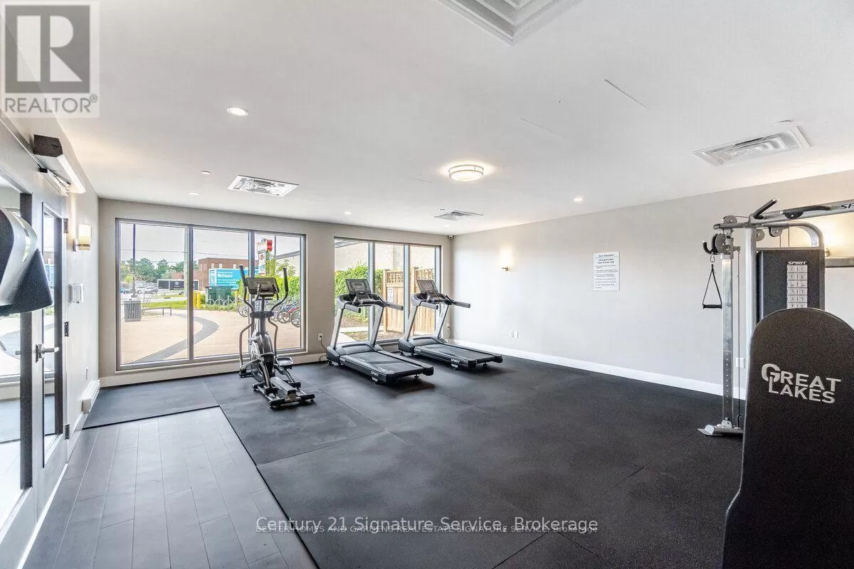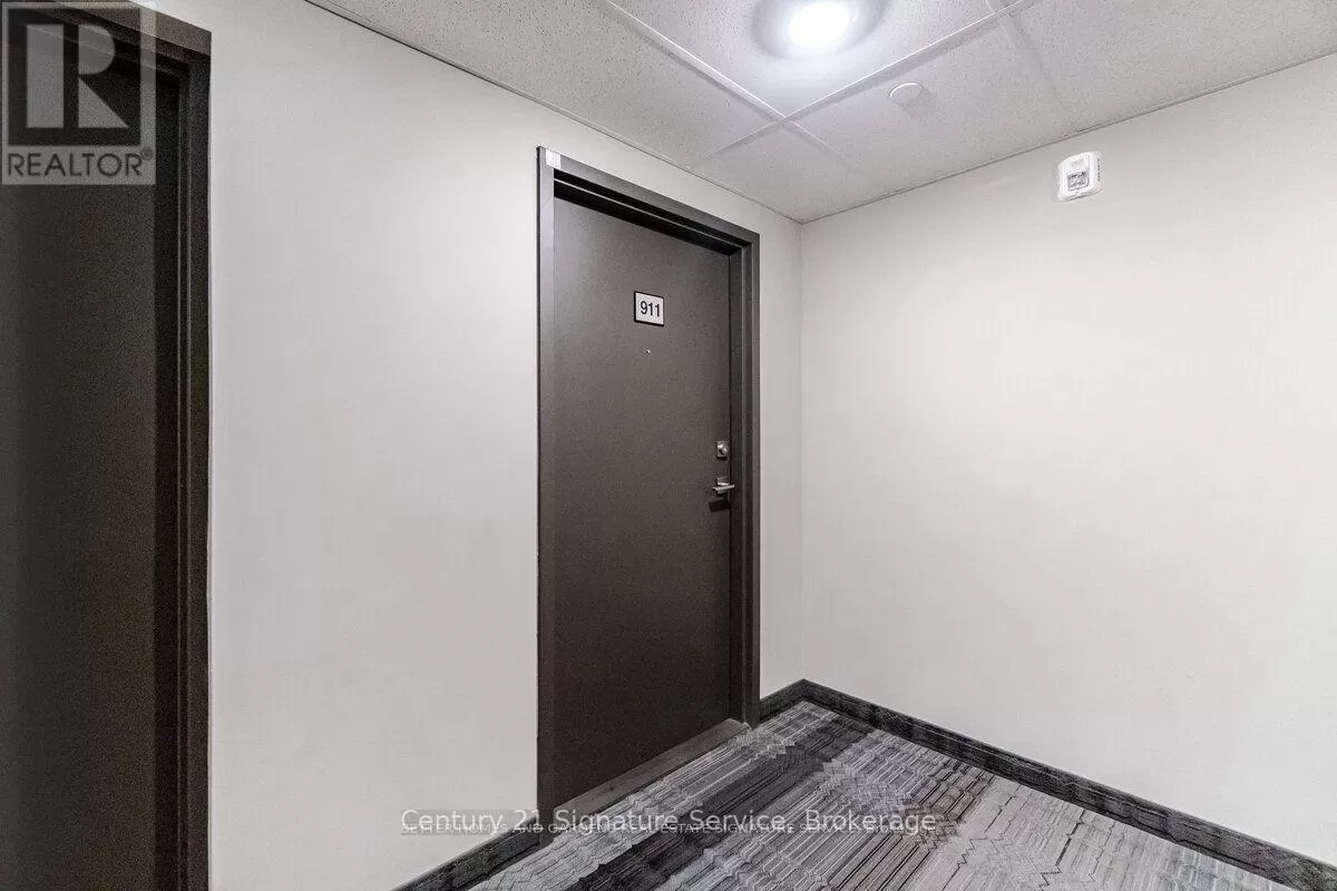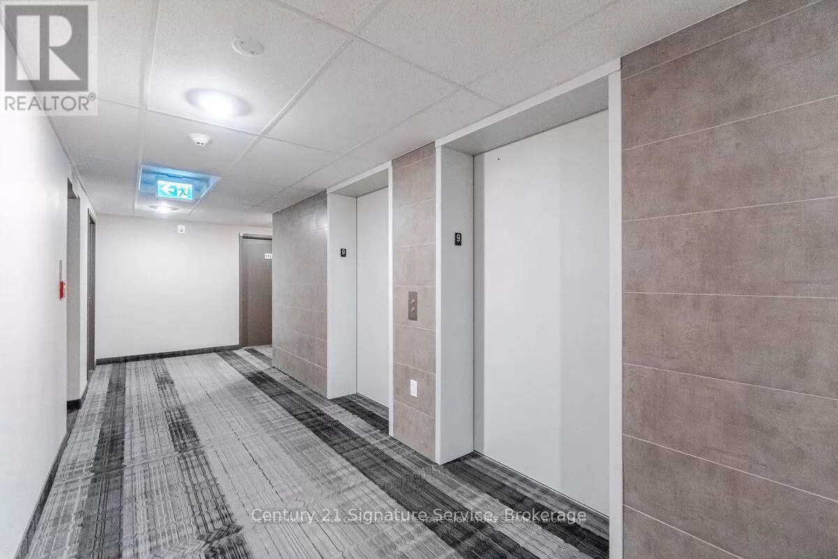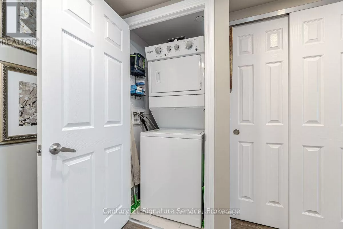 Main St / Thompson Rd this beautifully upgraded 2-bedroom + den, 2-bathroom corner unit offers 1,005 sq ft (+55 sq ft balcony) of sun-drenched space, with captivating northwest views of the Escarpment. Designed for both comfort and style, the open-concept layout features high-quality plank laminate flooring and cozy broadloom in the bedrooms. The modern kitchen is appointed with rich dark cabinetry, generous storage, and flows effortlessly into a bright living space?perfect for entertaining or relaxing. Step onto the spacious balcony to take in stunning sunsets and fresh air. The primary bedroom is a serene retreat, complete with a 4-piece ensuite and walk-in closet. Both bathrooms feature sleek tiles and tasteful finishes, with thoughtful upgrades throughout. Custom pot lights add warmth and charm. Enjoy premium building amenities, including a rooftop BBQ terrace, stylish party room, meeting space, guest suite, and ample visitor parking. Conveniently located with quick access to Hwy 401/407, just steps from Milton GO, and close to shopping, golf courses, Kelso, organic farms, and more. Includes one parking spot and one locker. (id:27476)