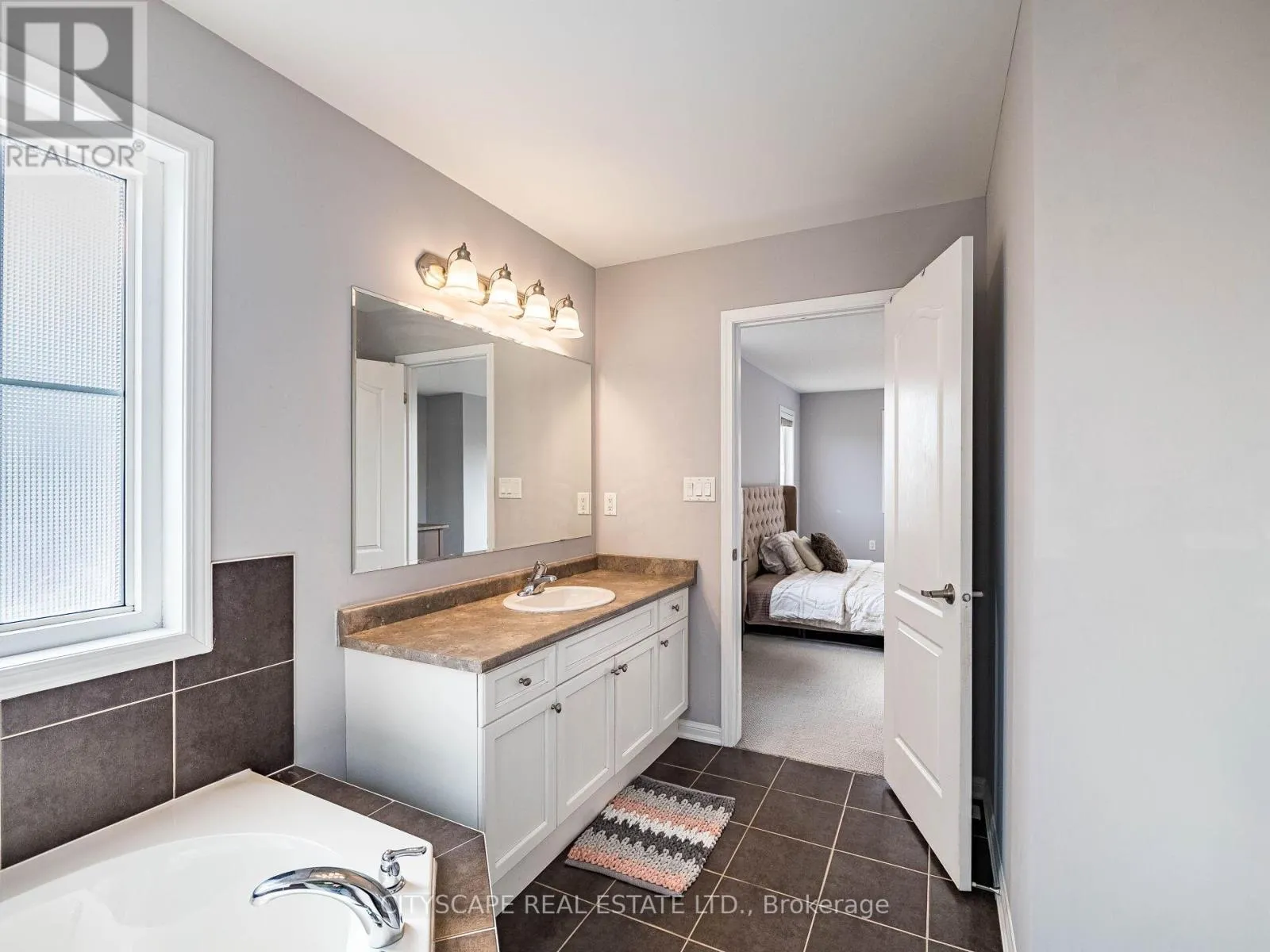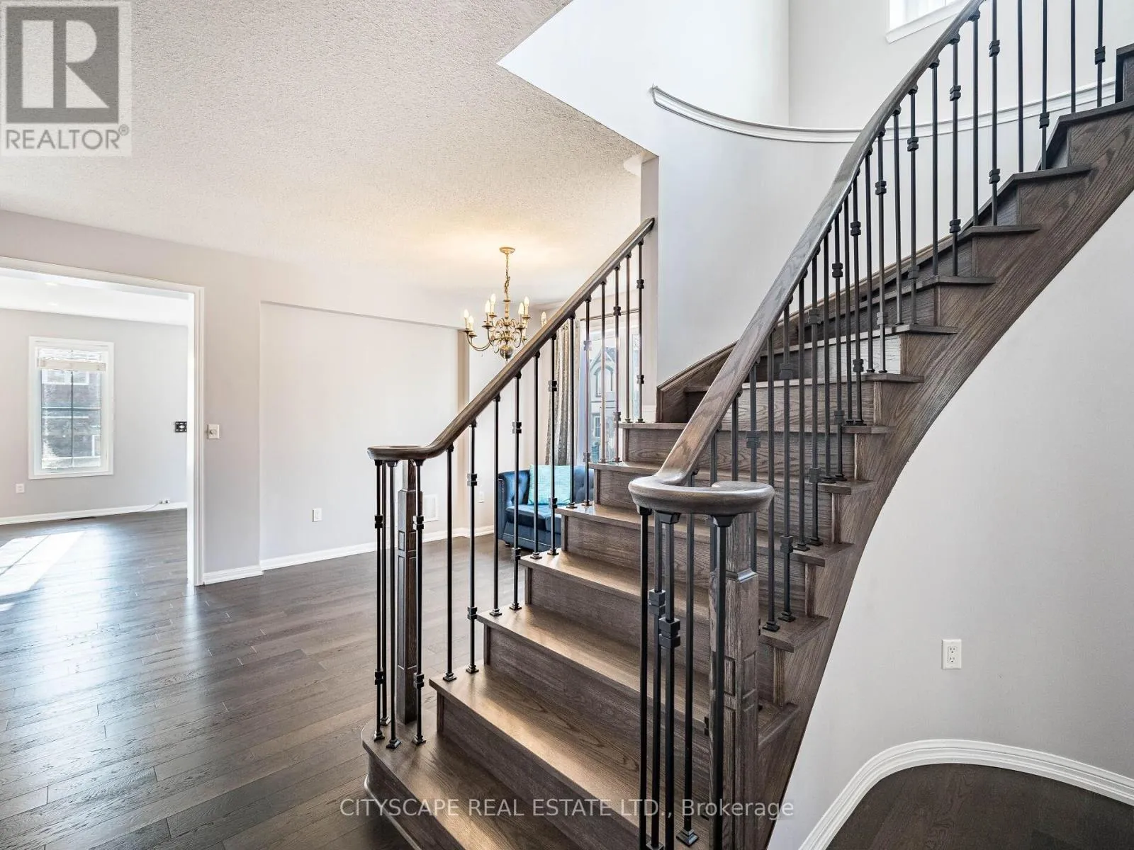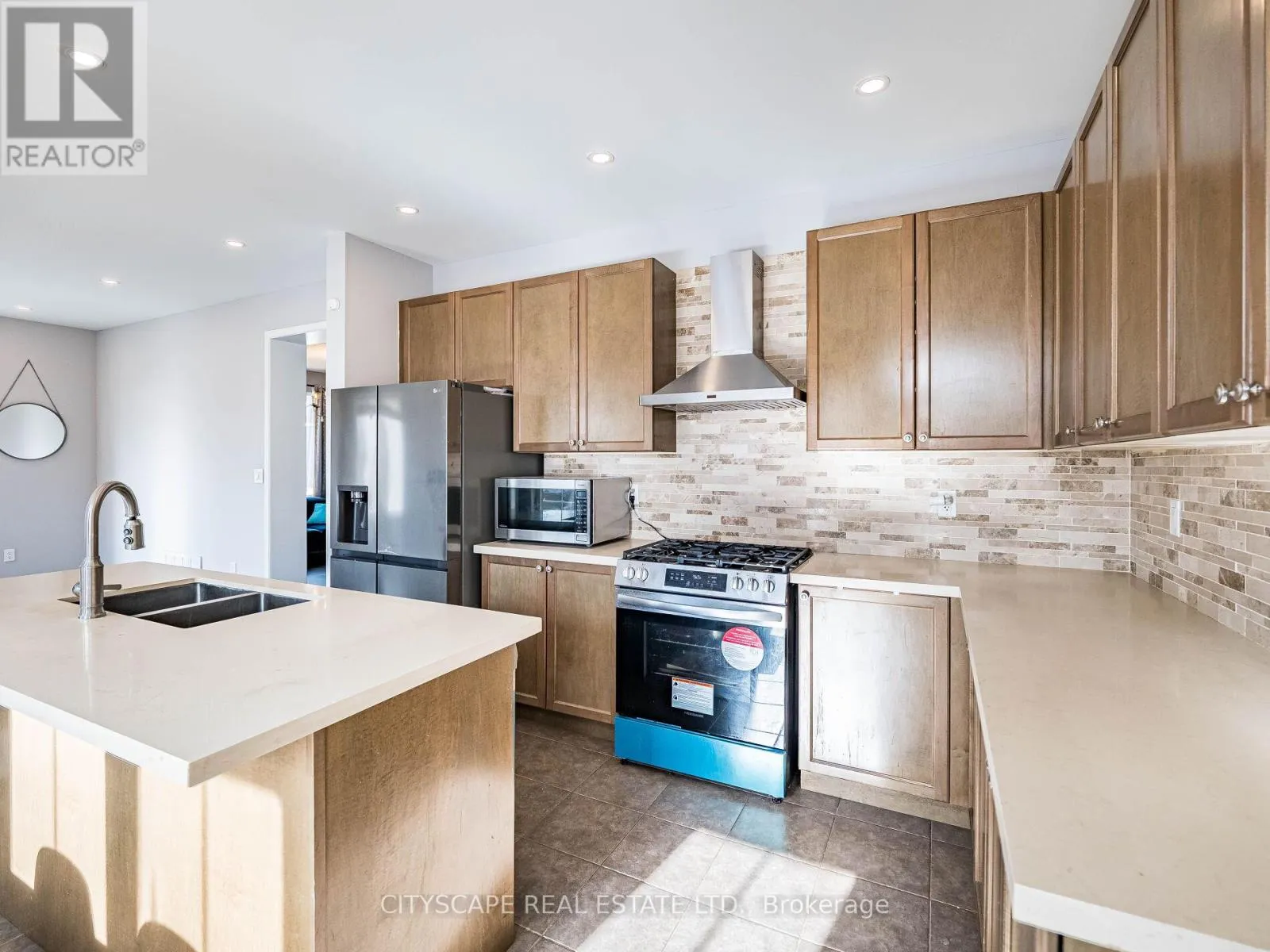 Cross Streets: Savoline And Pringle. ** Directions: Tremaine And Pringle. Bright, spacious, and ideally located 416 Gooch Crescent offers over 2,500 sq ft of family living in the desirable Scott community, directly across from the peaceful Gooch Woodlot. Nestled on a quiet street with no sidewalk, this home sits proudly on a premium corner lot with no front neighbors, offering excellent curb appeal and an abundance of natural light. Move-in ready and thoughtfully updated, this home checks all the boxes for modern family living. The layout is designed for everyday comfort and functionality, featuring hardwood floors, newly installed hardwood stairs (March 2025), and spacious principal rooms including formal living and dining areas, a large family room, and a main floor den ideal for working from home. The kitchen boasts quartz countertops, a functional island, newer stainless steel appliances (Aug 2024), and ample cabinetry. A bright breakfast area opens to a low-maintenance backyard with a gas line perfect for BBQs and entertaining. Upstairs are four generous bedrooms, including a spacious primary suite with walk-in closet and a 5-piece ensuite featuring a soaker tub and separate shower. A second-floor laundry room adds everyday convenience. The double car garage offers direct access to the home and includes an EV charging outlet, adding practical value for todays buyer. Located close to schools, parks, scenic trails, and all essential amenities, this is a well-maintained home offering the perfect blend of space, comfort, and location. Note: Select images include virtual staging. (id:27476)