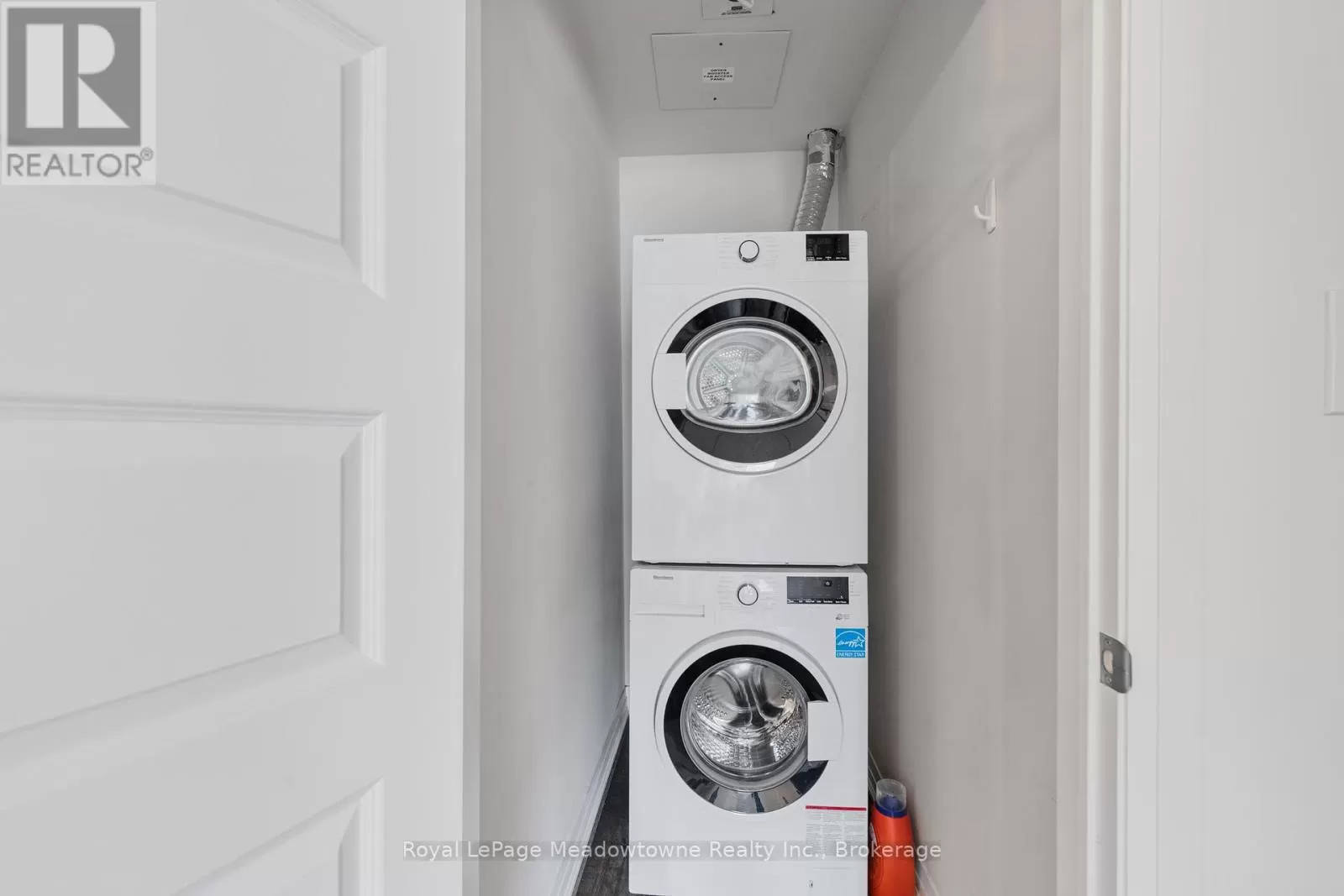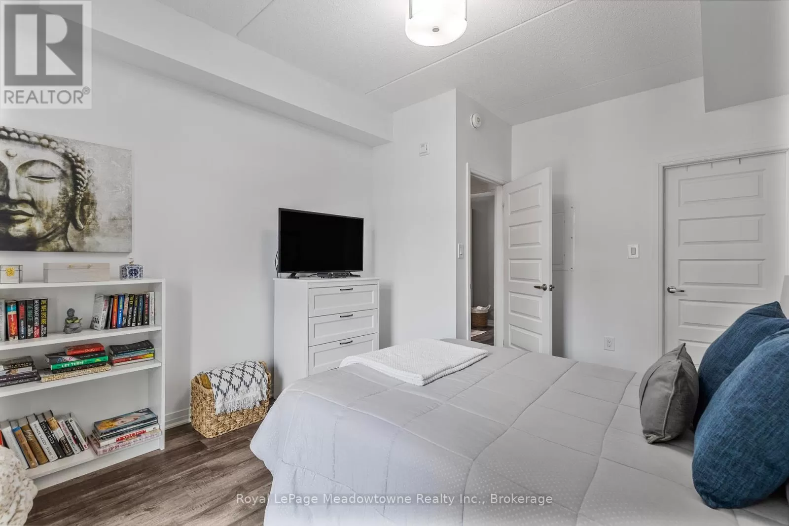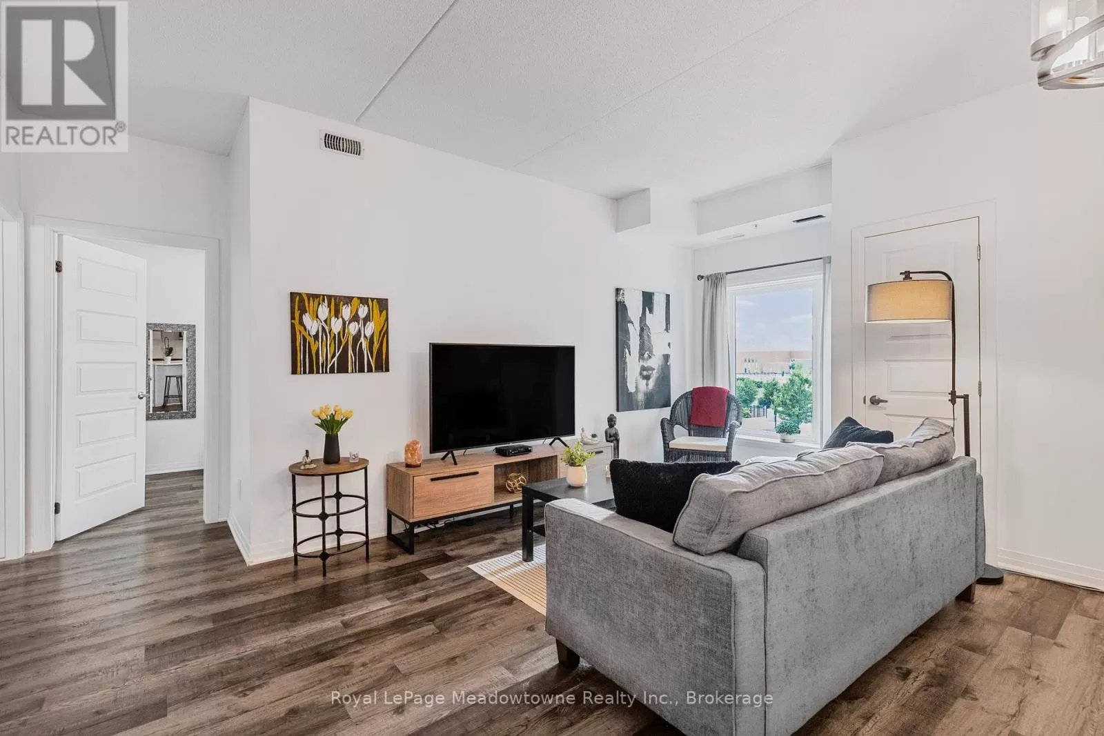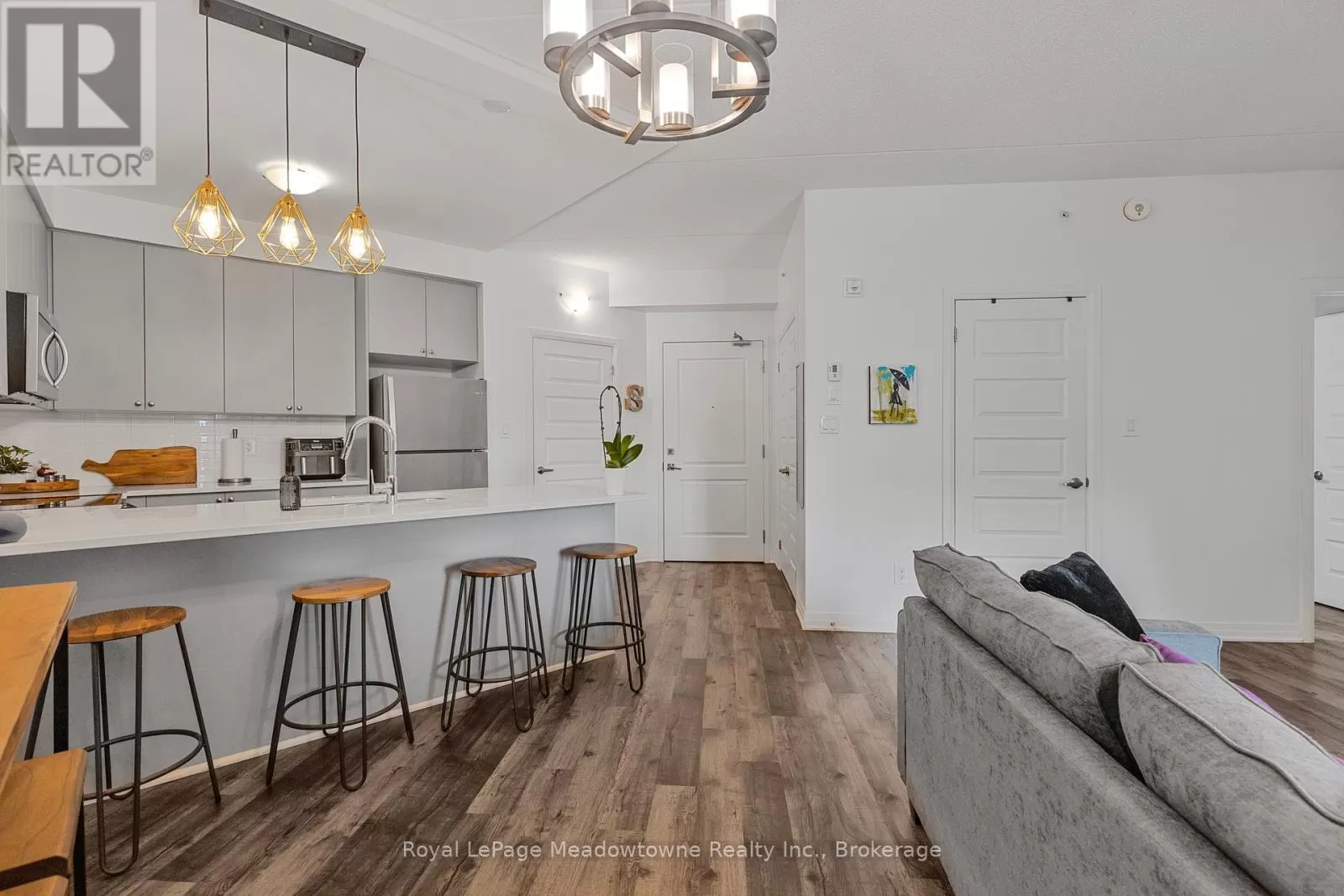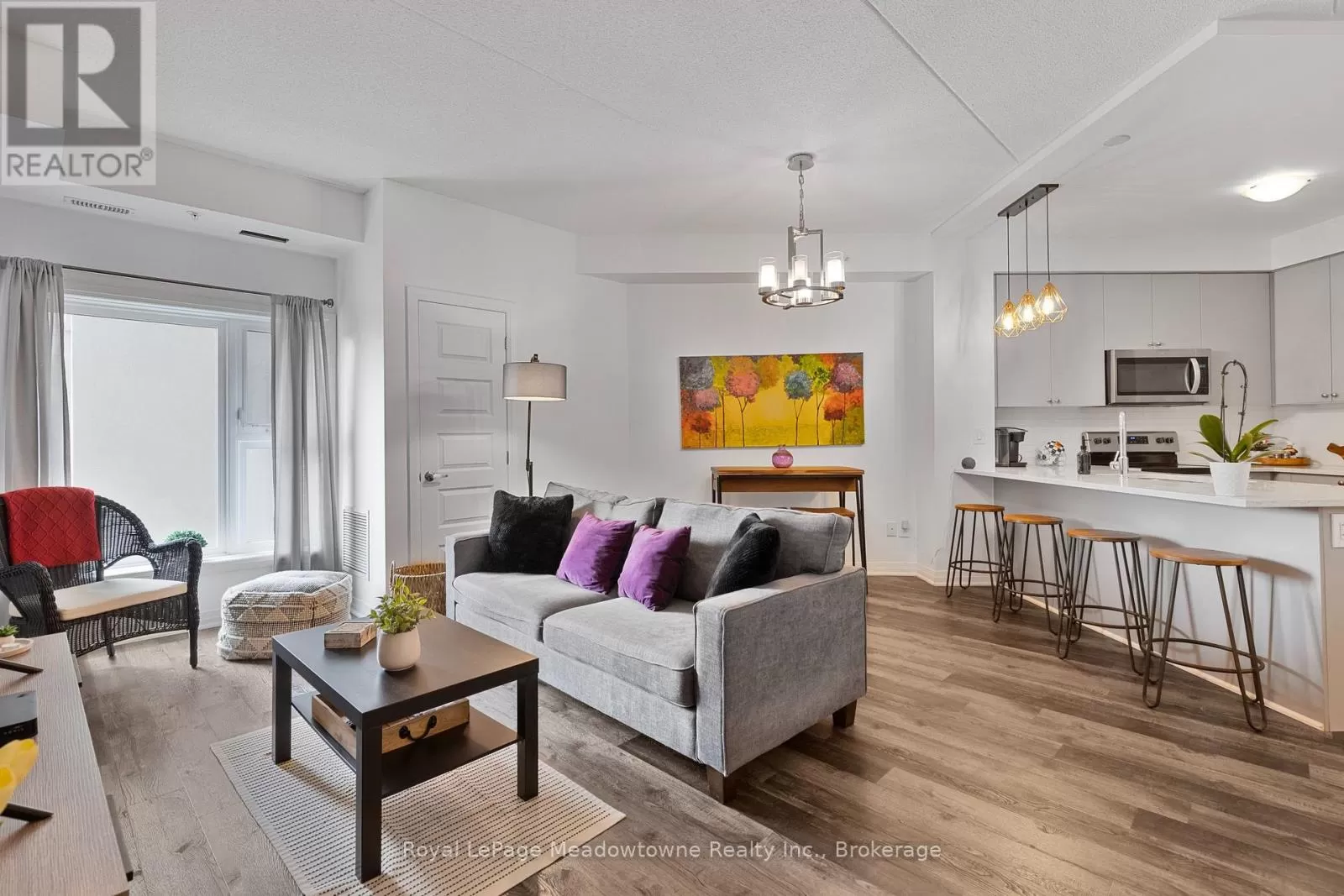 Derry and Farmstead Step into this beautifully designed one bedroom condo featuring a fantastic open floor plan andupscale finishes throughout. The spacious layout offers a seamless flow from the modernkitchen to the living area, ideal for both relaxing and entertaining. The kitchen is a chefs dreamwith Stainless Steel appliances, sleek countertops, backsplash, a HUGE pantry and high-endlight fixtures that add a sophisticated touch.The generously sized bedroom includes a large walk-in closet, while the bathroom offers amplestorage and elegant finishes. With abundant natural light, quality flooring, and thoughtful designelements, this condo combines comfort, functionality, and style.The unit is conveniently located close to schools, shopping the hospital and highway access.One underground parking spot, and 1 storage locker is included.Perfect for first time home buyers, downsizers or investors dont miss the chance to call thisstunning unit home! (id:27476)