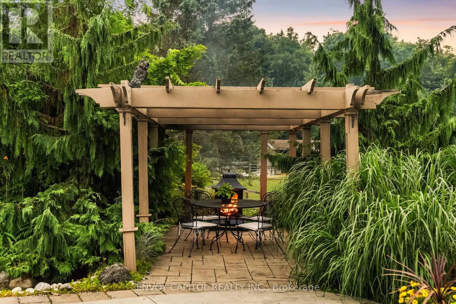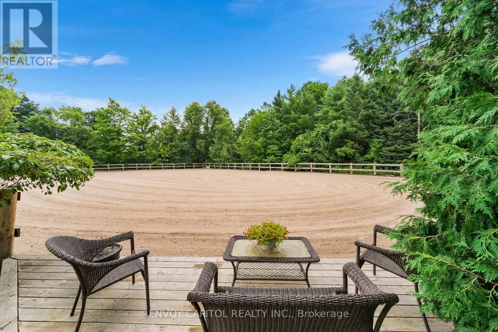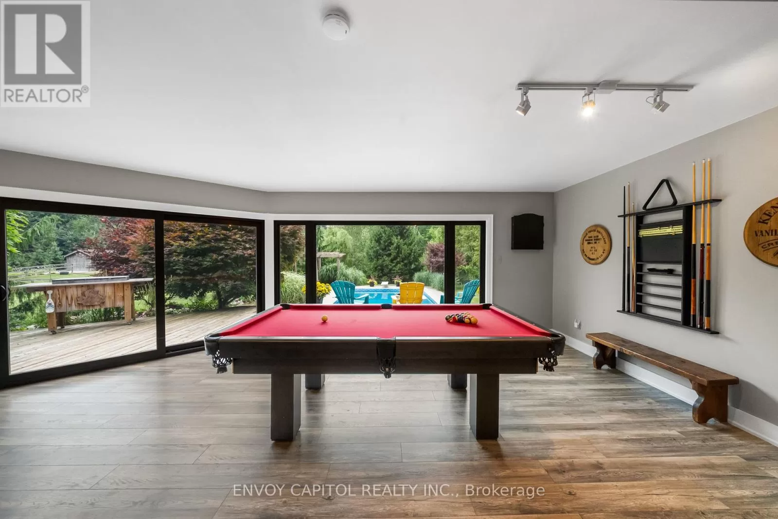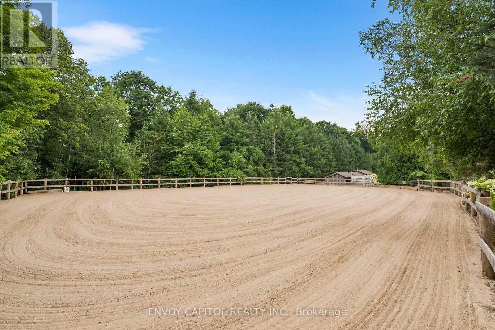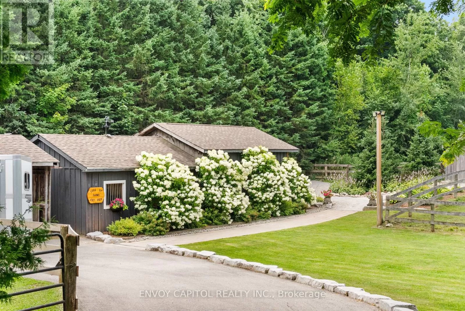 Cross Streets: Guelph Line/20th Sideroad. ** Directions: located between 15th and 20th sdrds. Bring your horses home! With 10 acres of professionally landscaped grounds, you and your horses will surely be spoiled here. No stone was left unturned when it came to updating this horse lovers paradise. Destinations abound around the property. From riding in your recently refreshed sand ring to relaxing by the pool on hot summer days, the option is yours. In the evening, strolling through the magical winding trails will lead you to the open air intimate fire pit. Following the trails further around the unspoiled natural pond, you'll reach another destination where you can cross over the beach and relax on your dock enjoying the serenity of the pond in Muskoka chairs. While dining alfresco under one of the 2 pergolas, sitting beside a babbling water feature stream or cozying up to a crackling wood chiminea will be the only decision you need to make. Inside the home you'll find an entertainer's delight. When it's time to fire up in the chef inspired eat-in kitchen, the Dacor cooktop makes the experience that much more enjoyable. Off the kitchen a dedicated dining area allows for a quiet space to enjoy your creation with family and friends. After which, head over to the family and living spaces where you can challenge your company on the included billiards table or easily convert to table tennis. Now to relax in front of your included large screen TV built into a gorgeous stone accent wall. The second storey sees a large primary retreat complete with an updated ensuite along with 3 more generously sized bedrooms and a conveniently updated 5-piece bathroom. Other updates not to be missed include a new pool liner (25), new roof decking and shingles (24), new attic insulation (24), new eavestrough/soffit and painting existing siding (23), new owned propane furnace (22), new windows/sliding doors (21). This feature-packed property also includes a microFIT (solar panels) generating approximately $6k to $8K of annual income (until 2030) and a direct to panel generator. (id:27476)