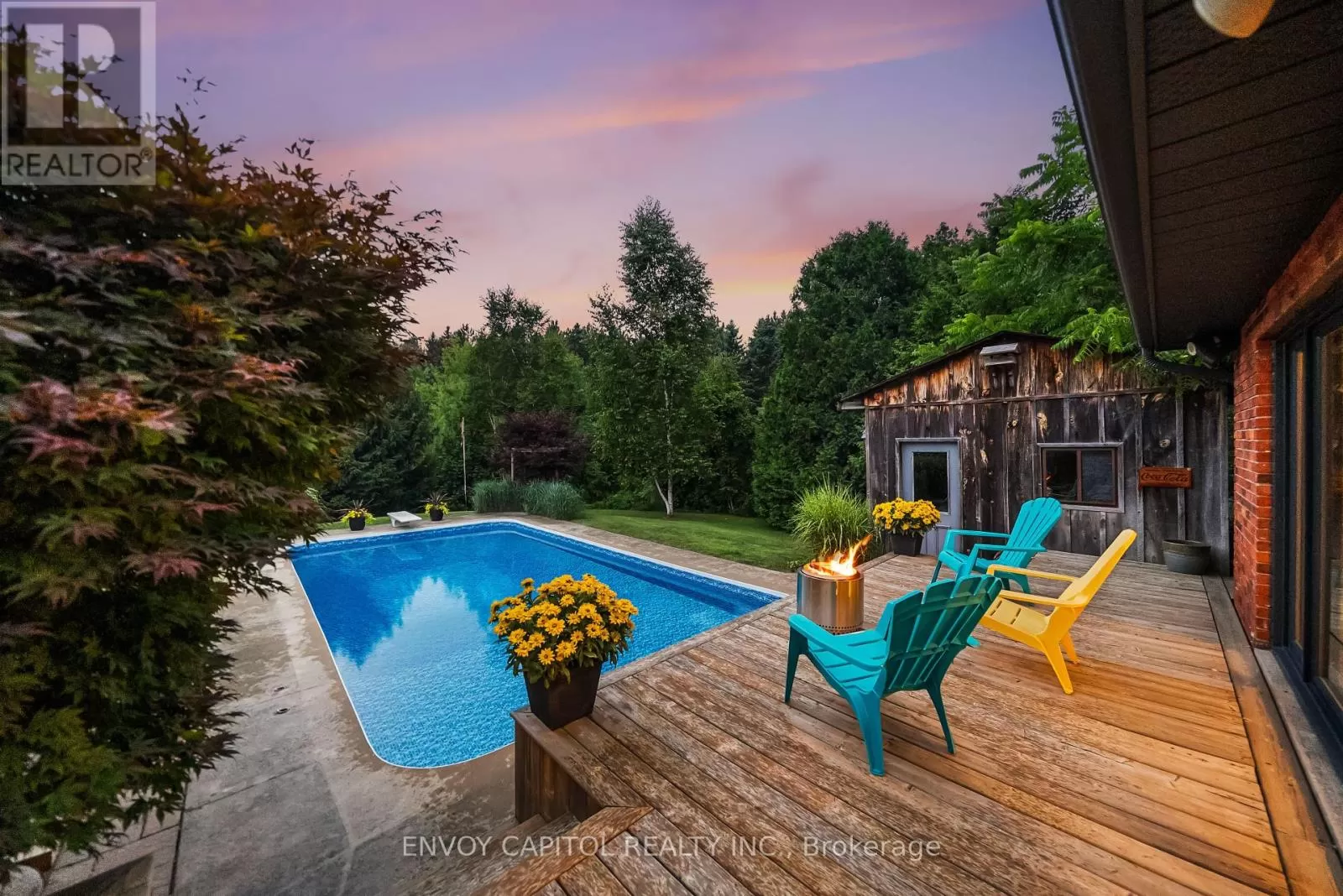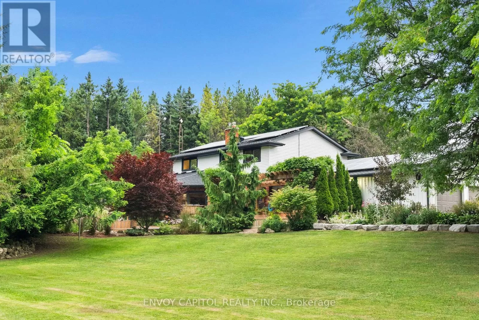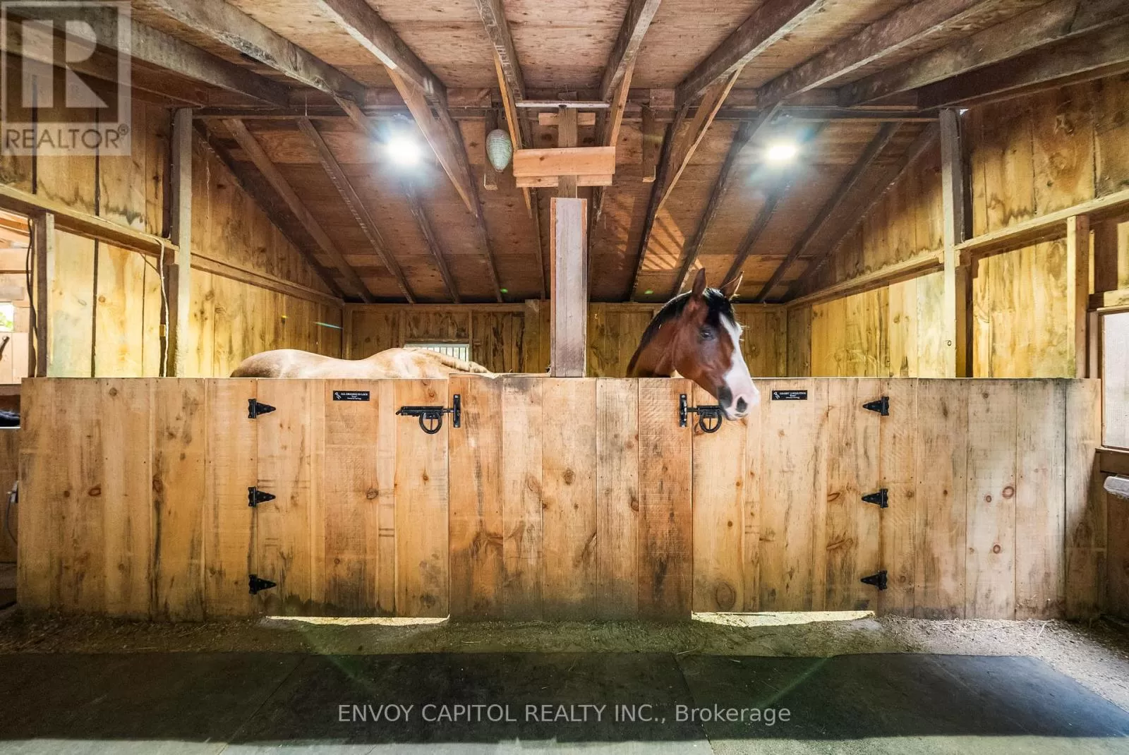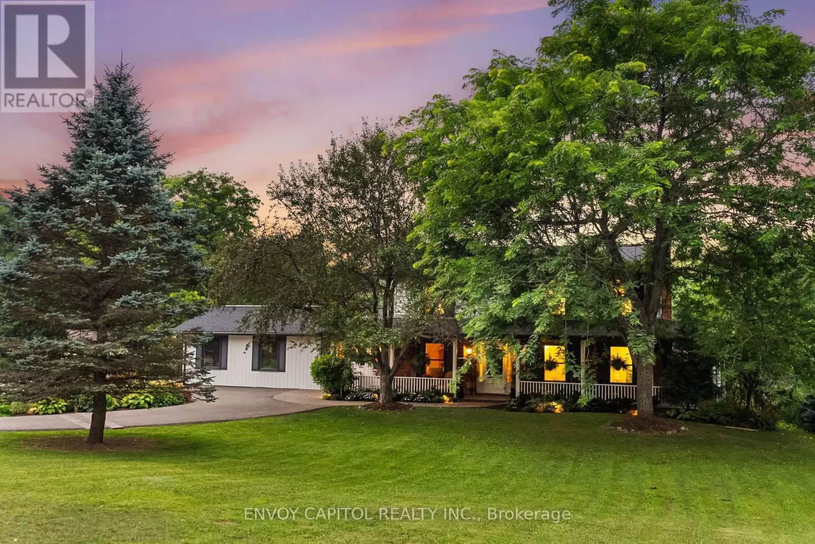 Cross Streets: Guelph Line/20th Sideroad. ** Directions: located between 15th and 20th sdrds. Bring your horses home! With 10 acres of professionally landscaped grounds, you and your horses will surely be spoiled here. No stone was left unturned when it came to updating this horse lovers paradise. Destinations abound around the property. From riding in your recently refreshed sand ring to relaxing by the pool on hot summer days, the option is yours. In the evening, strolling through the magical winding trails will lead you to the open air intimate fire pit. Following the trails further around the unspoiled natural pond, you'll reach another destination where you can cross over the beach and relax on your dock enjoying the serenity of the pond in Muskoka chairs. While dining alfresco under one of the 2 pergolas, sitting beside a babbling water feature stream or cozying up to a crackling wood chiminea will be the only decision you need to make. Inside the home you'll find an entertainer's delight. When it's time to fire up in the chef inspired eat-in kitchen, the Dacor cooktop makes the experience that much more enjoyable. Off the kitchen a dedicated dining area allows for a quiet space to enjoy your creation with family and friends. After which, head over to the family and living spaces where you can challenge your company on the included billiards table or easily convert to table tennis. Now to relax in front of your included large screen TV built into a gorgeous stone accent wall. The second storey sees a large primary retreat complete with an updated ensuite along with 3 more generously sized bedrooms and a conveniently updated 5-piece bathroom. Other updates not to be missed include a new pool liner (25), new roof decking and shingles (24), new attic insulation (24), new eavestrough/soffit and painting existing siding (23), new owned propane furnace (22), new windows/sliding doors (21). This feature-packed property also includes a microFIT (solar panels) generating approximately $6k to $8K of annual income (until 2030) and a direct to panel generator. (id:27476)