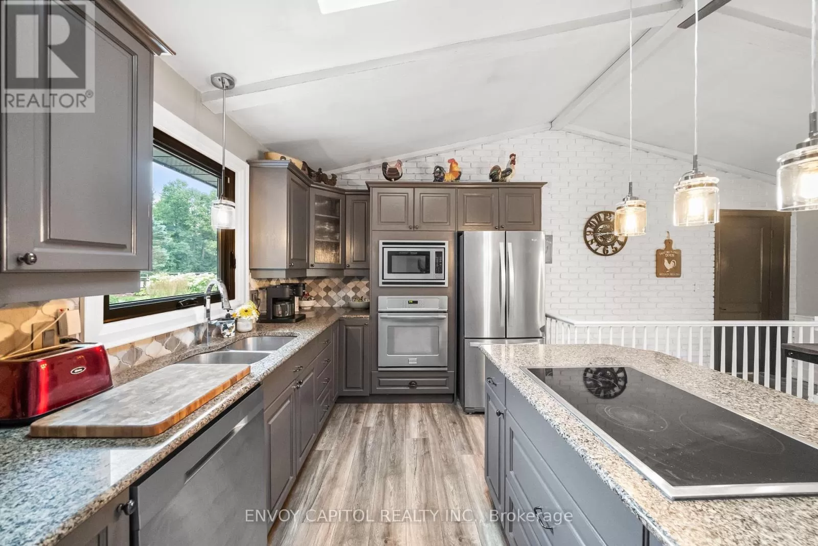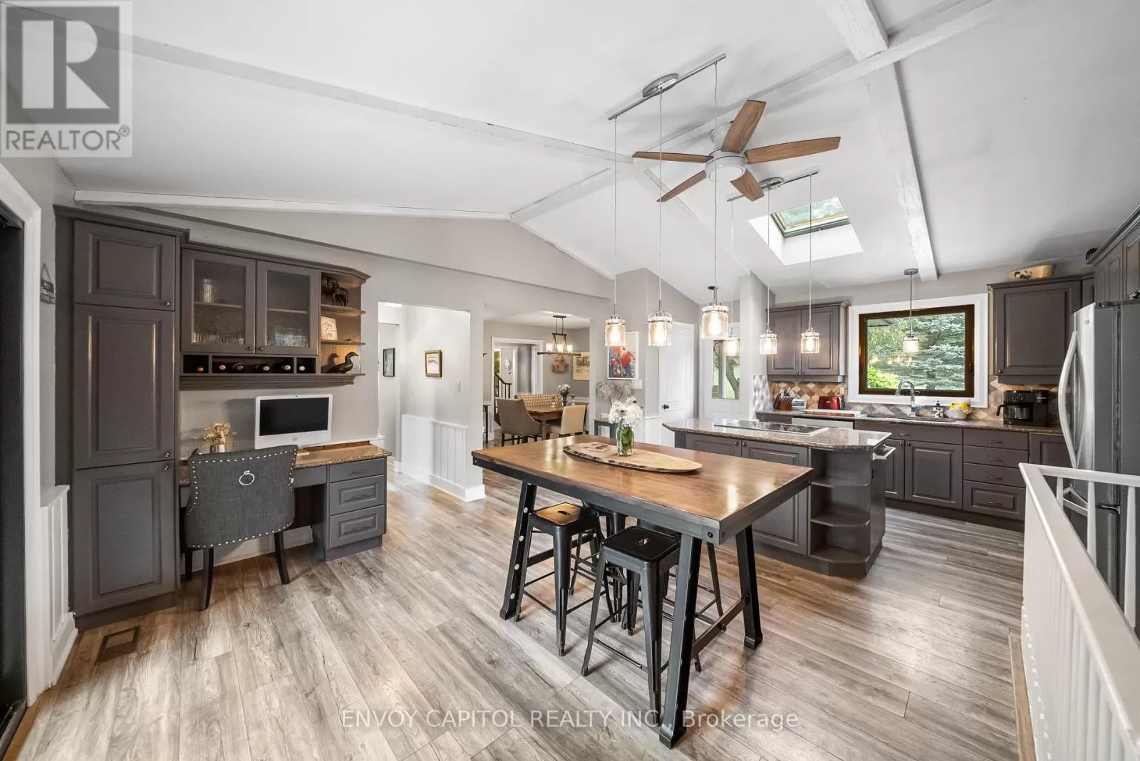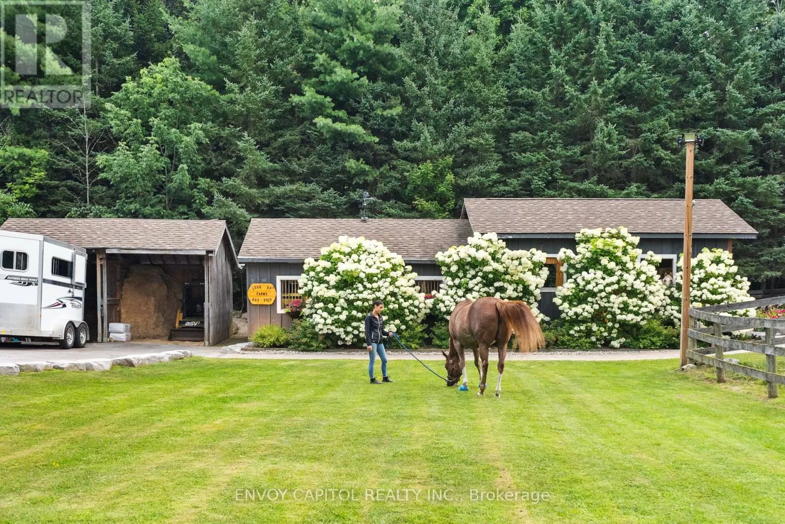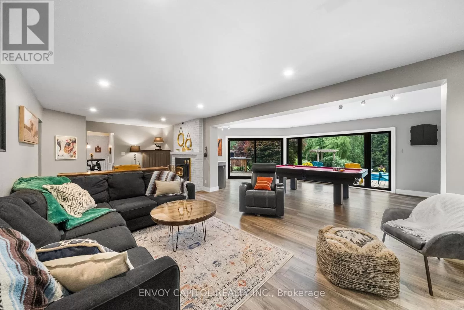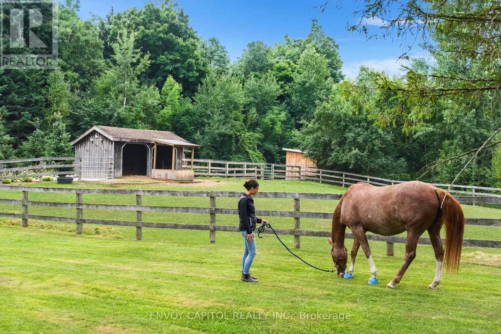 Cross Streets: Guelph Line/20th Sideroad. ** Directions: located between 15th and 20th sdrds. Bring your horses home! With 10 acres of professionally landscaped grounds, you and your horses will surely be spoiled here. No stone was left unturned when it came to updating this horse lovers paradise. Destinations abound around the property. From riding in your recently refreshed sand ring to relaxing by the pool on hot summer days, the option is yours. In the evening, strolling through the magical winding trails will lead you to the open air intimate fire pit. Following the trails further around the unspoiled natural pond, you'll reach another destination where you can cross over the beach and relax on your dock enjoying the serenity of the pond in Muskoka chairs. While dining alfresco under one of the 2 pergolas, sitting beside a babbling water feature stream or cozying up to a crackling wood chiminea will be the only decision you need to make. Inside the home you'll find an entertainer's delight. When it's time to fire up in the chef inspired eat-in kitchen, the Dacor cooktop makes the experience that much more enjoyable. Off the kitchen a dedicated dining area allows for a quiet space to enjoy your creation with family and friends. After which, head over to the family and living spaces where you can challenge your company on the included billiards table or easily convert to table tennis. Now to relax in front of your included large screen TV built into a gorgeous stone accent wall. The second storey sees a large primary retreat complete with an updated ensuite along with 3 more generously sized bedrooms and a conveniently updated 5-piece bathroom. Other updates not to be missed include a new pool liner (25), new roof decking and shingles (24), new attic insulation (24), new eavestrough/soffit and painting existing siding (23), new owned propane furnace (22), new windows/sliding doors (21). This feature-packed property also includes a microFIT (solar panels) generating approximately $6k to $8K of annual income (until 2030) and a direct to panel generator. (id:27476)