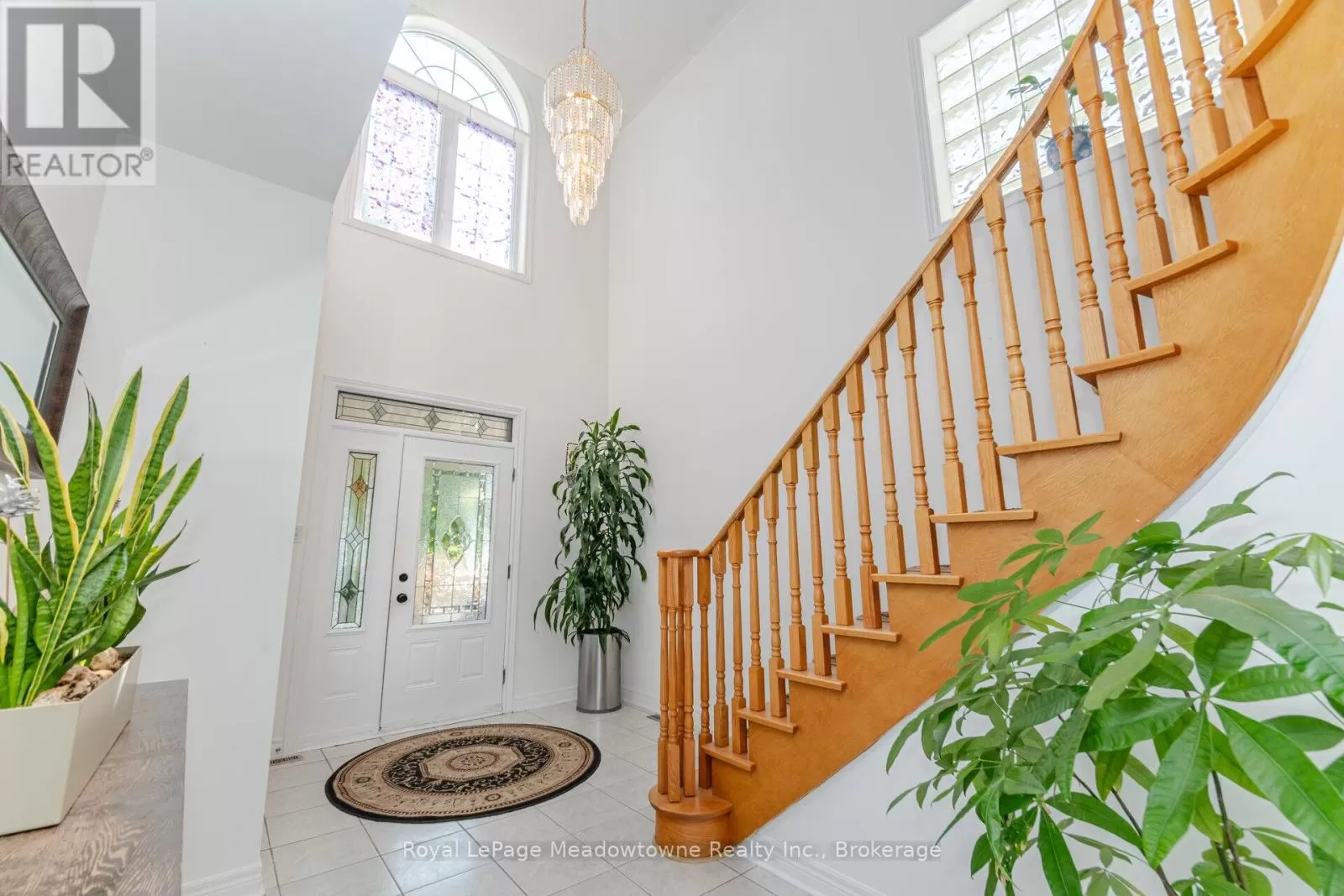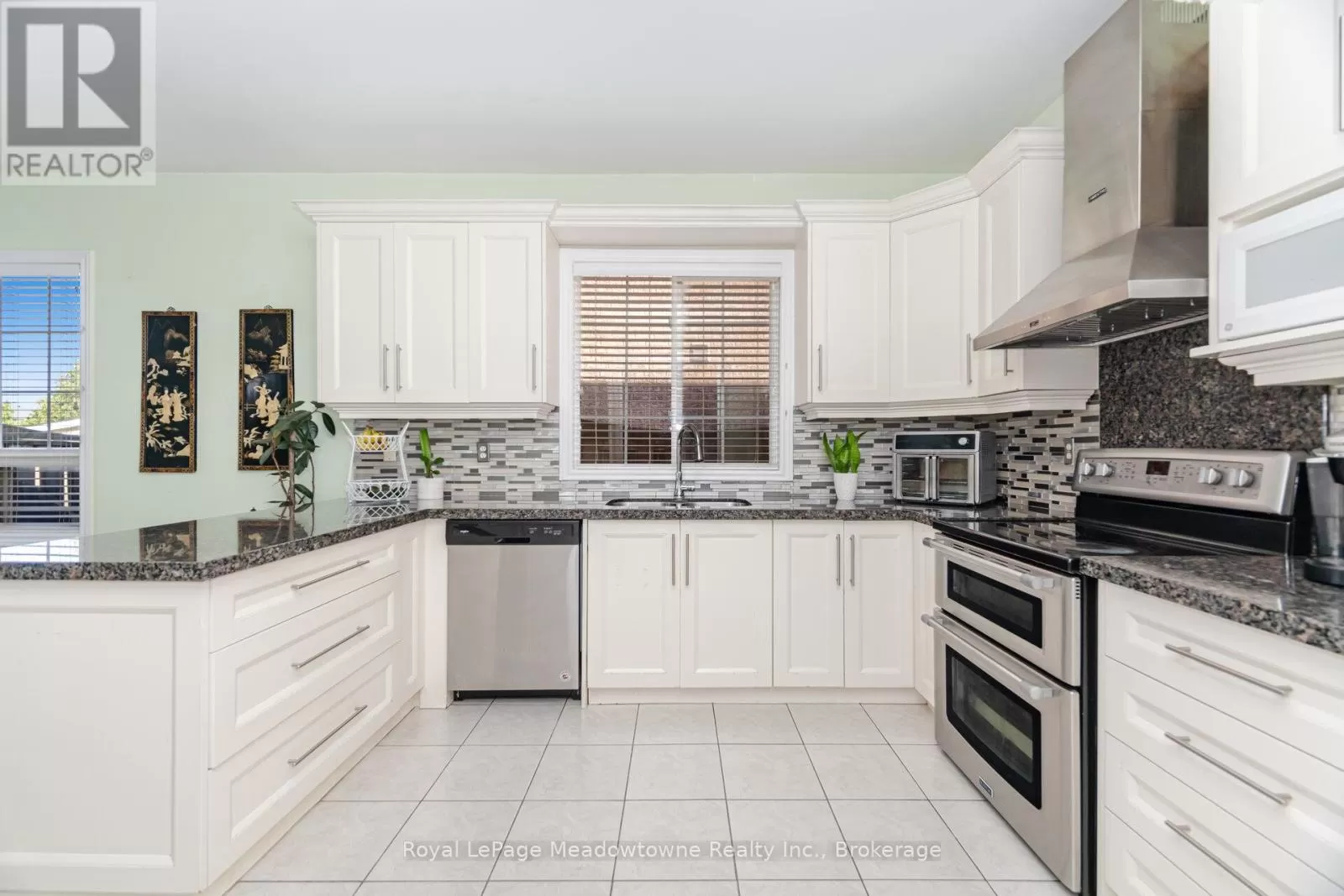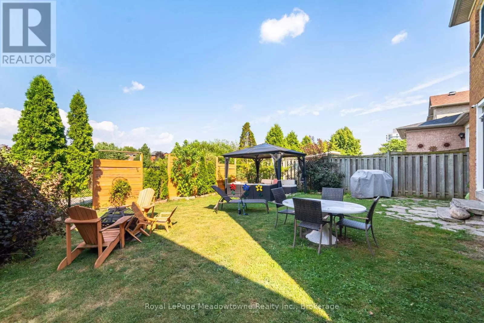 Cross Streets: Thompson and Main. ** Directions: Thompson/Sprucedale/Manley. Welcome to this stunning 4+2 bed, 4+1 bath detached home with a double car garage, located in highly desirable Dempsey neighbourhood. Backing onto a peaceful ravine, this Greenpark-built Westgate 6 model offers 2,640 sq ft plus finished basement, combining space, style, and privacy. Step into a bright and welcoming foyer with tiled flooring & generous coat closet. The open-concept living & dining rooms feature elegant hardwood floors and are flooded with natural light perfect for hosting or relaxing.The updated eat-in kitchen is the heart of the home, boasting crisp white cabinetry, dark granite countertops, stylish tile backsplash, & s/s appls including a new range hood. The spacious breakfast area offers a w/o to the backyard & overlooks the cozy family room, which features a gas fireplace, hardwood flooring & large picture windows showcasing views of the ravine.Upstairs, you'll find 4 generous bedrooms & 3 full bathrooms. The primary suite, located at the rear for maximum privacy, includes a w/I closet and 4-c ensuite with soaker tub, large vanity & separate shower. Bedrooms 2 & 3 share a convenient Jack & Jill bathroom, while bedroom 4 enjoys its own private ensuite & double closet.The finished basement offers incredible versatility use the space as additional bedrooms, a home office, gym, playroom or rec room. A 4-piece bathroom and laundry room are also located on this level.Enjoy your own private backyard oasis, fully fenced with mature gardens, greenery, & multiple seating areas, including a flagstone patio & stone patio ideal for dining or lounging. Ideally located close to all major amenities grocery stores, restaurants, theatres, shops & public transit and within walking distance to schools, parks, library, & arts centre. Easy access to Highway 401 & 407 makes commuting simple & convenient. Dont miss this rare opportunity to own a ravine-lot home in one of Miltons most sought-after communities. (id:27476)