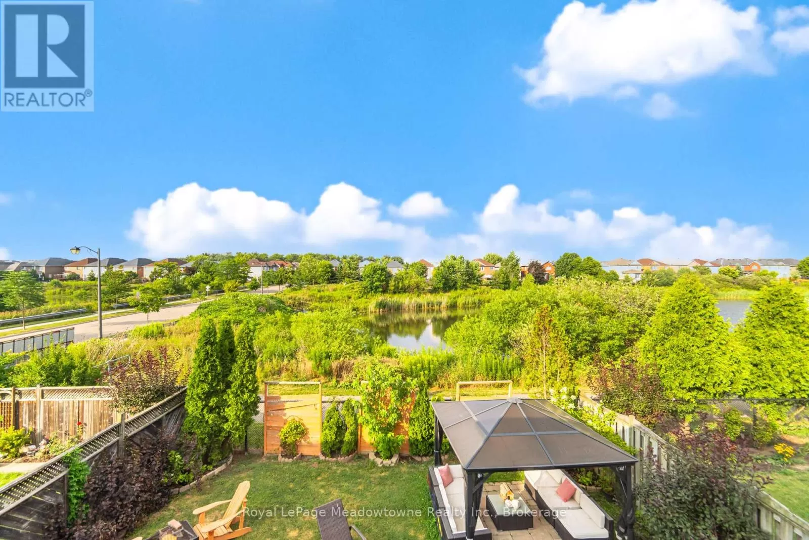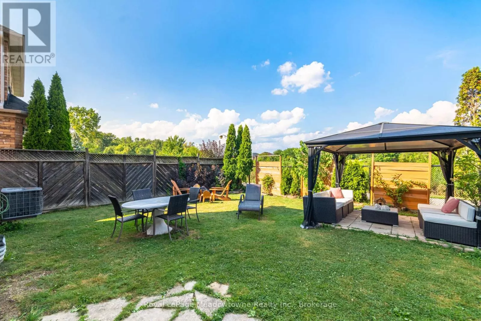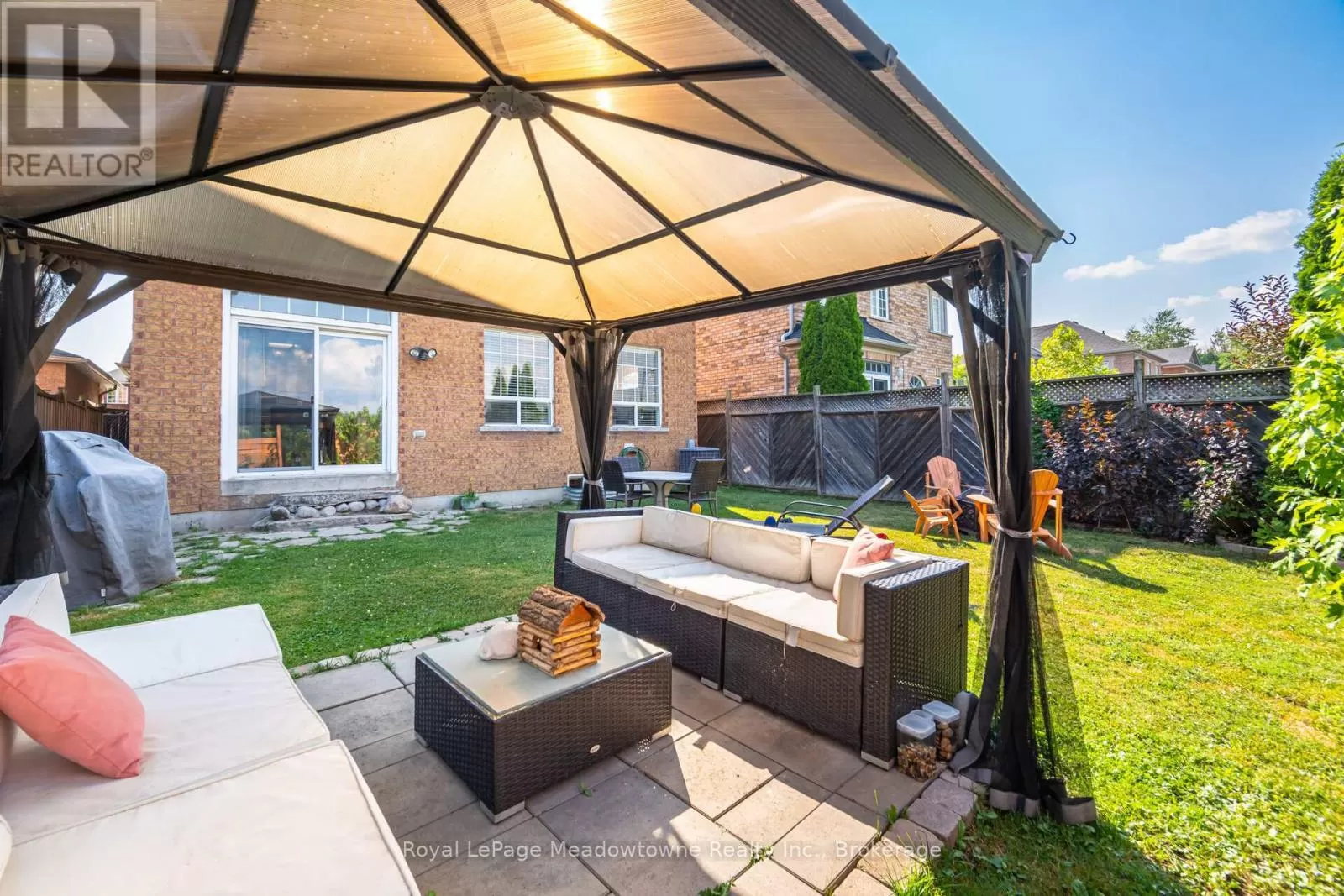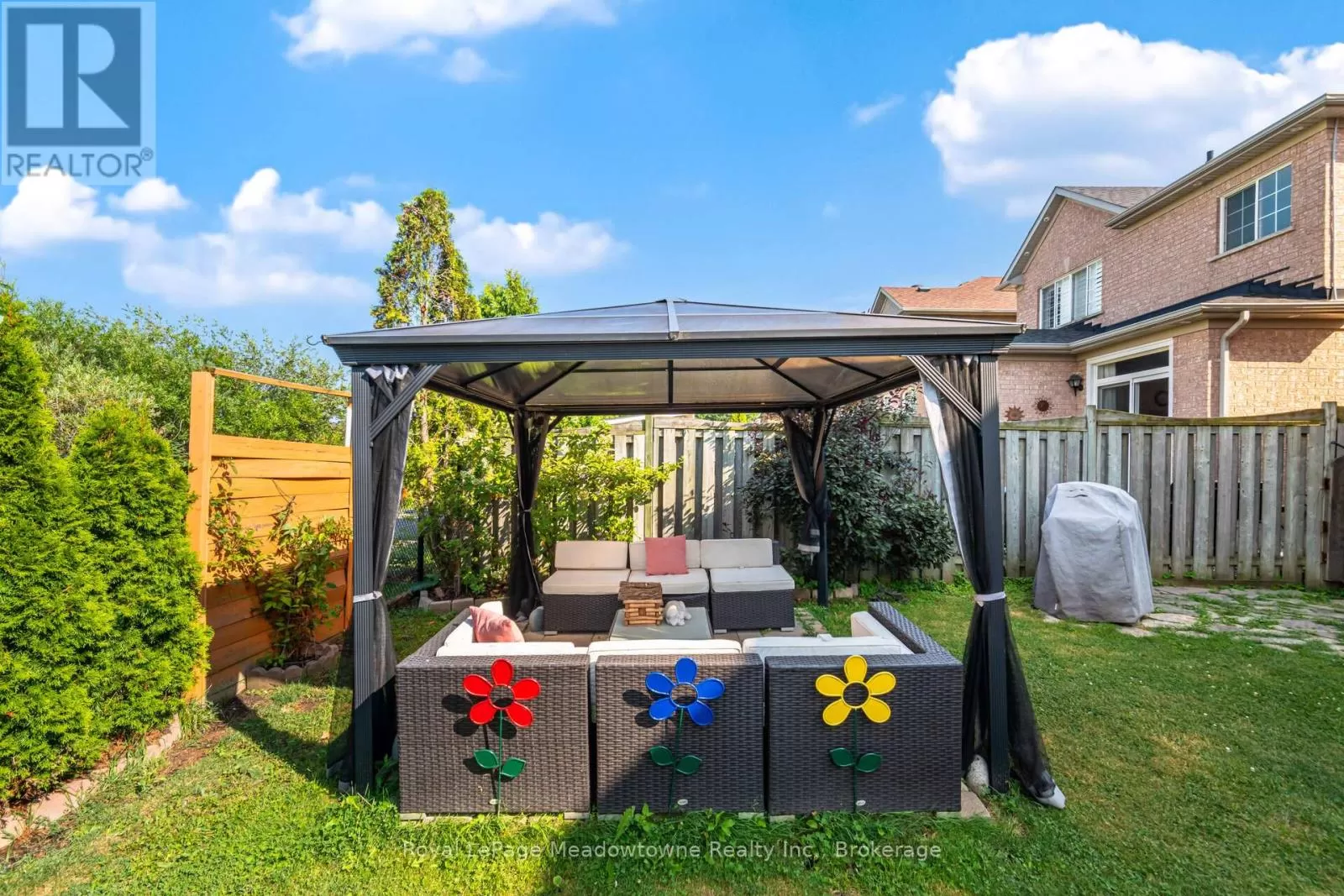 Cross Streets: Thompson and Main. ** Directions: Thompson/Sprucedale/Manley. Welcome to this stunning 4+2 bed, 4+1 bath detached home with a double car garage, located in highly desirable Dempsey neighbourhood. Backing onto a peaceful ravine, this Greenpark-built Westgate 6 model offers 2,640 sq ft plus finished basement, combining space, style, and privacy. Step into a bright and welcoming foyer with tiled flooring & generous coat closet. The open-concept living & dining rooms feature elegant hardwood floors and are flooded with natural light perfect for hosting or relaxing.The updated eat-in kitchen is the heart of the home, boasting crisp white cabinetry, dark granite countertops, stylish tile backsplash, & s/s appls including a new range hood. The spacious breakfast area offers a w/o to the backyard & overlooks the cozy family room, which features a gas fireplace, hardwood flooring & large picture windows showcasing views of the ravine.Upstairs, you'll find 4 generous bedrooms & 3 full bathrooms. The primary suite, located at the rear for maximum privacy, includes a w/I closet and 4-c ensuite with soaker tub, large vanity & separate shower. Bedrooms 2 & 3 share a convenient Jack & Jill bathroom, while bedroom 4 enjoys its own private ensuite & double closet.The finished basement offers incredible versatility use the space as additional bedrooms, a home office, gym, playroom or rec room. A 4-piece bathroom and laundry room are also located on this level.Enjoy your own private backyard oasis, fully fenced with mature gardens, greenery, & multiple seating areas, including a flagstone patio & stone patio ideal for dining or lounging. Ideally located close to all major amenities grocery stores, restaurants, theatres, shops & public transit and within walking distance to schools, parks, library, & arts centre. Easy access to Highway 401 & 407 makes commuting simple & convenient. Dont miss this rare opportunity to own a ravine-lot home in one of Miltons most sought-after communities. (id:27476)