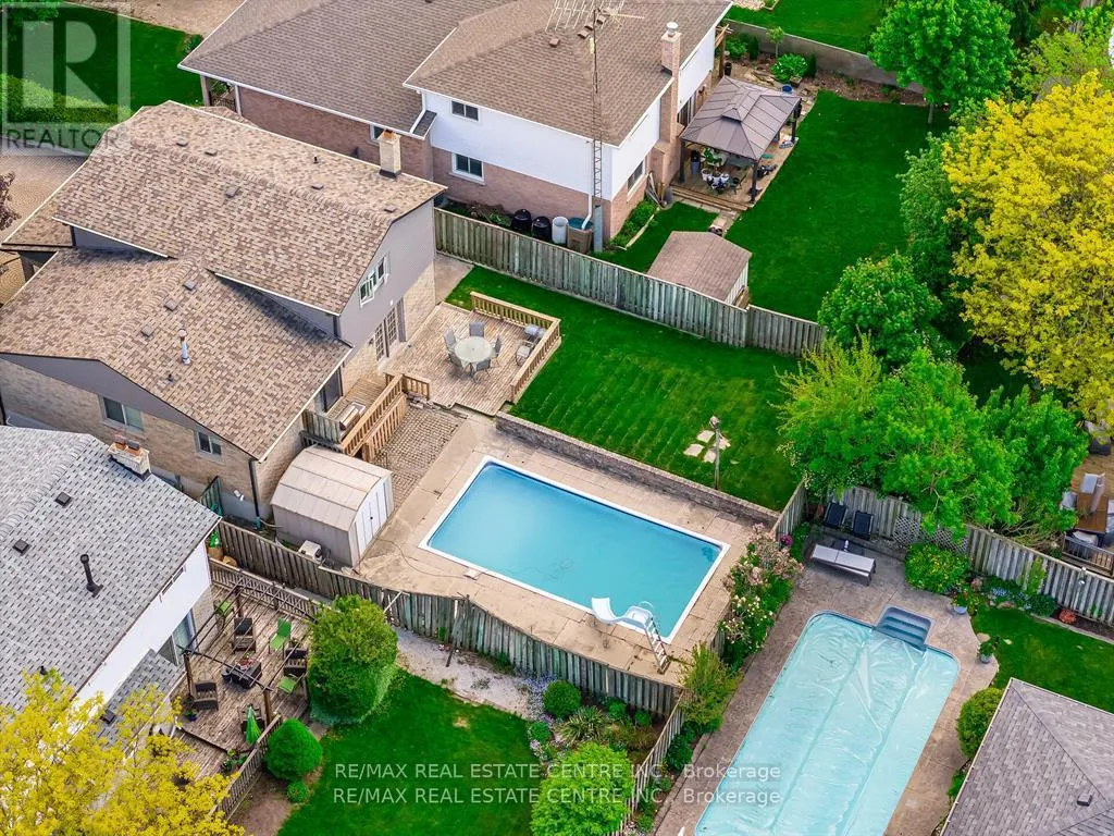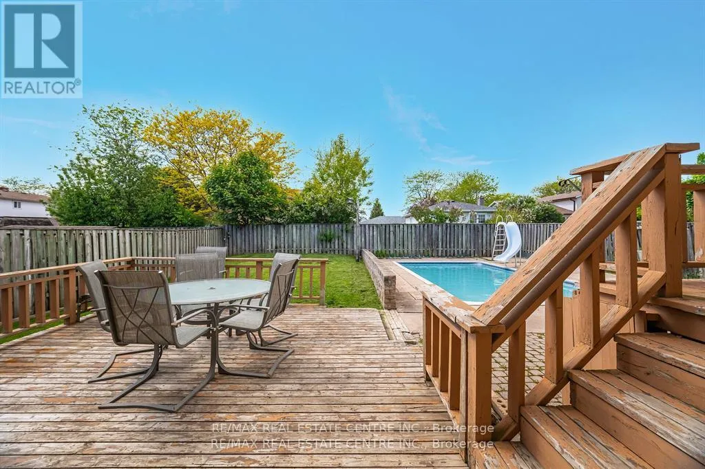 Derry Rd. and Ontario St S A Perfect Family Home in Sought-After Timberlea Just Waiting for Your Personal Touch! Welcome to this charming and spacious home, situated in the highly desirable Timberlea neighbourhood, celebrated for its proximity to parks, top-rated schools, scenic walking trails, and all essential amenities. From the moment you arrive, the extra-deep interlocked driveway (no sidewalk fits up to 6 small or 4 large vehicles) and covered front porch offer a warm and inviting welcome. Step inside to discover:A bright and oversized foyer, cozy family room featuring a wood-burning fireplace and walk-out access to your dream backyard oasis. Family-sized kitchen with breakfast area, Formal dining Area and living room perfect for entertaining family and friends. The backyard is a true retreat with a heated in-ground pool, ideal for summer fun and relaxation. Enjoy the convenience of main floor laundry and a mudroom for everyday functionality. Finished Basement (excluding crawl space) features: Separate entrance from the backyard, full bathroom, spacious Rec Room with above-grade windows(can be converted to bedroom), ample storage space. Notable Updates: Front lawn sprinkler system (2021), New siding & insulation (2020), Pool pump (2018), Pool heater (2016), attic insulation, and water softener (2015 ) .*Roof, Furnace ( 2015 by Previous owners)*, This home offers space, function, and major updates already in place, ready for your finishing touches to make it truly yours. (id:27476)