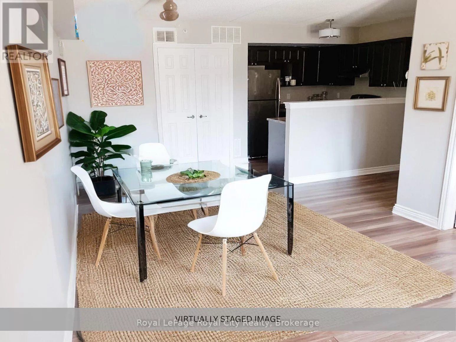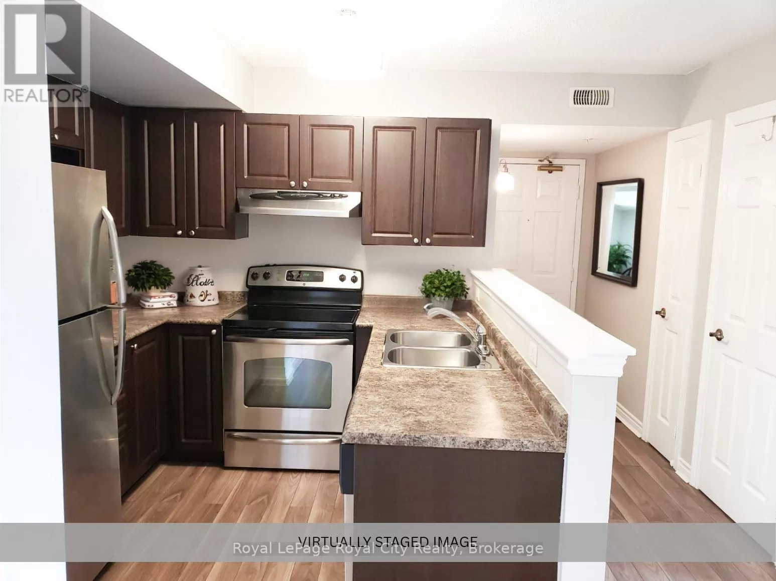 Main St E & Maple Ave Welcome to this beautifully maintained one-bedroom Oxford model condo located in the vibrant Dempsey neighbourhood of Milton. Offering over 650 sq ft of functional living space, this home is ideal for first-time buyers, commuters, or investors. The kitchen features dark, elegant cabinetry and generous storage perfect for cooking and entertaining. The bright open-concept layout flows into a spacious living area with a walkout to a private balcony. The primary bedroom includes a large closet and ample natural light. A full 4-piecebathroom and in-suite laundry add comfort and convenience. This well-managed building offers excellent amenities including a gym, party room/club house and visitor parking. A commuters dream with quick access to Hwy 401, Hwy 407, and Milton GO Station. Walk to grocery stores, restaurants, movie theatres, and the Milton Leisure Centre. Surrounded by parks, walking trails, and family-friendly amenities. Don't miss this opportunity to live in one of Miltons most connected and desirable communities! (id:27476)
