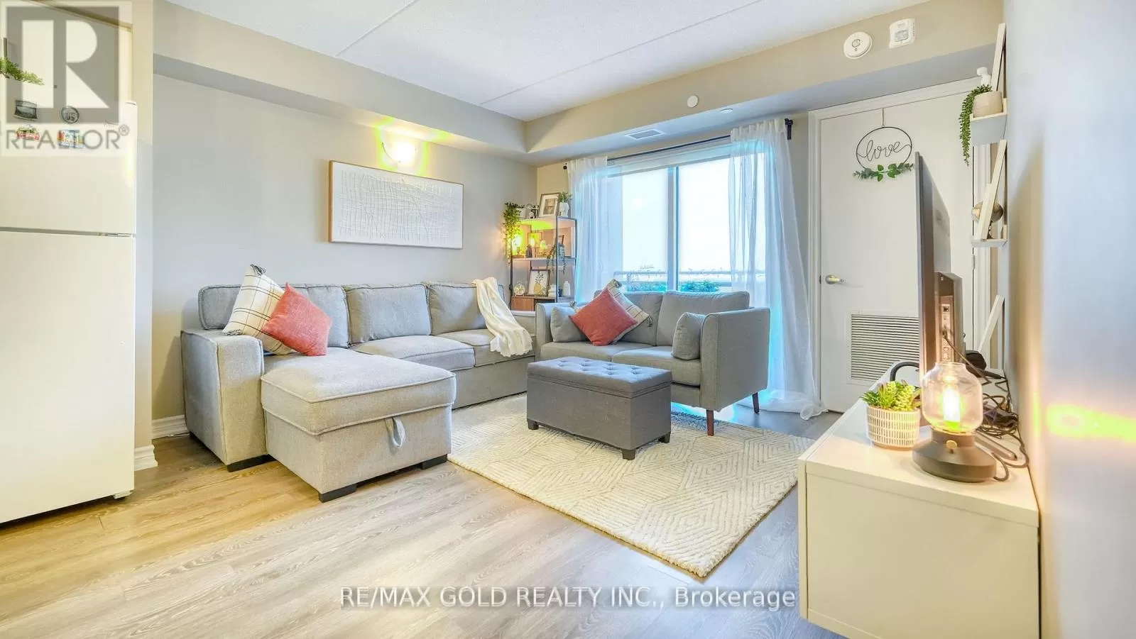 Thompson Rd / Main St E Modern 2+1 bedroom, 2 bathroom condo in one of Milton's most desirable locations, just steps from the GO Station, Superstore, restaurants, banks, shops, and the Milton Arts & Leisure Centre. This bright, open-concept unit features large windows, a modern upgraded kitchen, spacious living/dining areas, Laminate flooring, in-unit laundry, and a private balcony with panoramic city views. The primary bedroom features a walk-in Closet and 4 piece ensuite. The versatile den is perfect for a home office or guest space. Includes all Branded Appliances(Fridge, Stove, B/I Dish Washer, Washer & Dryer), One Surface Parking Spot & One Locker. Enjoy premium building amenities including a Party Room, Roof Top BBQ Terrace, Meeting Room, Guest Suite, Visitor's Parking. Ideal for first-time buyers, investors, or those seeking stylish, low-maintenance living. Easy access to Hwy 401/407, Toronto Premium Outlets, Glen Eden Ski Resort, Kelso conservation area, scenic trails, parks, and top golf courses. Move In & Start Enjoying An Executive Lifestyle. (id:27476)