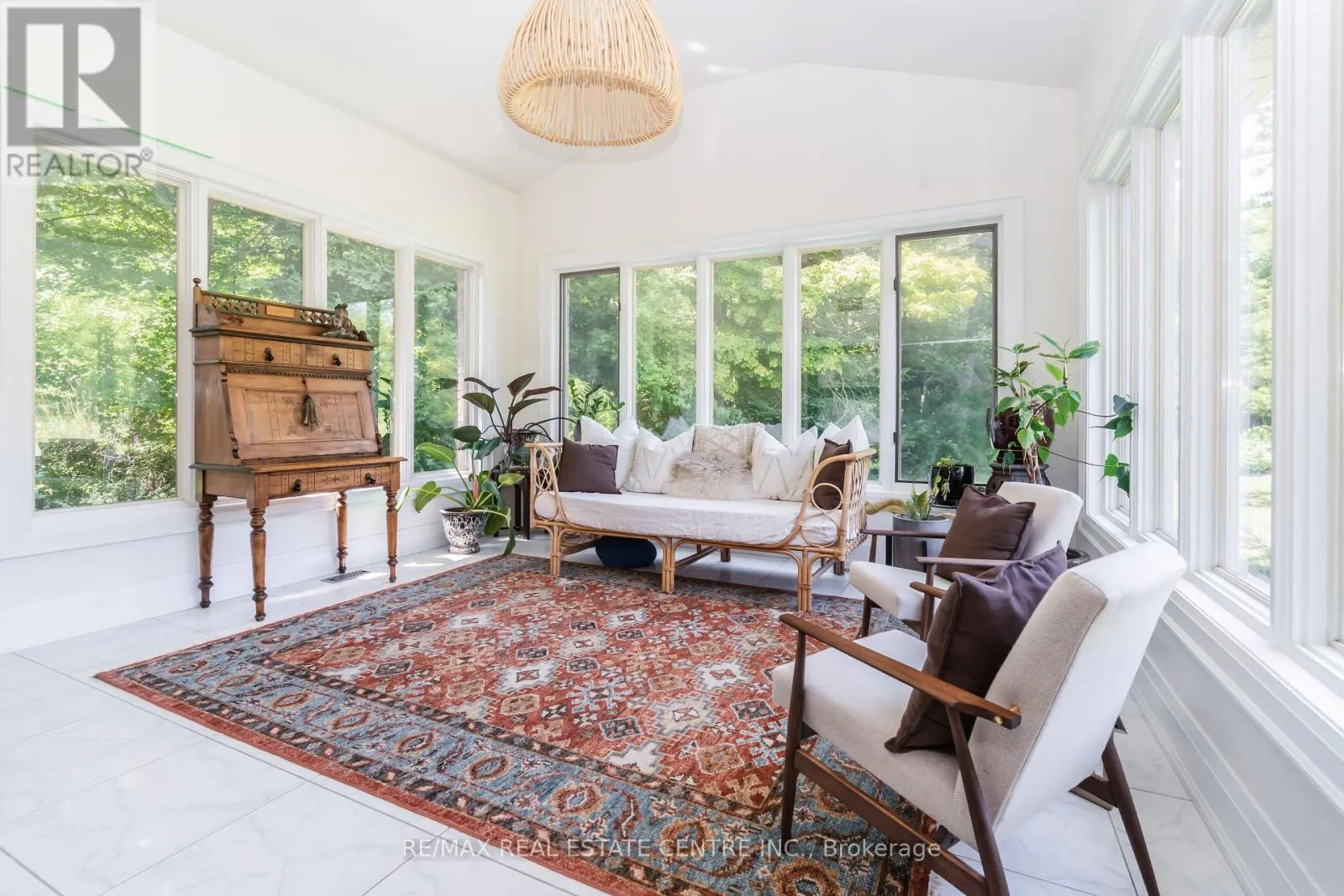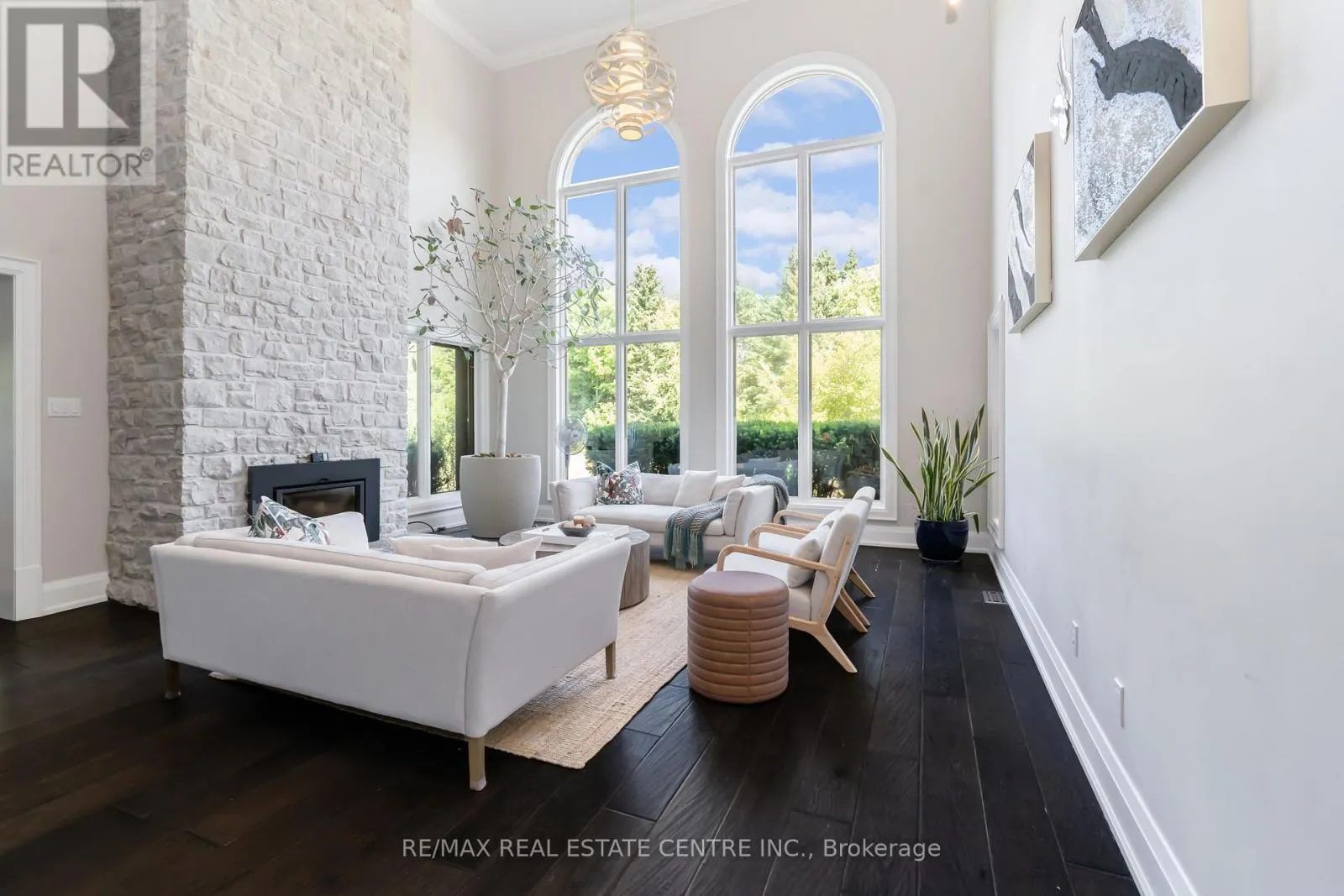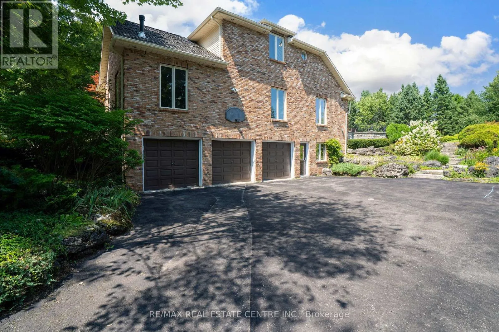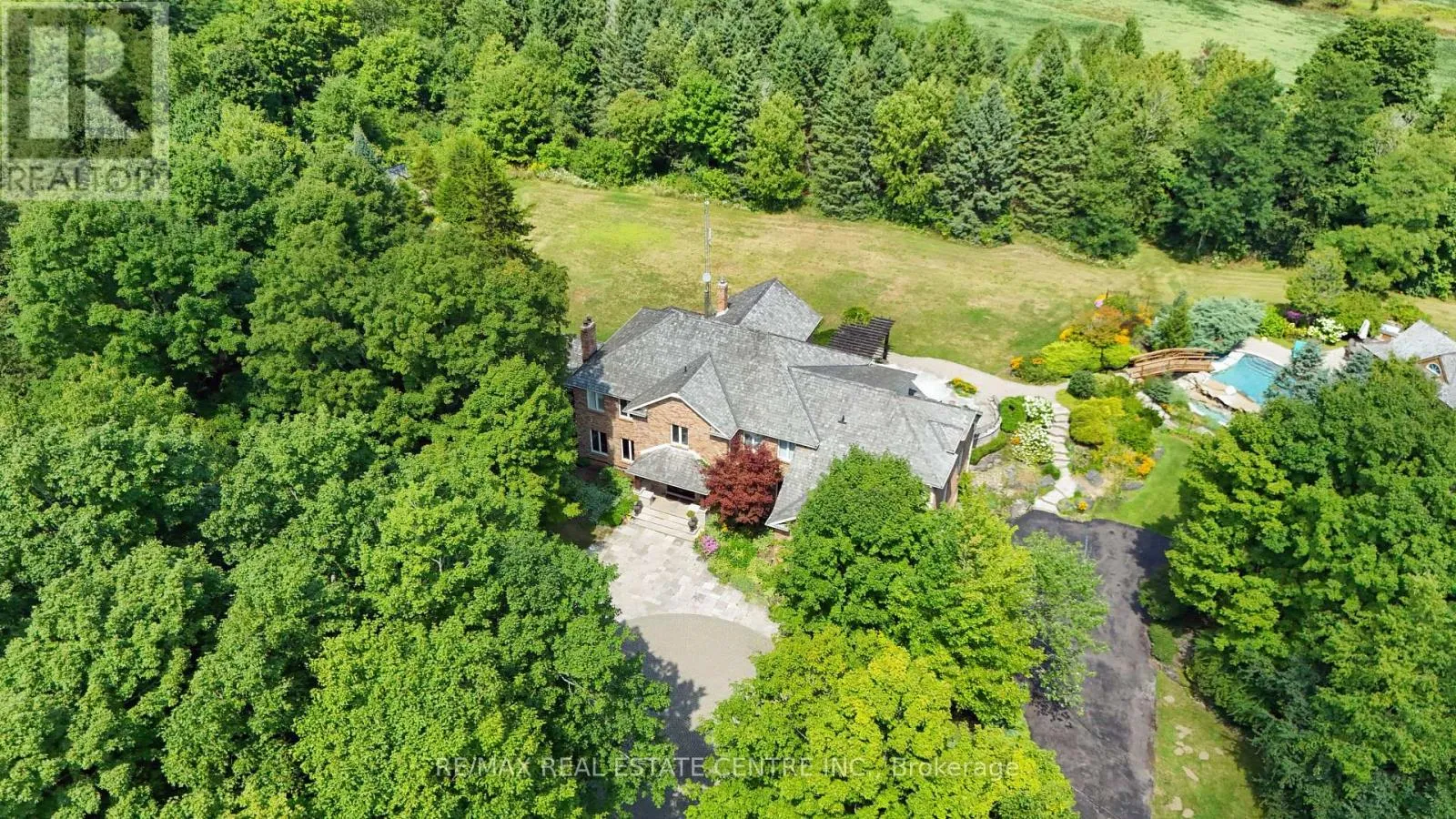 Cross Streets: 4th Line/30 Side Rd. ** Directions: Google maps. A Signature Estate in Nassagaweya. Set at the end of a long, tree-lined drive, this remarkable custom-built 4-bedroom, 7-bathroom residence delivers over 6,100 sq. ft. above grade plus approx 2,000 sq. ft. finished walk-out lower level. The grand two-storey foyer leads to a striking great room with floor-to-ceiling stone fireplace, a light-filled conservatory, private office, and a sunken living room. The chefs kitchen showcases premium appliances, live-edge granite surfaces, an oversized island, and a sunny breakfast nook, while the formal dining room offers a two-sided stone fireplace and custom cabinetry. A billiards lounge with lava rock bar, waffle ceiling, and bespoke built-ins adds to the main floors appeal. Upstairs, the primary suite features a spa-like ensuite and a custom walk-in closet, while three additional bedrooms each have their own designer baths. A secondary staircase provides direct access to the kitchen and laundry. The lower level is fully finished with a large recreation area, games room, and 2-piece bath. Outdoors, the resort-style grounds feature a lagoon-inspired saltwater pool with waterfall, wading area, swim-up bar, and custom hot tub. A cedar pool house with 2- piece bath, sunken outdoor kitchen, and stone patio BBQ space make entertaining effortless. The property also includes two fire pits, a playhouse, horseshoe pit, vast lawn areas, a detached garage with heated workshop, and parking for 50+ vehicles. All within minutes of Rockwood, and an easy commute to Guelph, Milton, the GTA, and Pearson Airport. A home that delivers unmatched luxury, privacy, and lifestyle. (id:27476)
