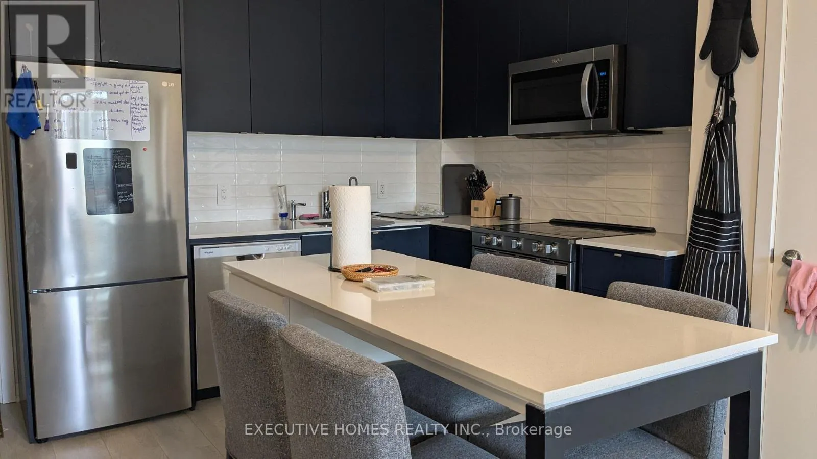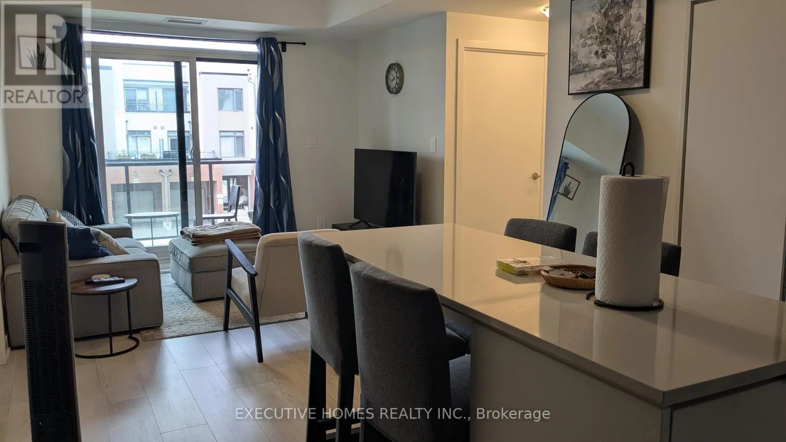Whitlock Ave and Hwy 25 Welcome to this modern and spacious 2-bedroom + den, 2-bathroom in Milton, offering more than 1000 sq. ft. of stylish open-concept living. Featuring 9 ceilings, expansive windows, and a private balcony, the unit is filled with natural light throughout the day. The upgraded kitchen is designed for both function and style, showcasing quartz countertops, stainless steel appliances, an under-mount sink, a built-in microwave, and ample cabinetry. The primary bedroom boasts a walk-in closet and an ensuite bath, while the den can serve as an office, guest room, or kids ' bedroom. With no carpet and high-end finishes throughout, this residence combines comfort with contemporary elegance. Features include 2 underground tandem parking spots, a private locker, and visitor parking. Residents also enjoy premium amenities such as a fitness centre, party/lounge rooms, and elegant common areas. Located in the desirable Ford neighbourhood by Great Gulf, the condo offers unmatched convenience-close to schools, parks, shopping, Kelso Lake, Oakville/Burlington, and with easy access to highways, GO Transit, and local bus routes. Ideal for professionals, couples, or small families, this thoughtfully designed home blends luxury living with everyday practicality in one of Milton's most sought-after communities. Exclusive EV parking is available for an additional cost. (id:27476)