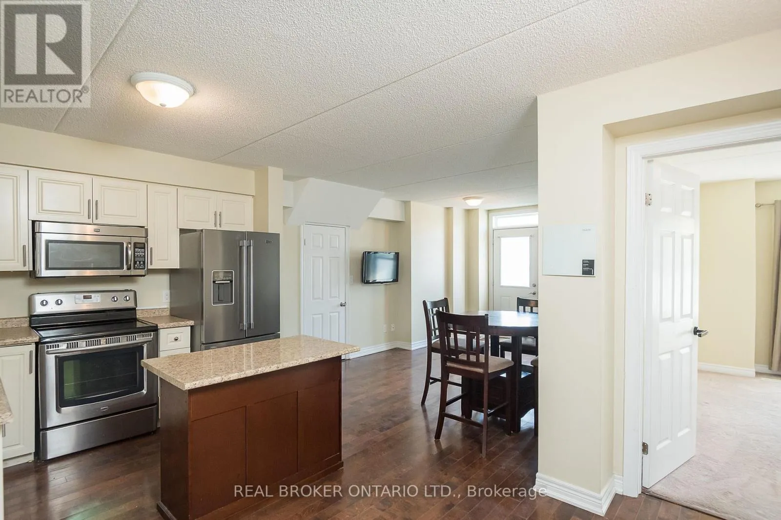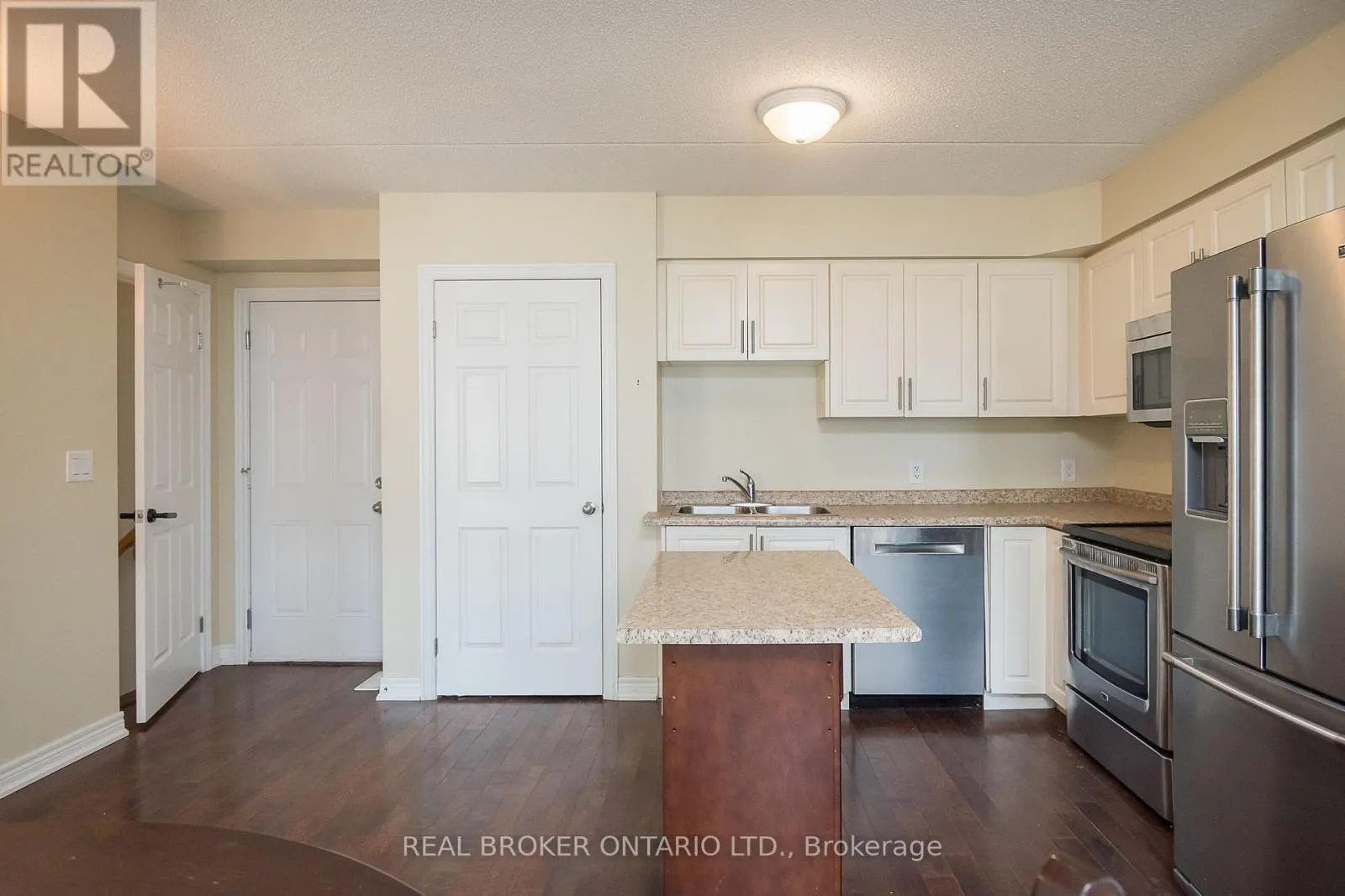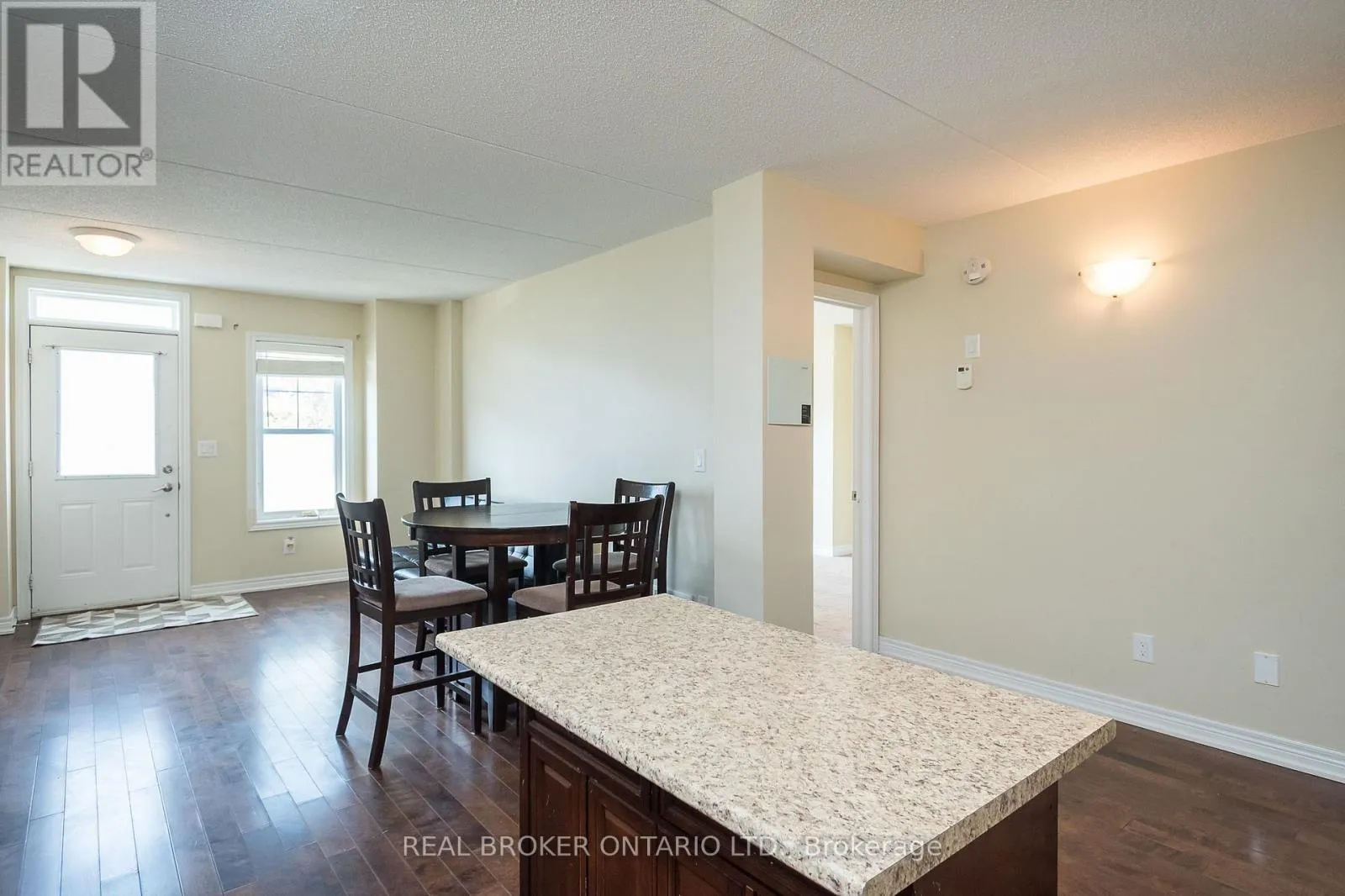 Derry Rd/ Miller Way 2 full bedrooms, 2 full bathrooms and 2 parking spaces with 1438 sqft of total living space! This stacked condo townhome offers rare main-floor living with a spacious primary bedroom, walk-in closet, and full bath, tailor-made for anyone who wants a home that adapts to every stage of life. The open-concept kitchen features newer stainless steel appliances, French door fridge, movable island, and pantry, flowing into the hardwood-lined living area. You'll also appreciate direct access to your private garage, no elevators or long hallways, just pull in and bring groceries straight inside. The finished basement is bright with large egress windows, a full bath, bedroom, and family room, plus custom motorized blackout blinds for comfort. Need more space? The family room can easily be converted into a third bedroom. Outside, enjoy your private terrace with grass, BBQ area, and seating. With low condo fees of only $202.21/month, ensuite laundry, garage + surface parking, and steps to schools, parks, trails, and transit, this home blends style, comfort, and function. Some photos have been virtually staged. (id:27476)