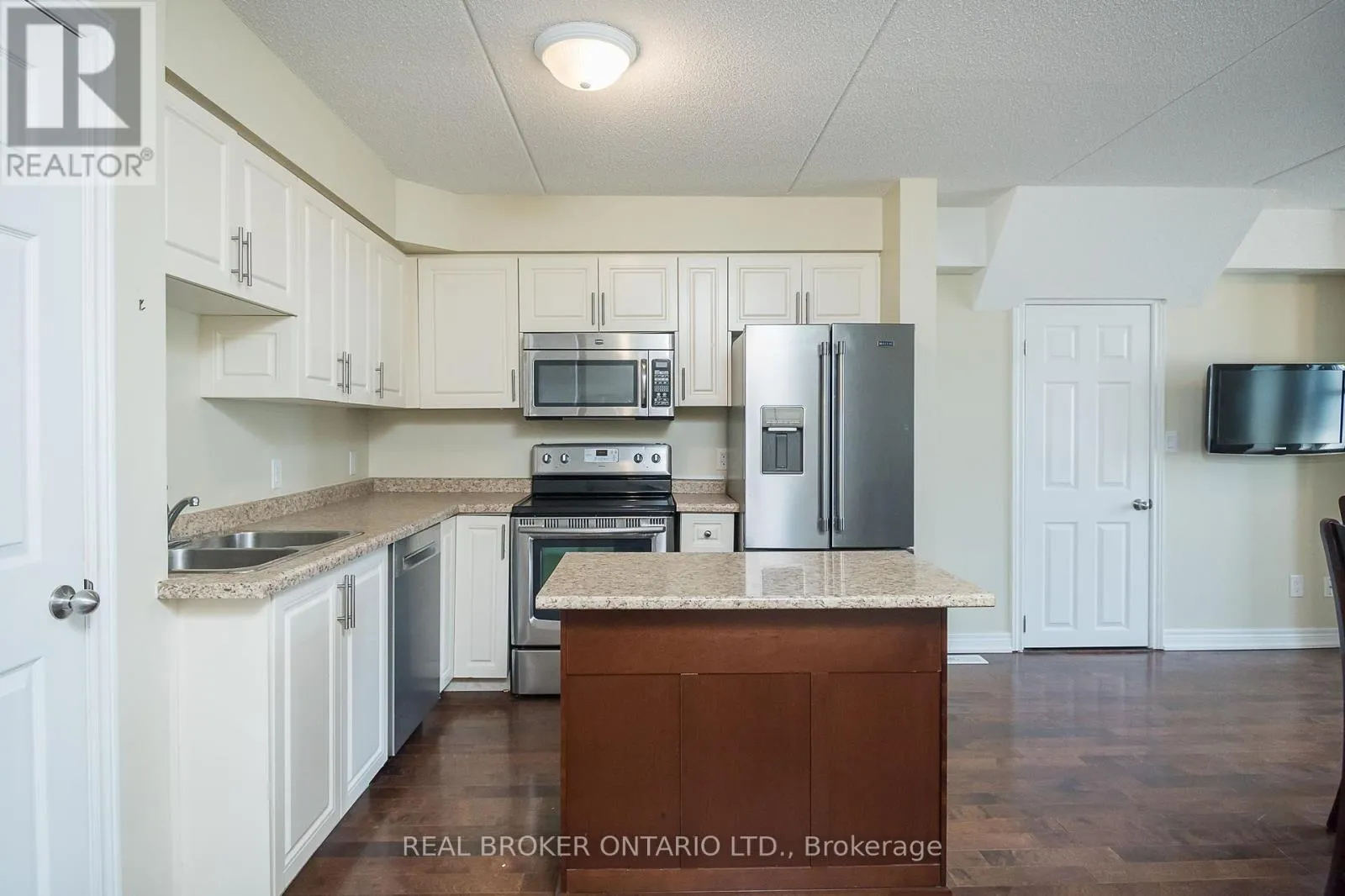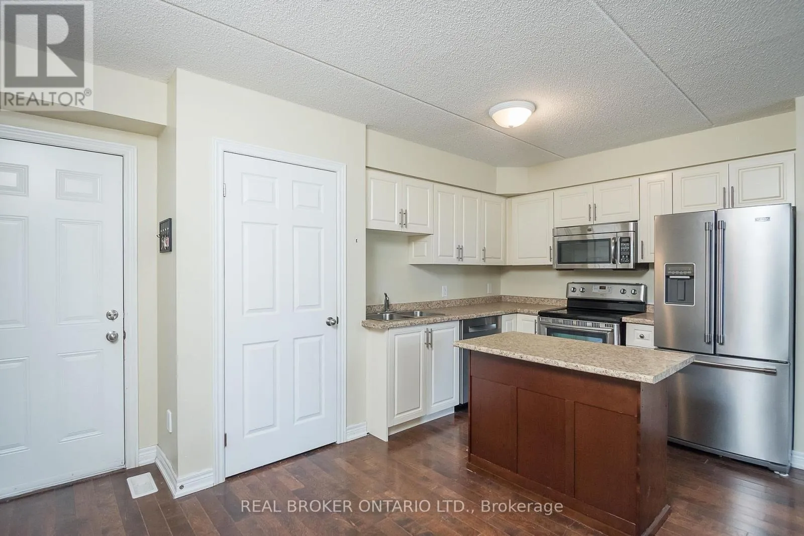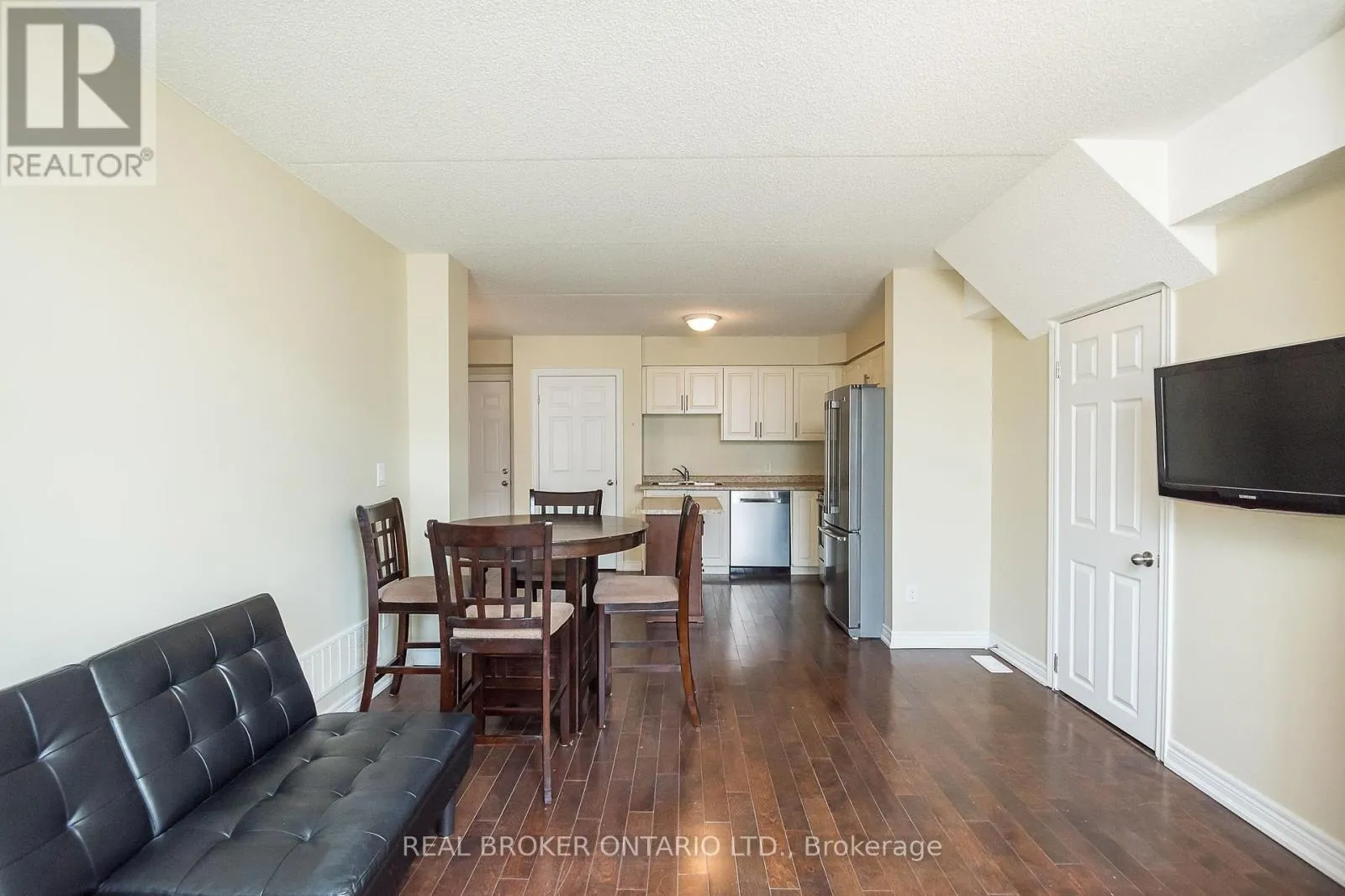 Derry Rd/ Miller Way 2 full bedrooms, 2 full bathrooms and 2 parking spaces with 1438 sqft of total living space! This stacked condo townhome offers rare main-floor living with a spacious primary bedroom, walk-in closet, and full bath, tailor-made for anyone who wants a home that adapts to every stage of life. The open-concept kitchen features newer stainless steel appliances, French door fridge, movable island, and pantry, flowing into the hardwood-lined living area. You'll also appreciate direct access to your private garage, no elevators or long hallways, just pull in and bring groceries straight inside. The finished basement is bright with large egress windows, a full bath, bedroom, and family room, plus custom motorized blackout blinds for comfort. Need more space? The family room can easily be converted into a third bedroom. Outside, enjoy your private terrace with grass, BBQ area, and seating. With low condo fees of only $202.21/month, ensuite laundry, garage + surface parking, and steps to schools, parks, trails, and transit, this home blends style, comfort, and function. Some photos have been virtually staged. (id:27476)