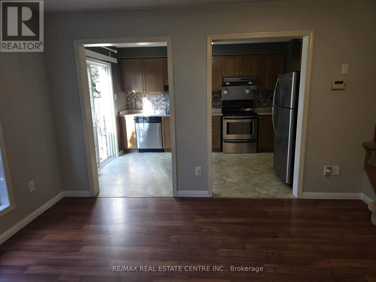 Cross Streets: Tompson/Clark. ** Directions: Clark Blvd. to Riddell Cres. Beautiful 3 Beds, 3 Baths Town house with finished basement and 3 Parking spaces. Backs on to a GREEN SPACE. Lovely and peaceful landscaped fully fenced Private backyard is one of the great features of this house. No Houses in the back. Located in the heart of Milton (Thompson and Clark). Steps to Parks, Public Transit and schools. Milton Go is merely 3 Km away. Heartbeat to new Freshco, Metro, Shoppers Drug Mart, and Many New Restaurants. Minutes to Highway 401. Freshly Painted. Entrance from Garage to home. . The basement has a large Rec room and 3 pc bath and storage room. Master Bedroom has walk in closet and semi-ensuite 4 Pc. bath. Front Entrance has a glass enclosed porch. Comes with One Garage and 2 car park extended driveway with NO SIDEWALK. For List of schools and parks, please see the attached schedule. A great Neighborhood for raising your children. The previous tenants stayed for over 8 years. Looking for A++ tenants only. Available Immediately. (id:27476)