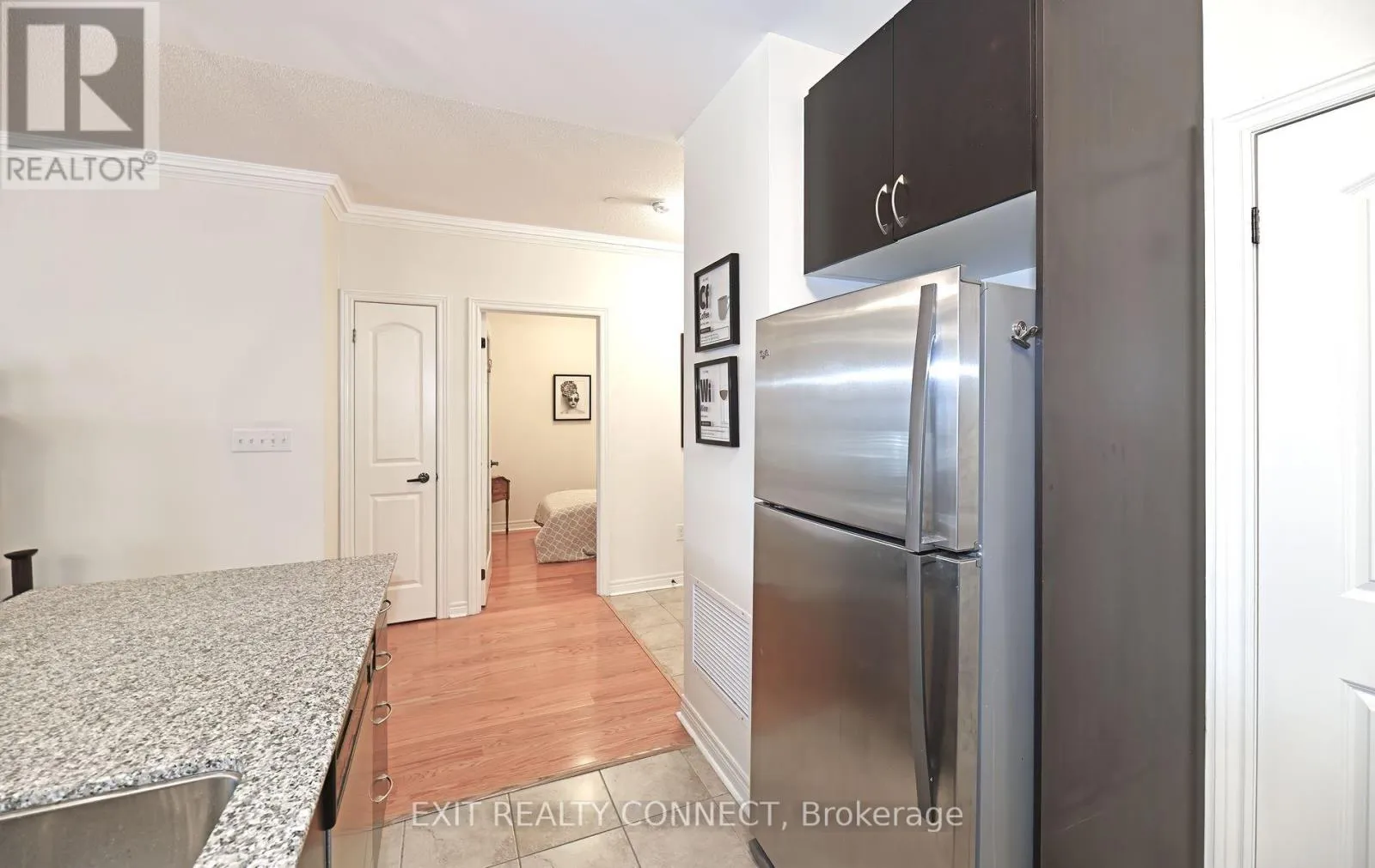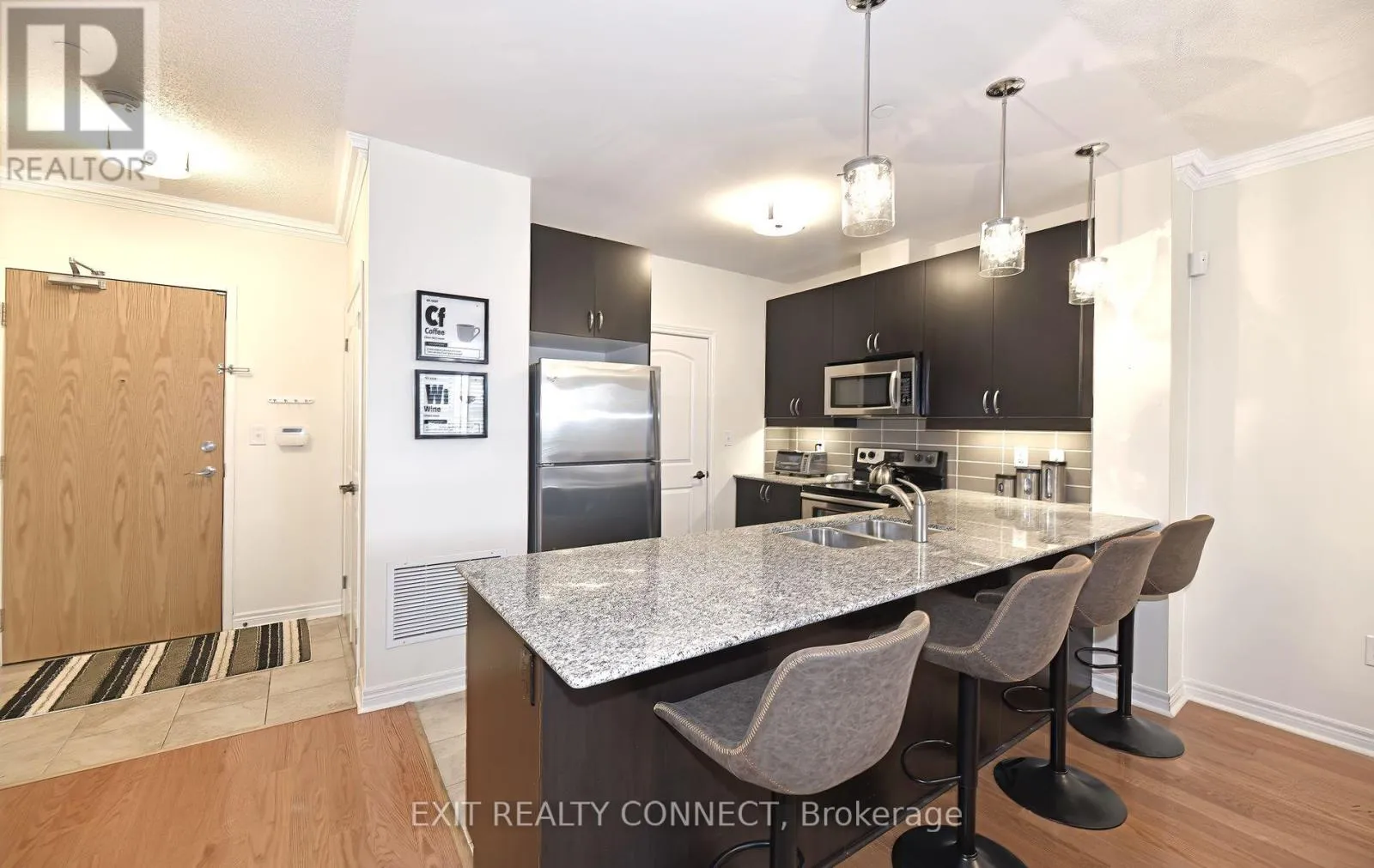 Ontario St N & Main St E Discover over 1,200 square feet of thoughtfully designed living space in this bright and spacious 2-bedroom plus den condo, ideally situated on the ground floor of Milton's highly regarded Green Life community. Known for its innovative geothermal heating and cooling, this energy-efficient building offers sustainable living without compromising on comfort or style. The open-concept layout features a modern kitchen with a breakfast bar, a welcoming dining area, and a generous living room with a walk-out to your private patio perfect for enjoying your morning coffee or unwinding in the evening. Inside, the versatile den provides the ideal space for a home office, guest room, or hobby room. The 2 additional bedrooms are generously sized, and the primary suite offers ample storage thanks to a walk in closet, it also boast a 4pc bath with soaker tub and an abundance of natural light. This unit's prime location within the building puts you steps from all the essentials front and rear entrances, the elevators, the garbage chute, and your parking spots (one underground near the elevators and one surface spot close to the rear entrance) yet your new home remains impressively quiet and private thanks to excellent builder soundproofing. You're conveniently close to the gym, party room, and games room, making everyday living both accessible and enjoyable. Complete with a private storage locker and just moments to downtown Milton, the Milton Centre for the Arts, shops, restaurants, parks, and GO Transit, this condo is ideal for first-time buyers, downsizers, or investors alike. (id:27476)