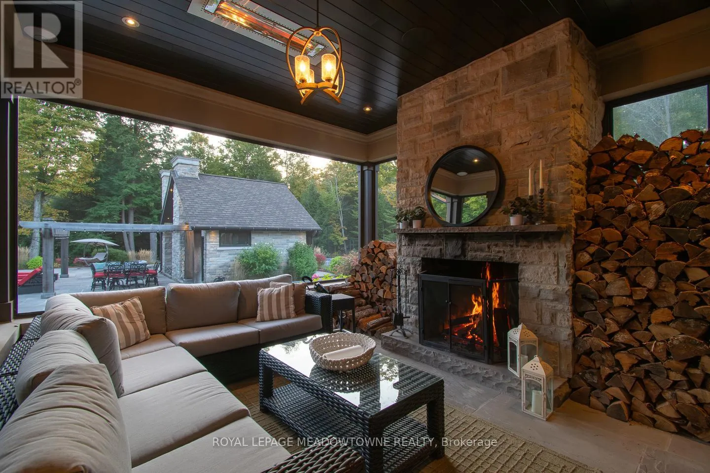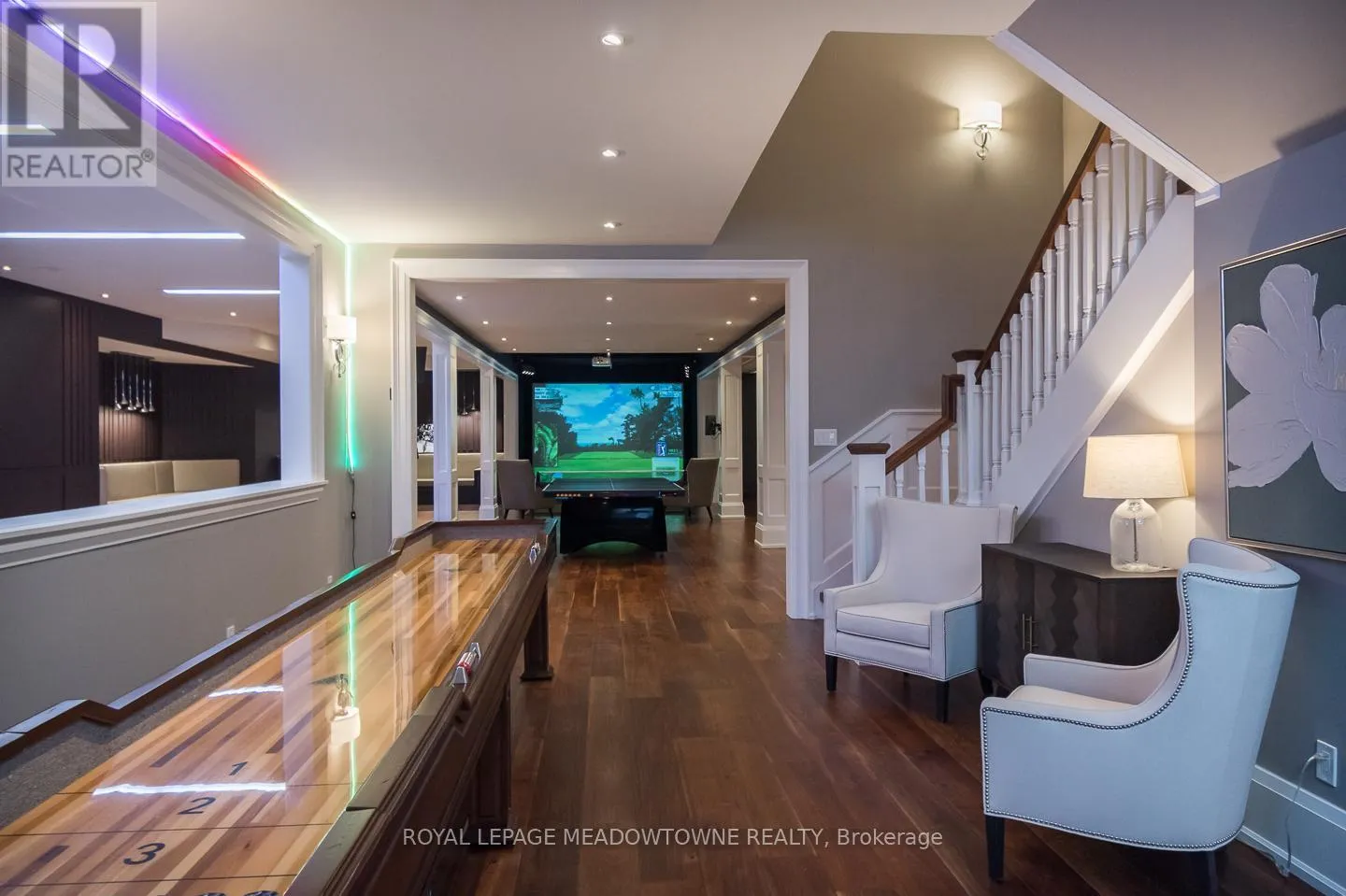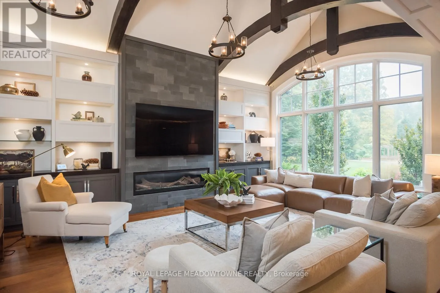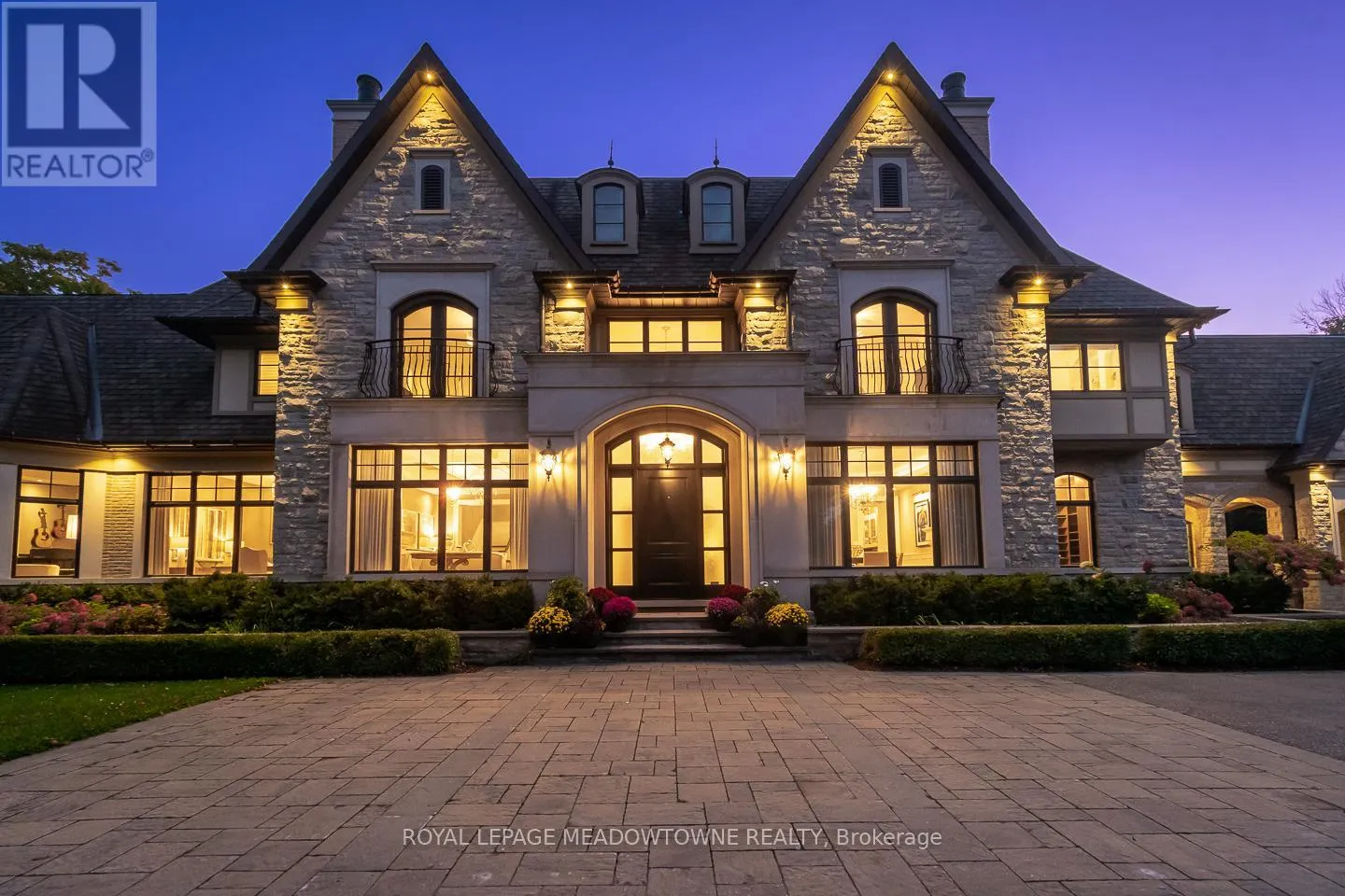 Cross Streets: 25 Side Road/Nassagaweya Esquesing Townline. ** Directions: Hwy 25 - 25 Side Rd - Nassagaweya Esquesing Townline. A forested 5-acre sanctuary where architectural brilliance meets resort-style living. This estate is a masterclass in design, indulgence, and lifestyle. With over 16,000 sq ft of finished space, it offers a rare blend of grandeur and warmth. The main floor primary wing is a retreat unto itself, featuring dual dressing rooms, library, spa-inspired ensuite, sauna, and walkout to a private deck with hot tub. Formal living and dining rooms, a vaulted family room, and chef's kitchen with butler's servery anchor the home's heart. Entertainment spaces include a bowling alley, golf simulator, cinema, arcade, spa room, bar and billiards lounge all connected by elevator across three levels. A separate nanny/in-law suite via breezeway offers seamless multi-generational living. Outdoors, discover a saltwater pool, pavilion, casita, pool house, pizza oven, fire pit, vegetable garden, and Raptors-inspired basketball court. Geothermal heating, smart home integration, and lush landscaping elevate every moment. This is more than a home, it's a legacy property, a lifestyle statement, and a rare opportunity to live expansively, with privacy, prestige, and purpose. (id:27476)