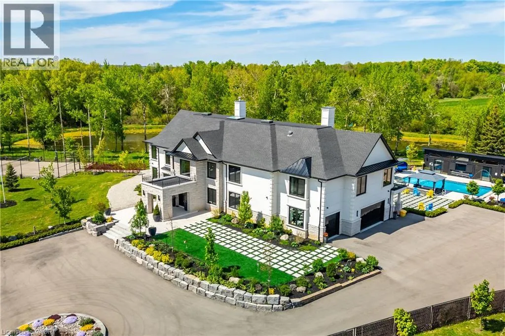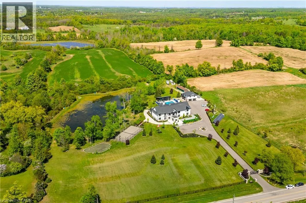 Sixth Line & 25th Side Road, Halton A rare opportunity to own a truly exceptional family retreat on 5.76 acres of private, tree-lined paradise. Thoughtfully designed and custom built by its owners, this one-of-a-kind estate blends luxury and warmth in equal measure. A place where timeless design meets everyday comfort. From the moment you step inside, the soaring 22-ft foyer and striking floating staircase set the tone for whatâs to come. Expansive windows flood the home with natural light, seamlessly connecting the indoors with the beauty of the surrounding landscape. Every space here was created with family and connection in mind. The heart of the home is an extraordinary chefâs kitchen, anchored by dual islands with seating for 14, top-of-the-line appliances, and effortless flow into the sunroom and outdoor kitchen. Itâs a space designed for gatherings, where Sunday dinners stretch late into the evening and celebrations spill out under the stars. For everyday indulgence, this estate offers an incredible private spa with a 10-person jacuzzi, steam room, and sauna, plus a home theatre, gym, games area, and full bar. A private elevator adds ease, while a three-bedroom guest suite above the garage provides flexibility for extended family, in-laws, or a live-in nanny. Outdoors, the possibilities are endless. Lounge by the heated saltwater pool, host evenings around one of two fire pits, or enjoy a friendly game on the tennis and basketball courts. Wander along walking paths that circle a peaceful private pond or simply relax in one of the many quiet corners designed for reflection and connection with nature. This estate is as smart and sustainable as it is beautiful, with solar and geothermal systems, full smart-home integration, and two septic systems. This property is designed to stand the test of time and a place to build a legacy. Where laughter echoes through the halls, traditions take root, and generations come together. A lifestyle of luxury, privacy, and possibility awaits. (id:27476)