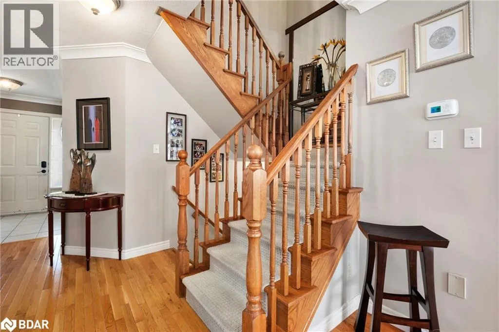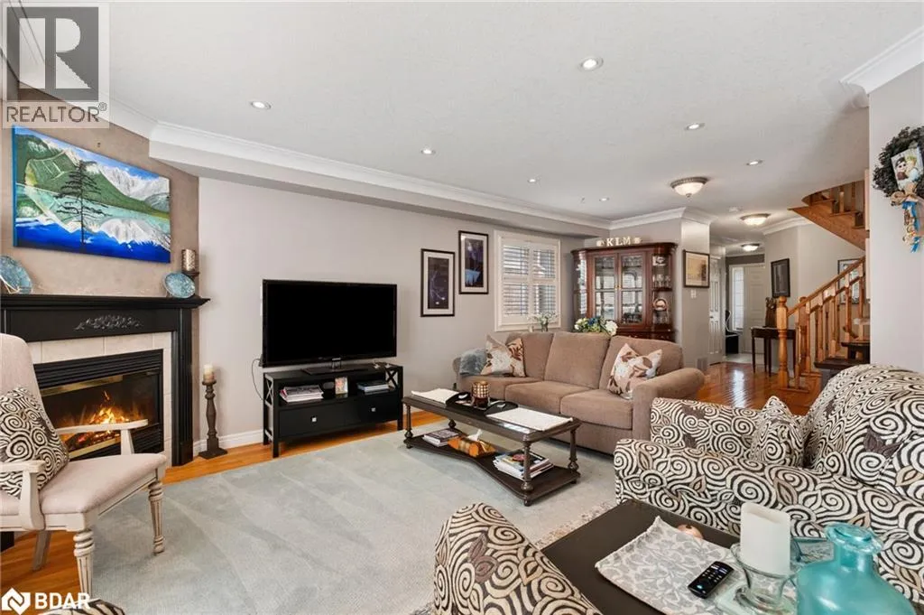 Bronte St S to Robert St Rarely offered in the private enclave of The Fairfield's of Milton. The executive townhome is ideally located Milton's downtown core where modern comfort meets Old Milton charm. Overlooking lush green space, a stream, and the Milton Fairgrounds, the setting feels both private and serene. This 2 storey end-unit offers a bright, open layout with hardwood and ceramic tile throughout the main floor. The Great Room is accented with pot lights, crown moulding, and a cozy gas fireplace, and flows seamlessly into the kitchen and out to a peaceful private garden. The main-floor laundry with direct access to the double garage and a 2 piece bathroom adds convenience. Upstairs, three generous bedrooms include a primary retreat with a soaker tub and separate walk-in shower. Cozy broadloom and California shutters bring warmth and elegance to the bedrooms. The professionally finished basement extends the living space, making it ideal for a family room, games area, or theatre. At The Fairfields, low-maintenanceliving means snow removal, lawn care, exterior window washing, and other upkeep are all taken care of for you. That gives you more time to enjoy the your neighbourhood or explore Miltons historic Main Street which is lined with cafés, shops, restaurants, and community events--All just steps from your door. This is more than a home; its a lifestyle in one of Miltons most sought-after communities. (id:27476)