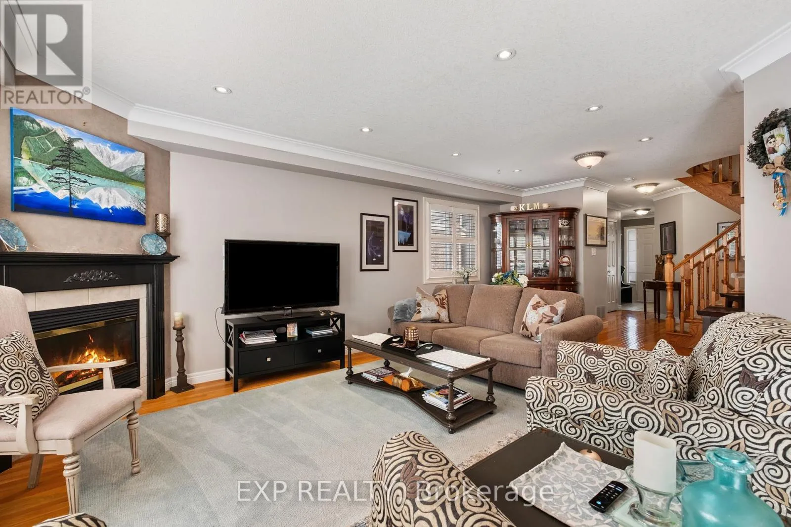 Cross Streets: Bronte St S & Robert St. ** Directions: Bronte St. S. to Robert St. Rarely offered in the private enclave of The Fairfield's of Milton. The executive townhome is ideally located Milton's downtown core where modern comfort meets Old Milton charm. Overlooking lush green space, a stream, and the Milton Fairgrounds, the setting feels both private and serene. This 2 storey end-unit offers a bright, open layout with hardwood and ceramic tile throughout the main floor. The Great Room is accented with pot lights, crown moulding, and a cozy gas fireplace, and flows seamlessly into the kitchen and out to a peaceful private garden. The main-floor laundry with direct access to the double garage and a 2 piece bathroom adds convenience. Upstairs, three generous bedrooms include a primary retreat with a soaker tub and separate walk-in shower. Cozy broadloom and California shutters bring warmth and elegance to the bedrooms. The professionally finished basement extends the living space, making it ideal for a family room, games area, or theatre. At The Fairfields, low-maintenanceliving means snow removal, lawn care, exterior window washing, and other upkeep are all taken care of for you. That gives you more time to enjoy the your neighbourhood or explore Miltons historic Main Street which is lined with cafés, shops, restaurants, and community events--All just steps from your door. This is more than a home; its a lifestyle in one of Miltons most sought-after communities. (id:27476)