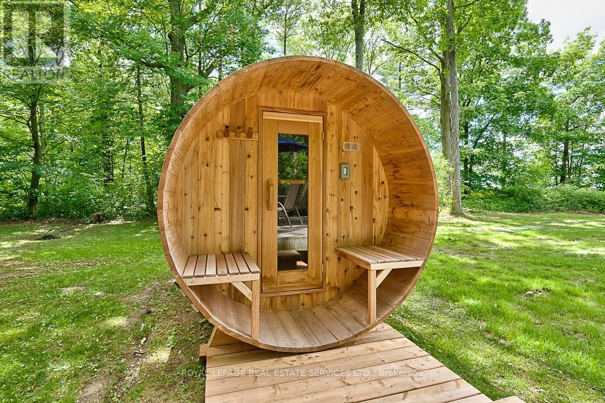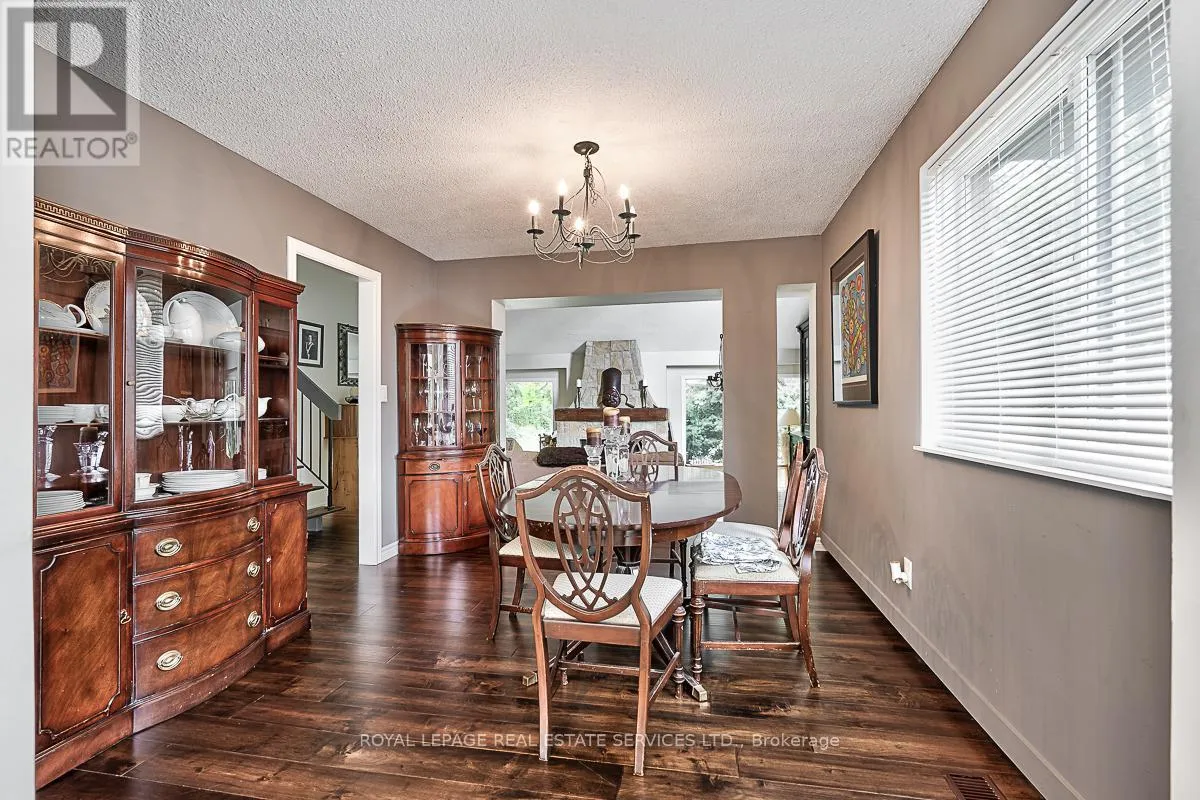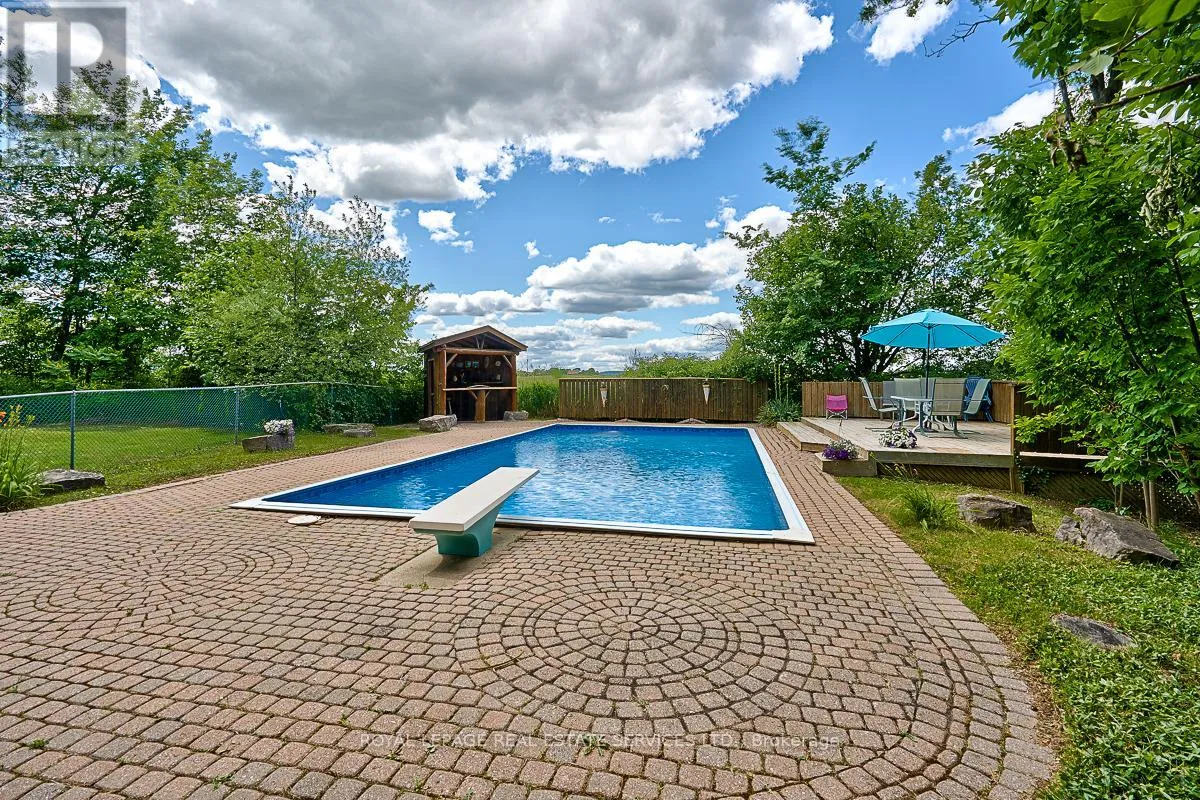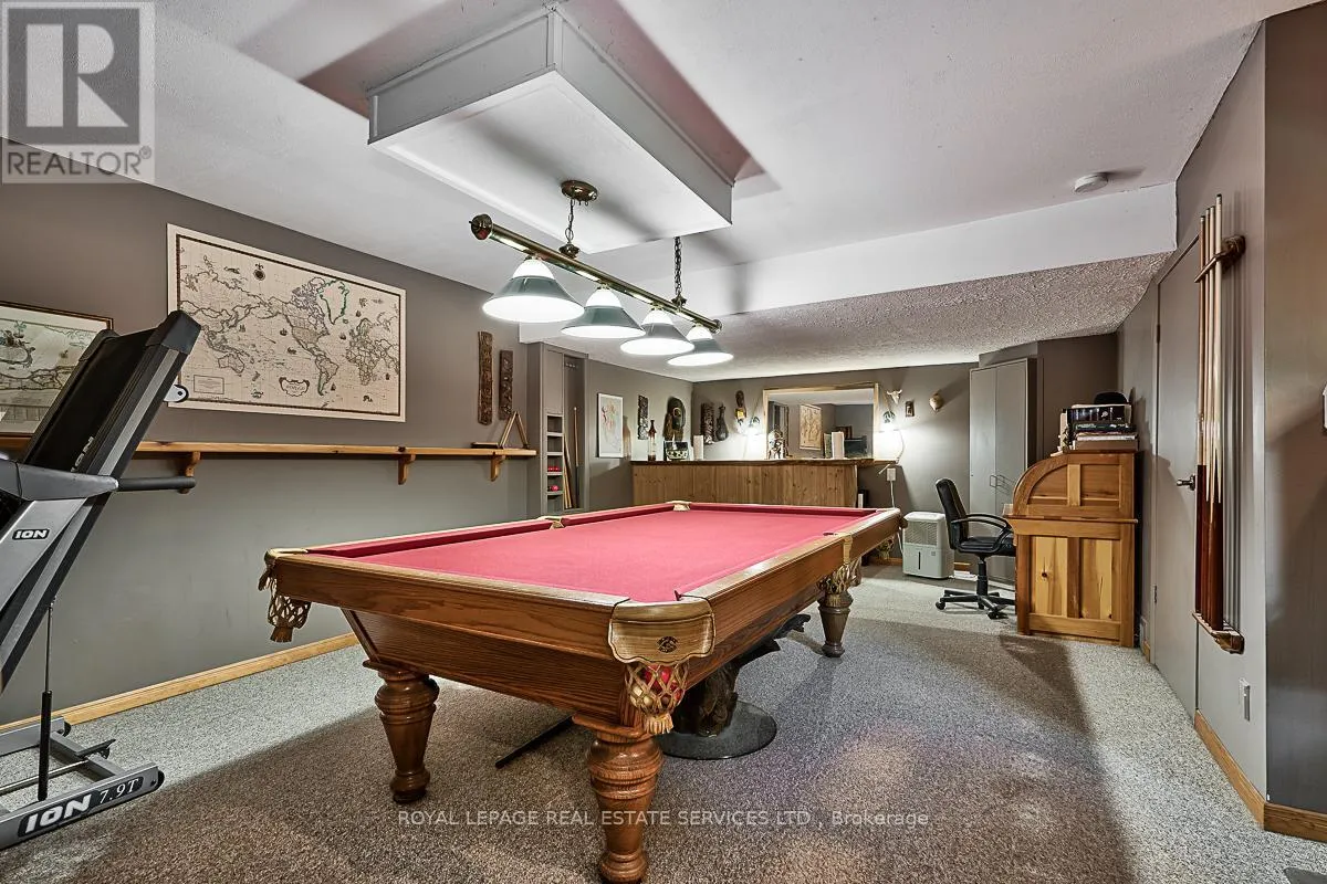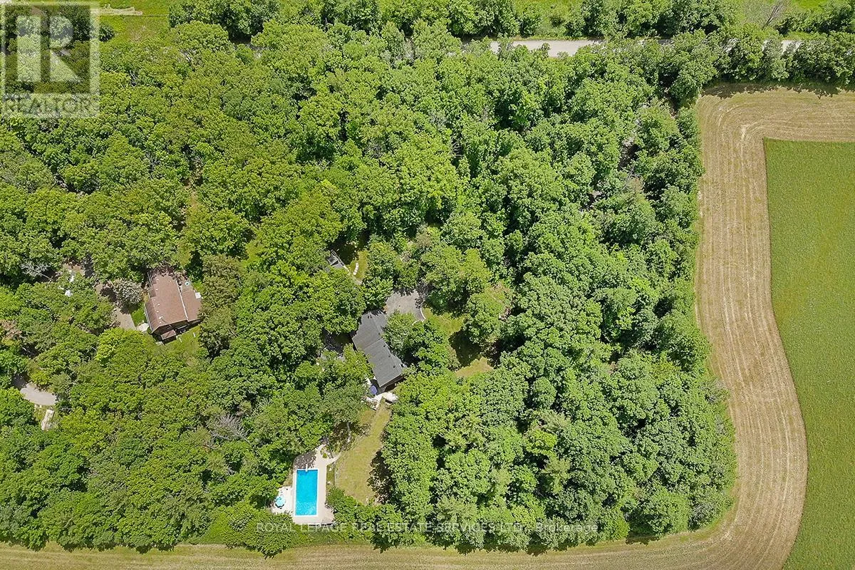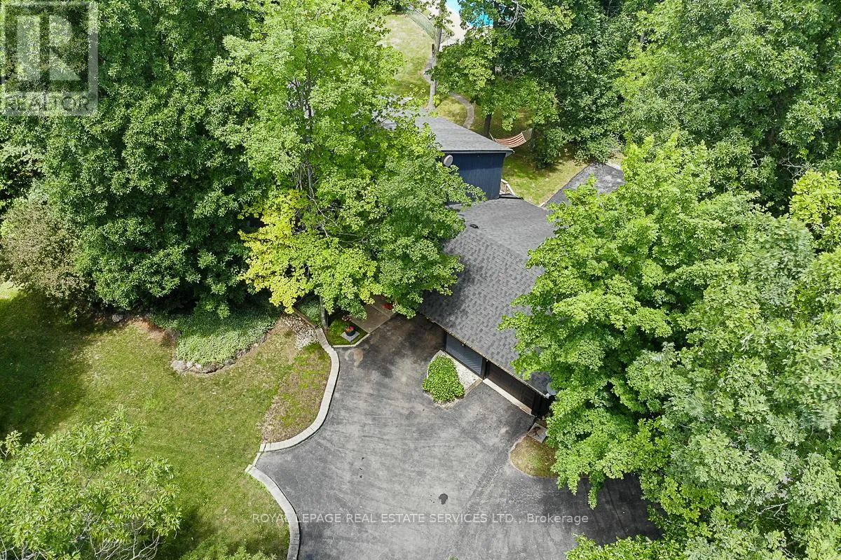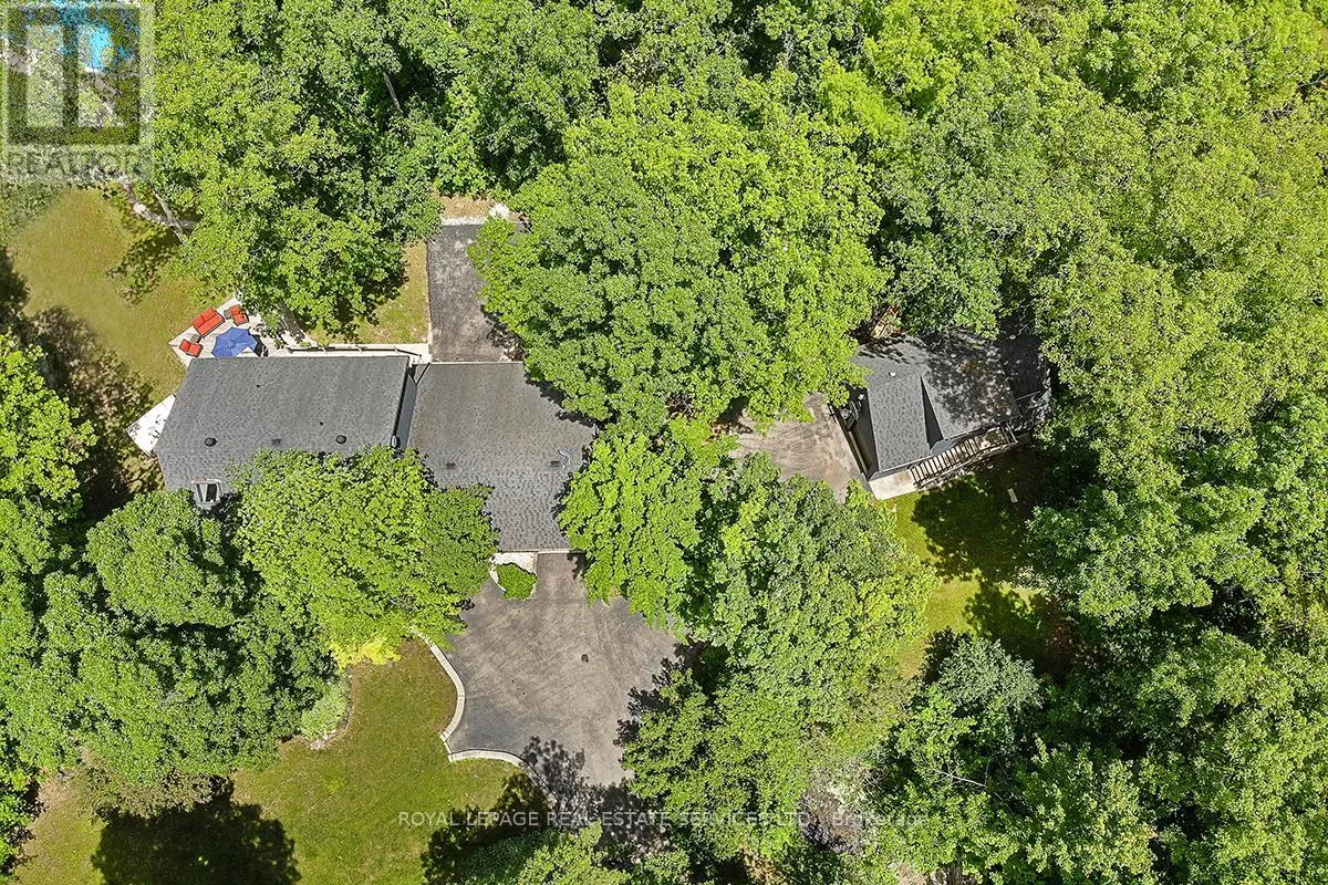 Cross Streets: Tremaine Road and No. 1 Side Road. ** Directions: Tremaine Road (north of the #407) to No. 1 Side Road. ESCAPE TO YOUR OWN PRIVATE OASIS ON ALMOST FOUR ACRES IN MILTON! Surrounded by nature and mature trees, this rare symmetrical property offers the perfect blend of privacy and convenience. Designed for family fun and entertaining, the backyard is a true playground - featuring an expansive deck, 18' inground pool with an interlock surround, sun deck, pool house, hammock, and even a cedar barrel-style outdoor sauna for year-round relaxation. Inside, the main level offers a sunken living room centered around a rustic stone woodburning fireplace, formal dining room, powder room, laundry room, and a beautifully updated kitchen with a coffered ceiling, breakfast bar, Corian counters, designer backsplash, stainless steel appliances, and bright breakfast area with walkout to the deck. Upstairs, the spacious primary bedroom offers hardwood flooring, skylight, and a spa-inspired four-piece ensuite with freestanding tub. Two additional bedrooms and a four-piece main bath complete this level. The finished basement is made for family time and features oversized windows, Berber broadloom, family room with woodburning fireplace, games room with bar, office nook, workshop, and plenty of storage. Highlights include open-riser staircases with wrought iron pickets, energy-efficient geothermal heating and cooling, 200-amp service, municipal water, updated shingles (2015), low annual taxes ($3,861), single garage, carport, and a detached two-car garage with loft fitness room. Plus, the upper level can be expanded to add approximately 2,000 square feet of living space as your family grows! All the joys of cottage living with the ease of city life - just 3 minutes to Hwy 407, 10 minutes to the QEW, and 5 minutes to shopping. Enjoy the tranquility of country living with the convenience of city amenities just minutes away! (id:27476)