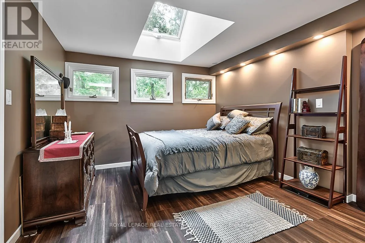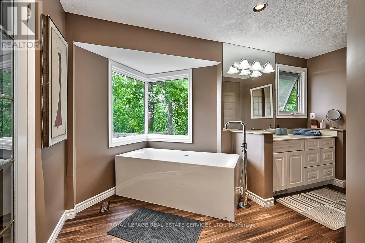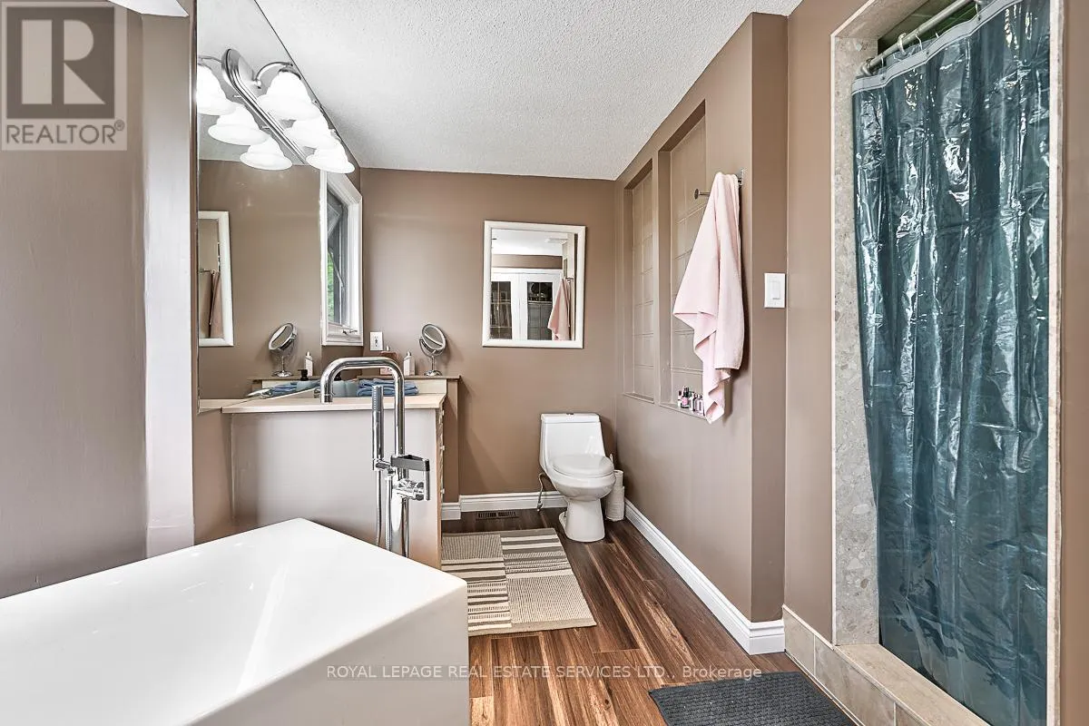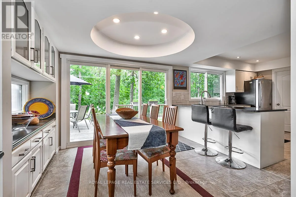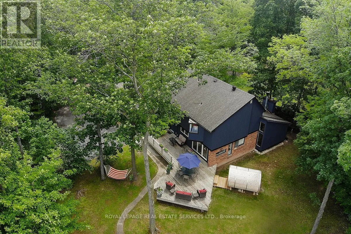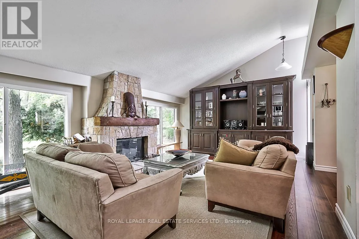 Cross Streets: Tremaine Road and No. 1 Side Road. ** Directions: Tremaine Road (north of the #407) to No. 1 Side Road. ESCAPE TO YOUR OWN PRIVATE OASIS ON ALMOST FOUR ACRES IN MILTON! Surrounded by nature and mature trees, this rare symmetrical property offers the perfect blend of privacy and convenience. Designed for family fun and entertaining, the backyard is a true playground - featuring an expansive deck, 18' inground pool with an interlock surround, sun deck, pool house, hammock, and even a cedar barrel-style outdoor sauna for year-round relaxation. Inside, the main level offers a sunken living room centered around a rustic stone woodburning fireplace, formal dining room, powder room, laundry room, and a beautifully updated kitchen with a coffered ceiling, breakfast bar, Corian counters, designer backsplash, stainless steel appliances, and bright breakfast area with walkout to the deck. Upstairs, the spacious primary bedroom offers hardwood flooring, skylight, and a spa-inspired four-piece ensuite with freestanding tub. Two additional bedrooms and a four-piece main bath complete this level. The finished basement is made for family time and features oversized windows, Berber broadloom, family room with woodburning fireplace, games room with bar, office nook, workshop, and plenty of storage. Highlights include open-riser staircases with wrought iron pickets, energy-efficient geothermal heating and cooling, 200-amp service, municipal water, updated shingles (2015), low annual taxes ($3,861), single garage, carport, and a detached two-car garage with loft fitness room. Plus, the upper level can be expanded to add approximately 2,000 square feet of living space as your family grows! All the joys of cottage living with the ease of city life - just 3 minutes to Hwy 407, 10 minutes to the QEW, and 5 minutes to shopping. Enjoy the tranquility of country living with the convenience of city amenities just minutes away! (id:27476)