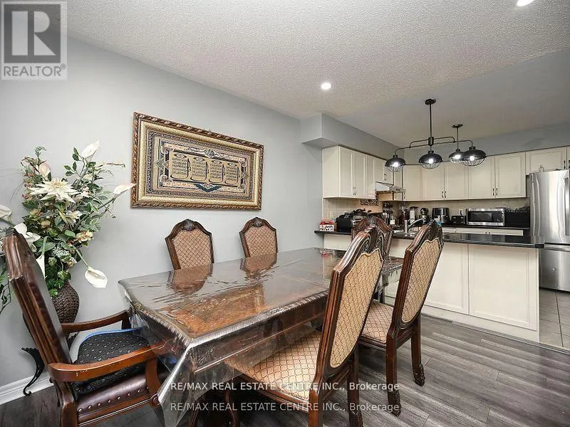 Cross Streets: Thompson Rd/Mccuaig Dr. ** Directions: Thompson Rd/McCuaig Drive. Pride of Ownership! This spacious end-unit townhouse offers 4+1 bedrooms, 4 bathrooms, and a bright open-concept layout with an elegant wood spiral staircase, sun-filled living/dining room, and walk-out to a private deck, fully fenced yard with gazebo, and gas BBQ hookup . The upper level features 4 generous bedrooms including a primary move retreat with his & hers closets and 4-piece ensuite, while the finished basement provides a versatile den, full bath, laundry, cold room, and storage. Recent upgrades include fresh paint, new hallway and bedroom lights , new concrete sidewalk , fridge , garage door with opener , and direct garage-to-house access. Bonus: potential for a separate basement side entrance. Close to schools, shopping, parks, and transit fully move in ready! (id:27476)