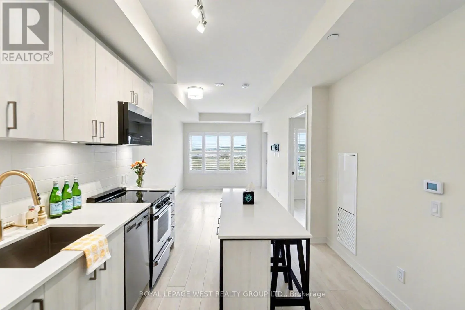 Derry Rd. West & Ontario St. Experience stylish, maintenance-free living in this beautiful one-bedroom suite at the new Connectt Condominiums. This bright and spacious unit features an open-concept layout with large windows that illuminate the suite with natural light and showcase stunning, unobstructed views of the Milton Escarpment, a perfect setting for enjoying beautiful evening sunsets. The modern kitchen features elegant finishes, and stainless steel appliances, including a fridge, stove, dishwasher, microwave, and stackable washer/dryer. Thoughtfully upgraded with Louvered white shutters , a moveable kitchen island, upgraded ceiling and under-cabinet lighting, enhanced bathroom finishes, and custom enhancements throughout. This suite truly stands out! Residents enjoy exceptional amenities including a fitness center, rooftop terrace, outdoor pool, party room, lounge areas, and concierge service. Ideally located for families and commuters, just minutes from various supermarkets, the Milton District Hospital, scenic trails, local schools, and the Milton Go transit, with easy access to major highways. (id:27476)