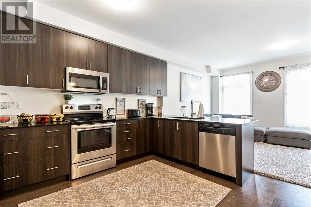 Hwy 25 & Louis St. Laurent Discover your next home in the heart of Milton's desirable Ford neighborhood. This modern 4-bedroom, 2.5-bathroom townhouse built in 2018 spans close to 1800 sq ft.Step into the open main floor with gleaming hardwood flooring, a spacious living/dining area,and a functional kitchen with ample cabinet space and breakfast bar. A convenient powder room completes this level. Upstairs, four well-sized bedrooms await including a primary retreat with walk-in closet and ensuite washroom. A common full bath round out the floor plan.Parking is a breeze with 1 garage spot + 1 driveway space. The yard is low-maintenance and located on a quiet, family-friendly street close to parks, trails, and local walking paths.Commuters will appreciate excellent access to Highway 401 and 407, and proximity to the Milton GO / transit network. Everyday essentials grocery, restaurants, retail, fitness, and big-box shopping are all just minutes away. Good in the catchment include: Milton District High School,St. Francis Xavier Catholic Secondary School, Boyne Public School and more.This is a rare opportunity to secure a spacious, modern, well-appointed home in one of Milton's most in-demand neighborhood. (id:27476)