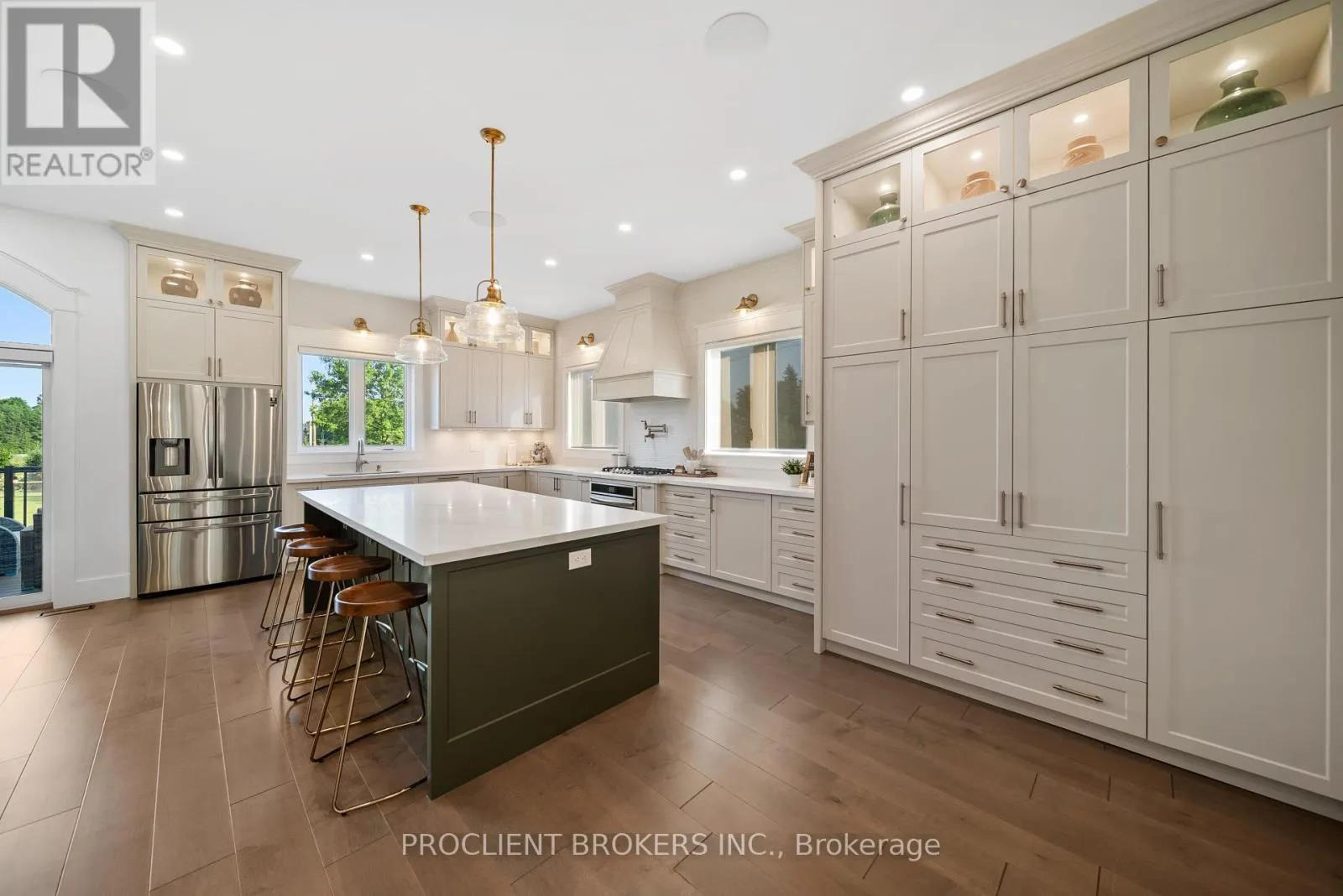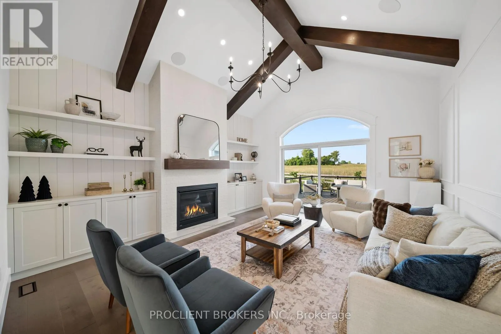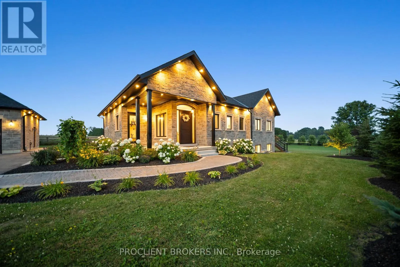 Cross Streets: Ten Side Road & Guelph Line. ** Directions: Off Highway 401 to Guelph Line. MUST SEE VIRTUAL TOUR - CLICK MULTIMEDIA - Contemporary elegance meets estate living. Situated on a beautifully manicured 1.11-acre lot, this custom-built 2022 bungalow delivers nearly 5,000 sqft of meticulously designed living space, with 5 beds, 5 baths, and an oversized 3-car garage. Just 3 minutes from Hwy 401, this luxury residence offers seamless access while surrounded by privacy and natural beauty. Inside, you'll find 10ft flat ceilings, solid 8ft doors, and refined craftsman-style millwork throughout. The designer kitchen is a showpiece with a massive quartz island (4x9ft), floor-to-ceiling custom cabinetry, and premium built-in appliances. Ideal for everyday living and upscale entertaining. The great room stuns with a 17ft cathedral ceiling, exposed wood beams, a 42" Napoleon fireplace, built-inParadigm surround sound, and oversized patio doors leading to a glass-railed composite deck. A stylish family room offers a second 72" fireplace and in-ceiling audio for immersive ambiance. The primary suite isa private sanctuary with its own fireplace, custom walk-in closet, luxury ensuite, and French doors to the rear deck. Every bedroom on the main floor includes built-in audio and custom closets. The fully finished 9ft ceiling basement redefines modern living with engineered hardwood, a custom-built library with ladder, wet bar, and two spacious bedrooms each with its own ensuite. At its heart is a $100K+ professionally built11-channel 8-seater home theatre, fully insulated for premium acoustics. Outdoors, the property is a masterpiece: two composite decks with gas hookups, landscape lighting, a fire pit, volleyball setup, and an apple & pear orchard, complemented by fruit trees, berry patches, and grape vines. The garage is EV ready(for 2), fully insulated, with premium carriage-style doors, built-in racks, and Pro-slat tool walls ideal for car lovers or hobbyists. This is more than a home, its an experience. A retreat. A lifestyle. And it's ready for you. (id:27476)