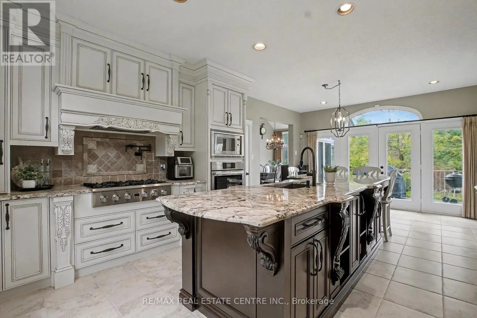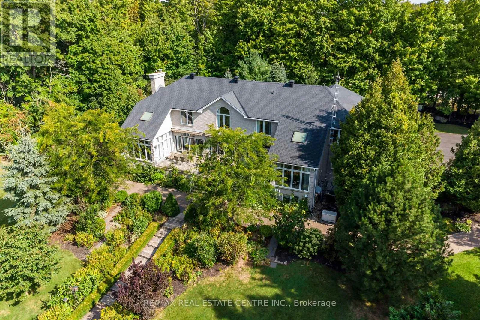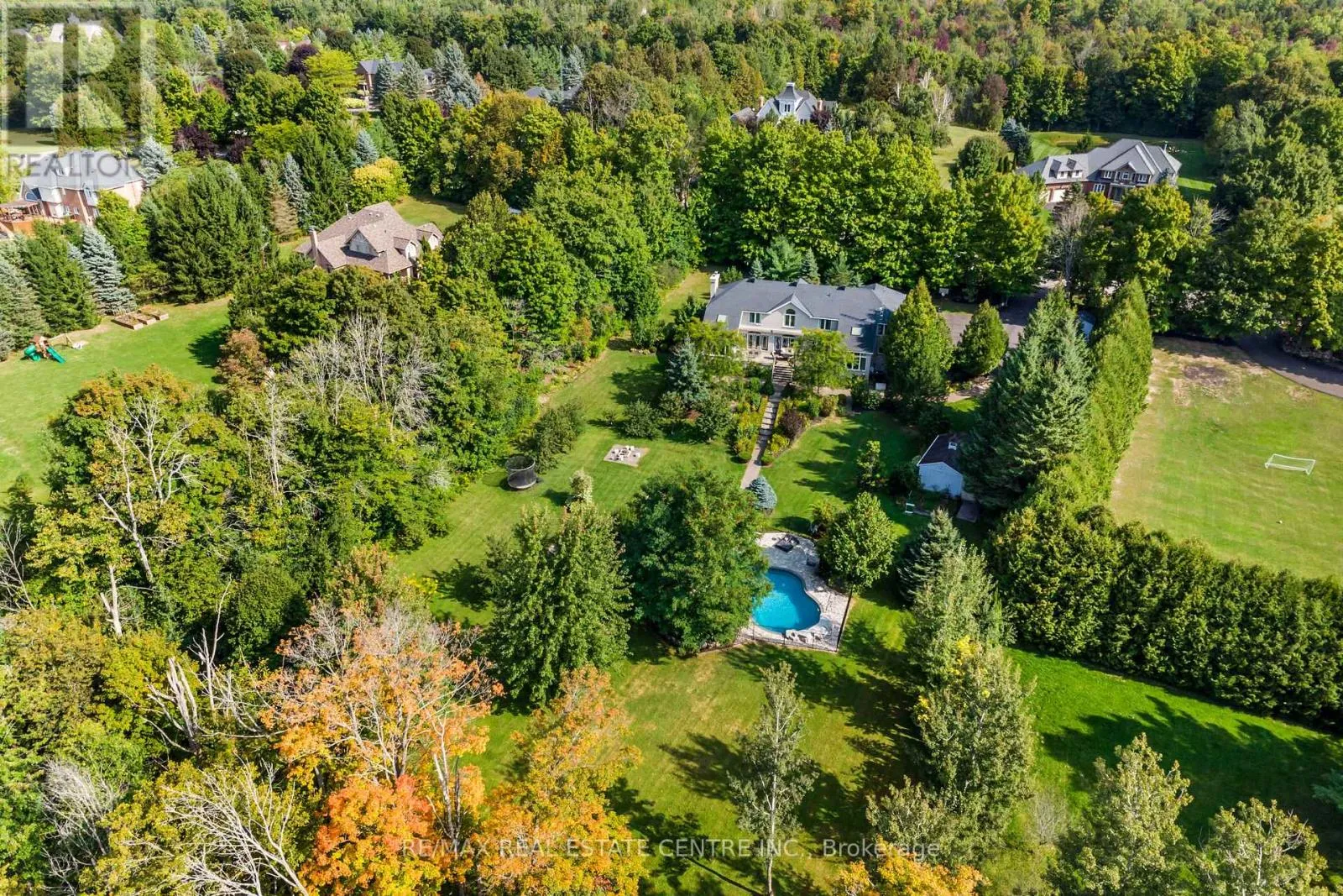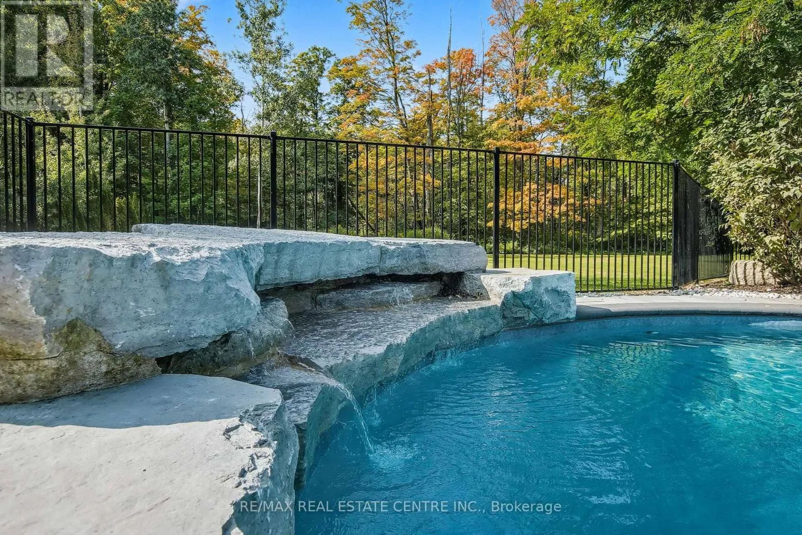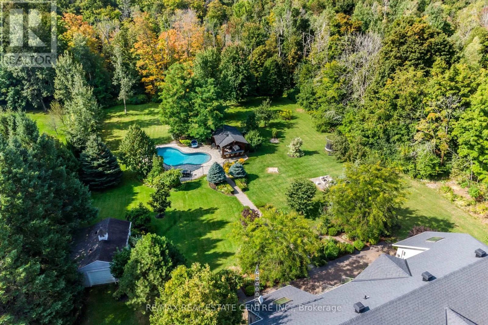 Cross Streets: 20th SR and 4th Line Nass. ** Directions: 4th line Nass between 20 and 25 SR. Personal Sanctuary in Prestigious Ennisclare Woods. Tucked away on 2.85 private acres, this property feels like your own exclusive resort. A fenced saltwater pool with a waterfall feature and a spacious pavilion with ample seating and a bar set the stage for unforgettable gatherings. Surrounded by mature trees, lush perennial gardens, and a private forest, this home is truly an oasis of tranquillity. This custom-built residence makes an impression at every turn. Step into the stately foyer, leading to the upgraded chef's kitchen complete with a walk-in pantry, hidden pull-out spice and pan storage, and a dedicated dining area. The great room, anchored by a grand fireplace, flows effortlessly into a private office/study and out to the elevated veranda. With retractable awnings and sweeping views of the grounds, it's the perfect spot to relax or entertain. The oversized primary suite offers a romantic fireplace, generous closets, and a spa-inspired ensuite retreat. A second bedroom enjoys its own ensuite, while the third and fourth bedrooms share a well-appointed bathroom. The fully finished lower level expands the living space with a recreation room (featuring yet another fireplace), a fifth bedroom, a full bath, an additional home office, and abundant storage. Ennisclare Woods is a one-of-a-kind community of 29 estate homes surrounded by 90 acres of protected woodland trails (just $200/year). Highlights include:4+1 bedrooms, 4.5 bathrooms, 3 fireplaces, Home office + mudroom, inside entry from an attached 2-car garage, Detached garage/workshop + shed, Resort-style saltwater pool & pavilion. This home truly offers something for everyone, privacy, luxury, and a setting unlike any other. (id:27476)