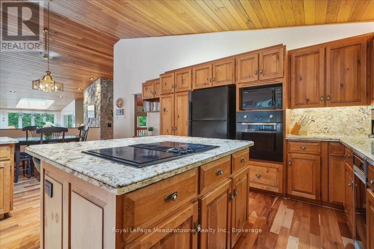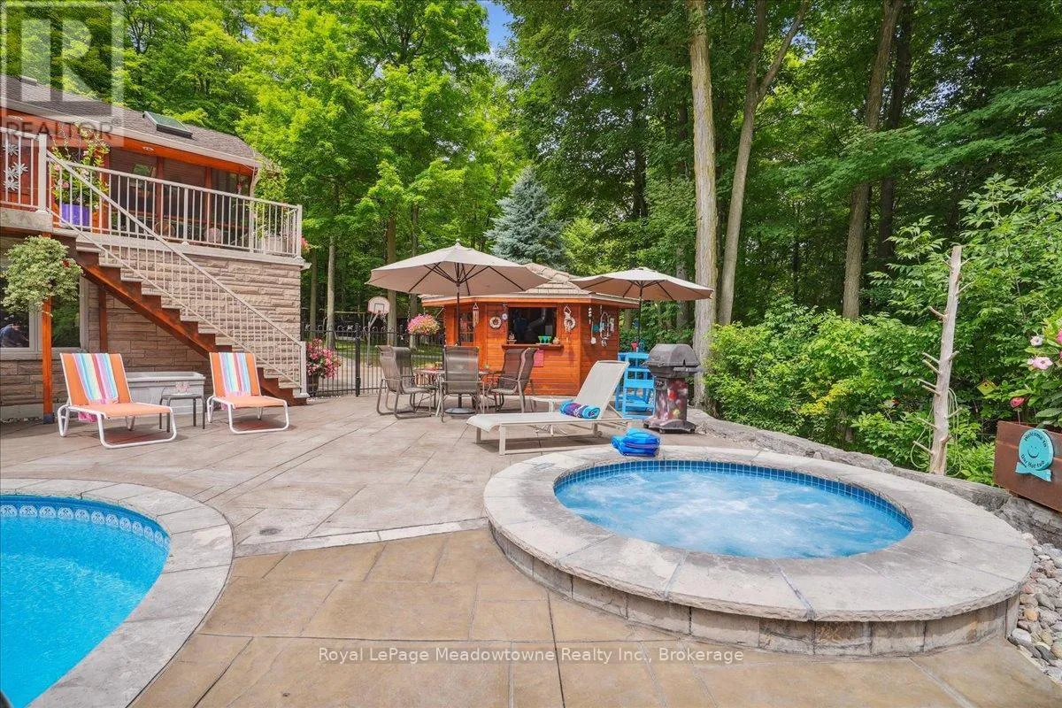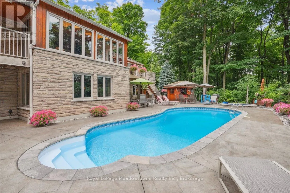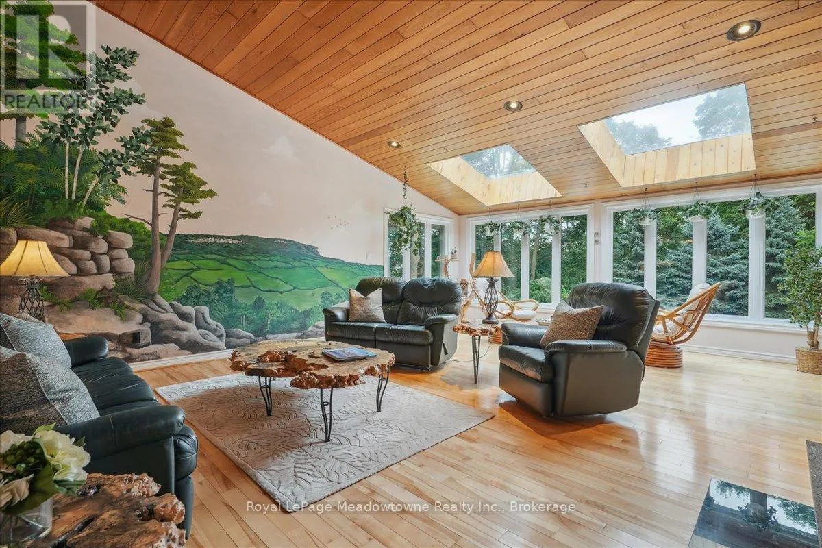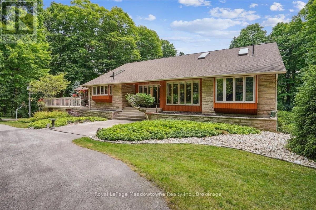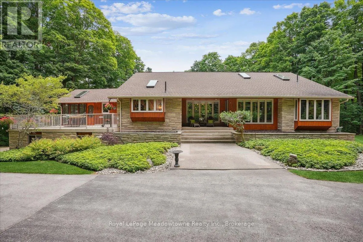 401 West to RR 25 South. Turn right on Steeles Ave. Property is on left going up the escarpment. Discover an unparalleled gem rarely available on the market: a private and serene estate with a custom-designed home that fulfills every dream. Set on over 10 lush acres amidst the stunning Niagara Escarpment, this meticulously cared-for property is just minutes from the 401 and downtown Milton. Surrounded by vibrant perennial gardens and towering mature trees, this home is perfectly positioned in the heart of Halton Conservation's premier parks. You'll be just moments from Kelso Conservation Area, Rattlesnake Point, Crawford Lake, Hilton Falls, and the Bruce Trail ideal for outdoor enthusiasts and nature lovers. The custom-built bungalow features over 6,000 sq. ft. of exquisite living space. Its open-concept design showcases vaulted ceilings, a double-sided stone fireplace, a spacious kitchen with pine cabinets, granite countertops, and an island. A convenient wet bar, elegant dining room, and a fantastic outdoor screen room offers the perfect space for 3-season entertaining. Enjoy stunning views from walkout decks off the kitchen, screen room, sun room, and master bedroom balcony. The lower level is a haven of relaxation and recreation. You will find a large recreation room with a cozy wood-burning stove, a games room, four additional bedrooms, and access to a three-car garage. Walk out to a luxurious inground pool with a hot tub, cabana, and a soothing water feature. The home is equipped with a 400-amp electrical service, a propane-powered generator, and a geothermal heating and cooling system. A separate two-car garage provides the ideal "Man Cave" and additional storage for garden equipment. Garden enthusiasts will love the large greenhouse/potting shed, and the property boasts a fire pit with a patio area, night landscape lighting, and over one kilometer of meticulously groomed walking trails. Why settle for a cottage when you can have this dream home without the drive? Experience the ultimate in luxury and tranquility this is truly what dreams are made of! (id:27476)