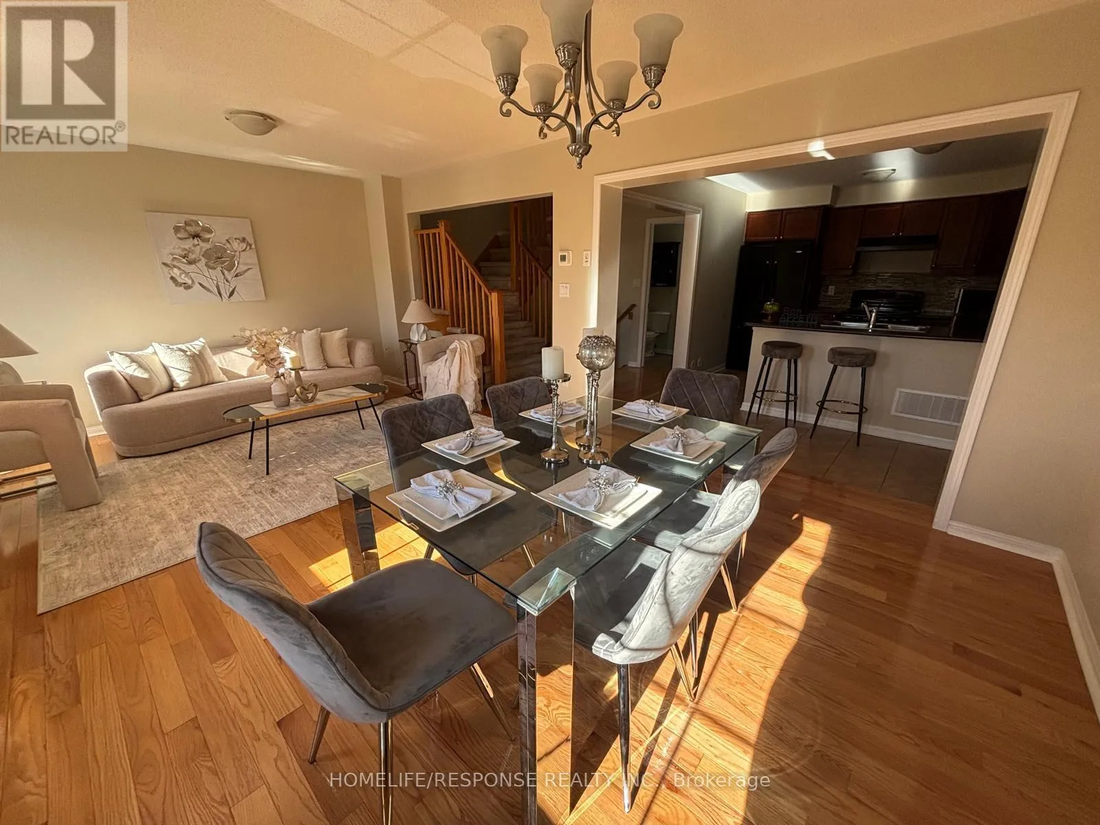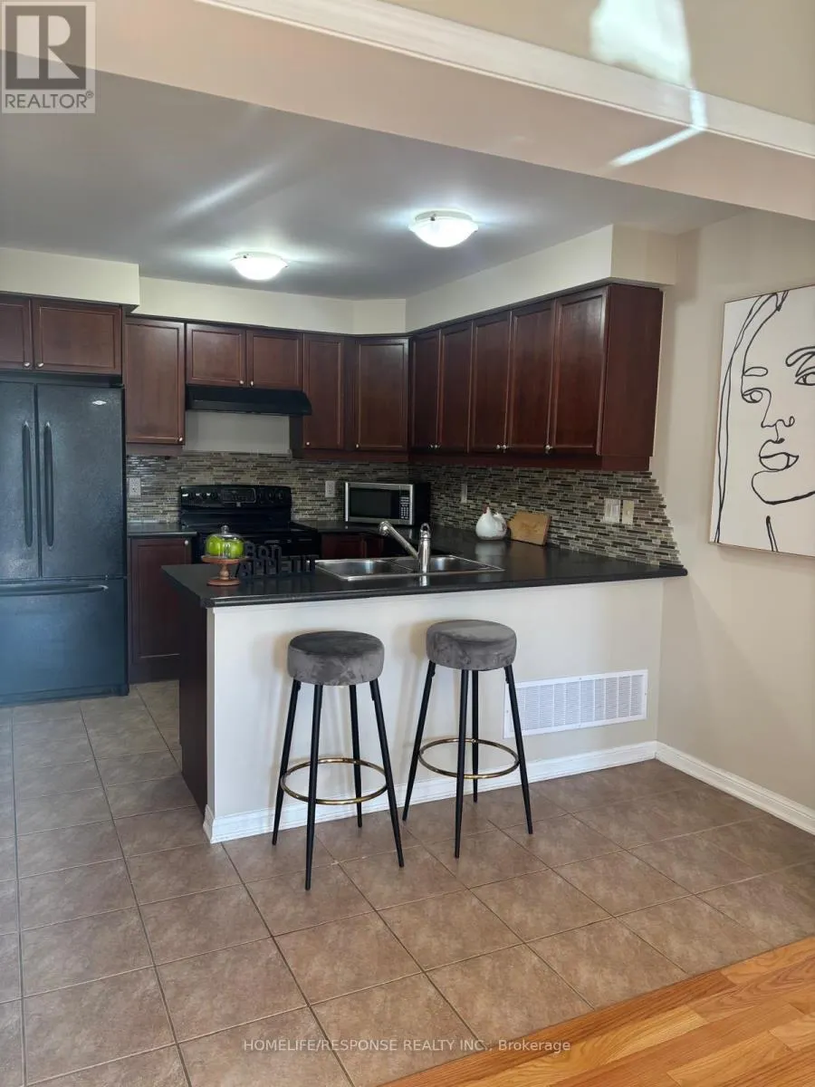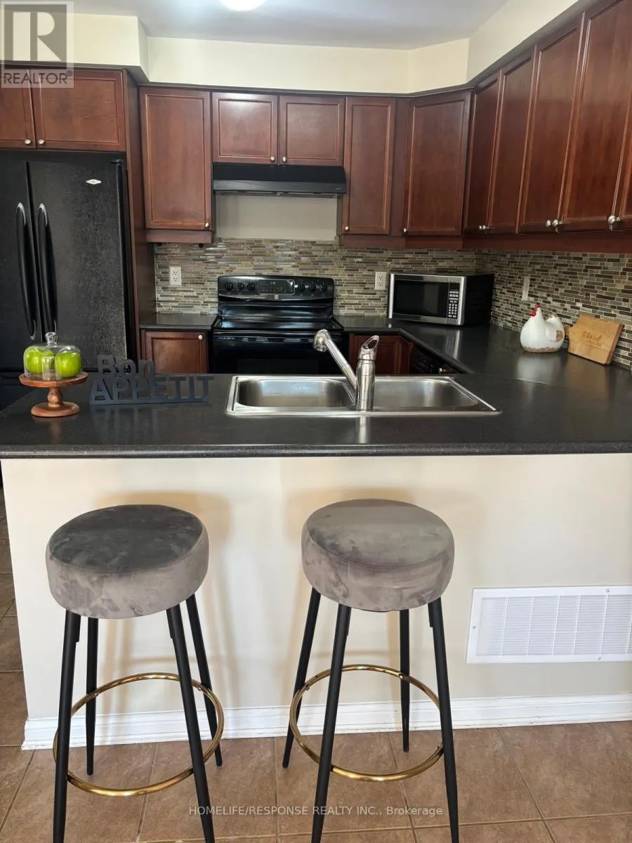 LOUIS ST. LAURENT & THOMPSON ROAD SOUTH Stunning & Spacious Mattamy "Springdale" Model In Sought After Neighbourhood In Milton. Beautiful Kitchen Featuring Dark Kitchen Cabinets, Black Appliances, Corner Cabinet, Custom Backsplash. Hardwood on 2nd floor and laminate on 3rd floor. Layout Features open concept on 2nd floor, Large Master, His & Hers Closets, Shows Like a Model Home Top To Bottom! Quiet Street, Amazing Neighbours! Steps To Walking Trails, Parks, Shopping, Schools,401 & 407. Freshly painted throughout the house and brand new roof (Oct 2025) (id:27476)