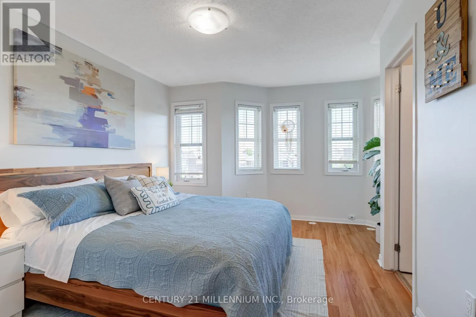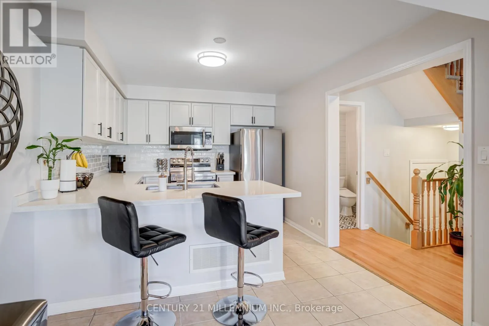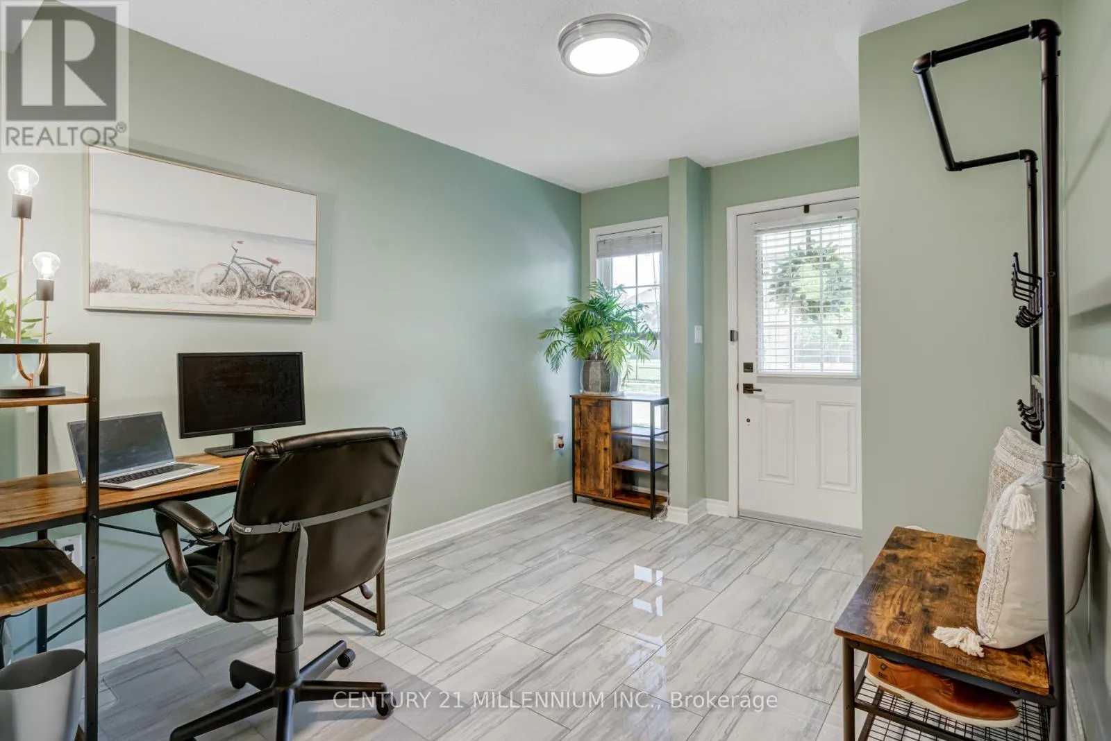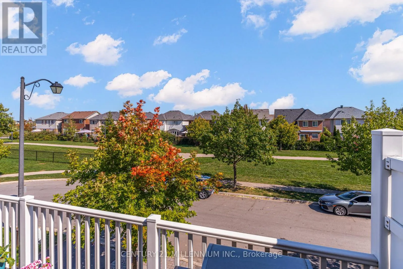 Cross Streets: Yates Dr and Hepburn Rd. ** Directions: Yates Drive and Hepburn Road. Freehold 3-story town home with all the extras! 2 Beds + den and 3 Baths: main, en-suite, and powder. The primary bedroom fits a king bed with extra space, full size walk-in closet and a 3 piece en-suite bath, 5 windows fill it with sunlight in the morning. The 2nd bedroom is sized with large closet and a charming nook. Stylish main bath has been updated and is in great condition. On the main floor you are welcomed by a full size chef's kitchen filled with upgrades; quartz counter, custom tile back splash, stainless steel appliances, industrial style faucet, oversized sink, modern finishes and an entertainers peninsula to top it all off. Open to the living and dining room, you are flooded by sunlight through the morning. The living room features a large bay window and trendy accent wall. The full size dining walks out to the oversized balcony. The balcony is near double the size of most similar models (over 17 feet long!) enough room for patio furniture, a BBQ and then some! Best of all, the balcony gets expansive views of the park immediately in-front of you, no front neighbours for staring in someones window only feet away, just beautiful greenery. (Not to mention all the added street parking). Further on the main floor we have a fully renovated powder room with mosaic tile floor and ship lap feature wall. Bonus main floor laundry. Entry floor boasts a full size den, utility room, added storage and interior garage access. Exterior features 3 car parking, 1oversized garage and 2 driveway parking spots, 1 is partially covered. Easy maintenance as theproperty is fully stone so no lawn to maintain! The full home is only 18 years old and has been loved and cared for. The neighbourhood is family oriented with great neighbours. Nearby is schools, grocery, restaurants, medical, pharmacy, shopping, parks, and more. All of the modern conveniences of a large city without all the crowding and chaos. Easy highway access, GO station and public transit near by. Don't miss this! (id:27476)