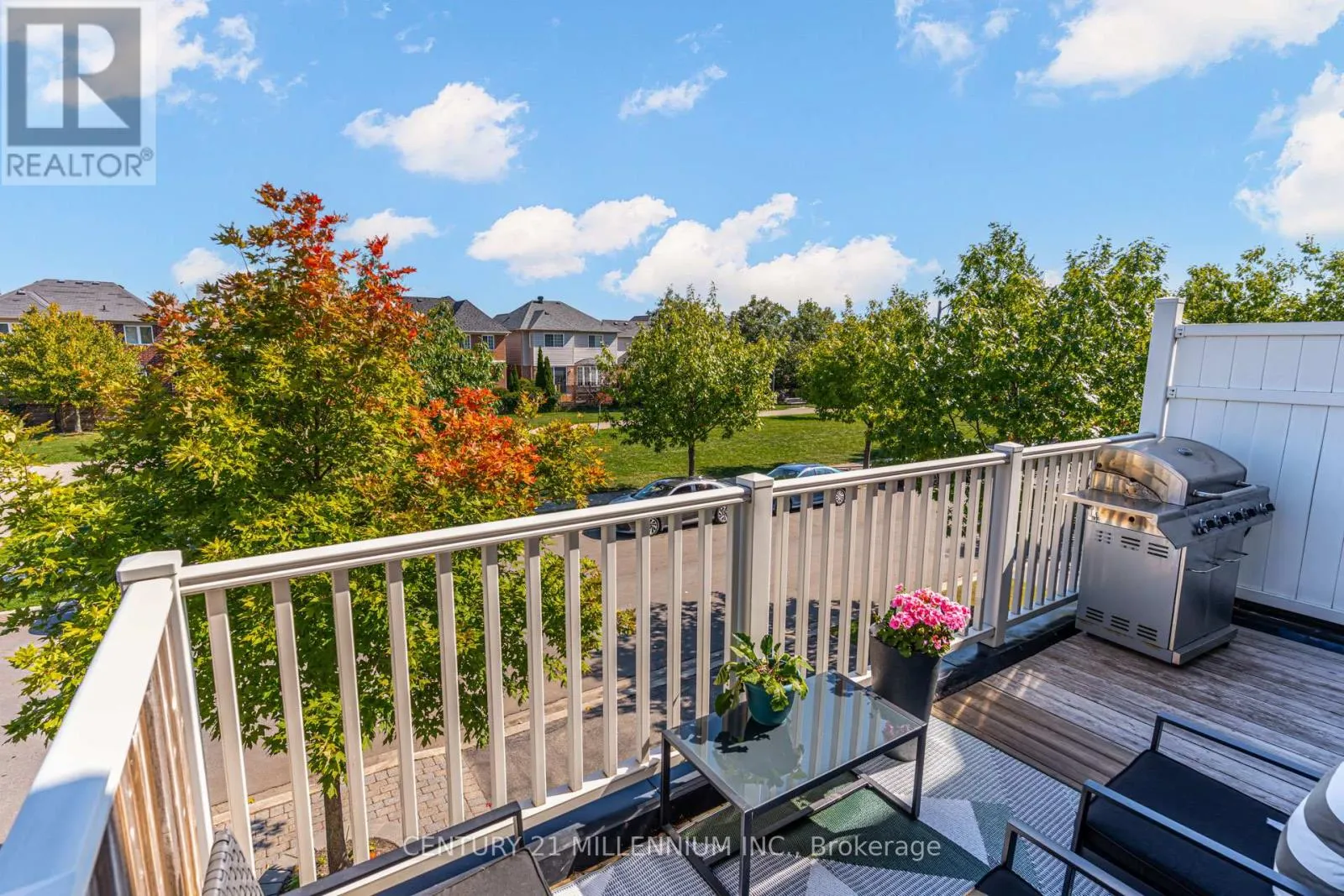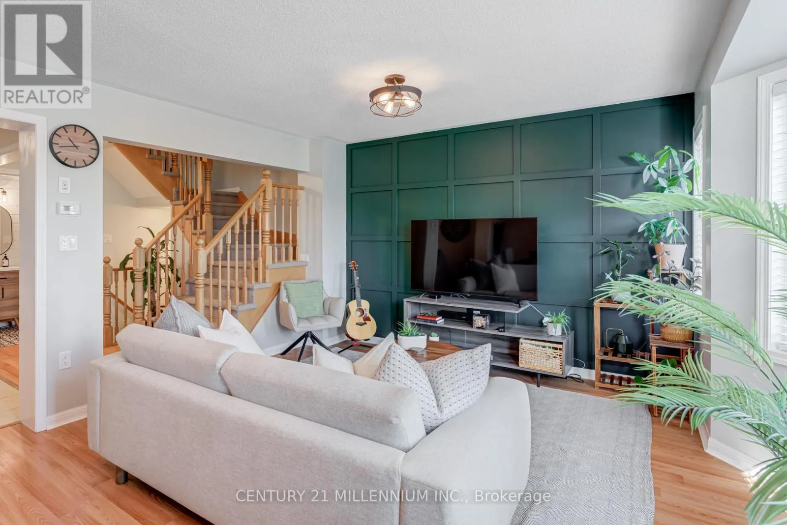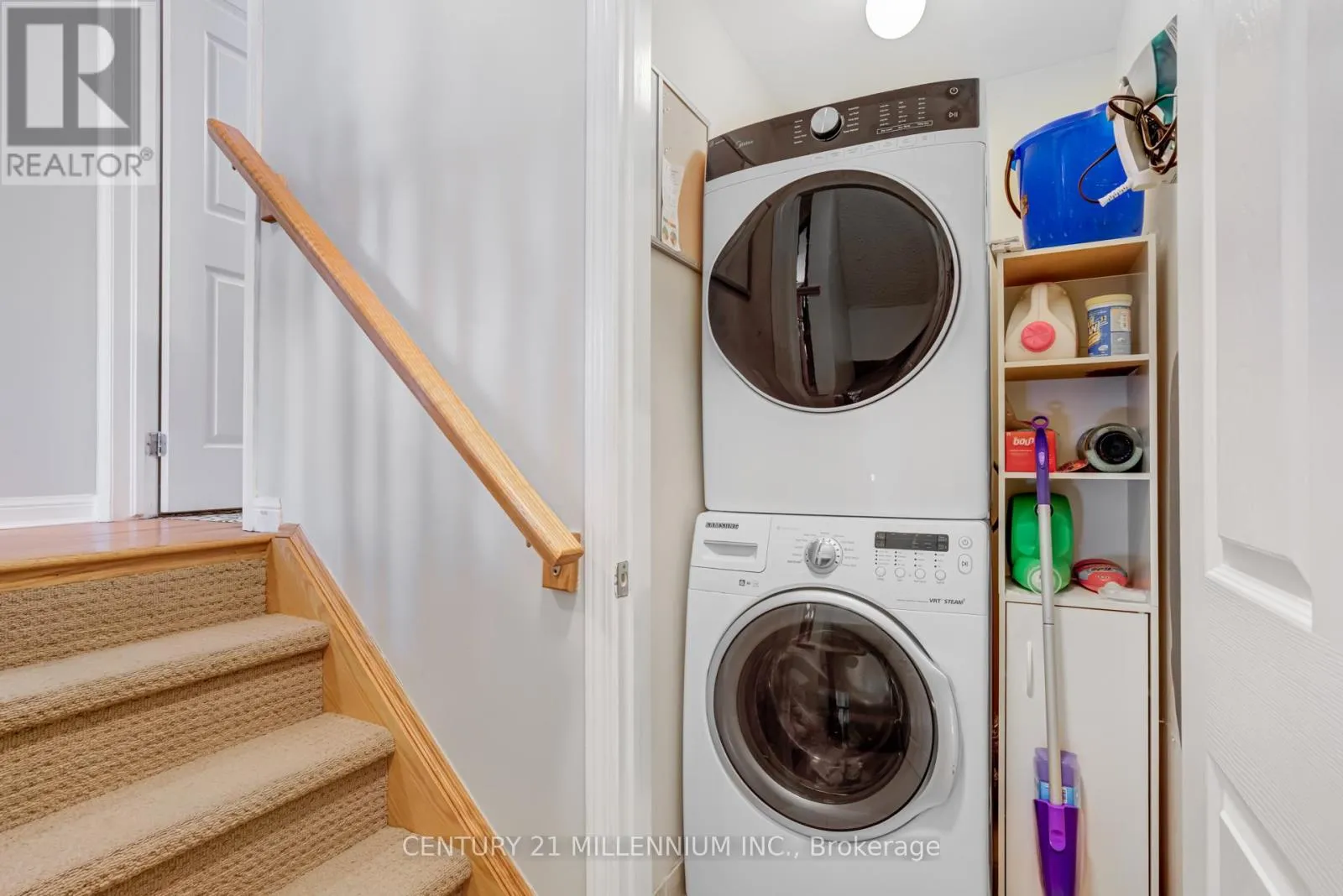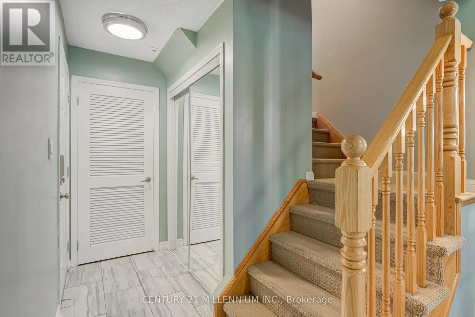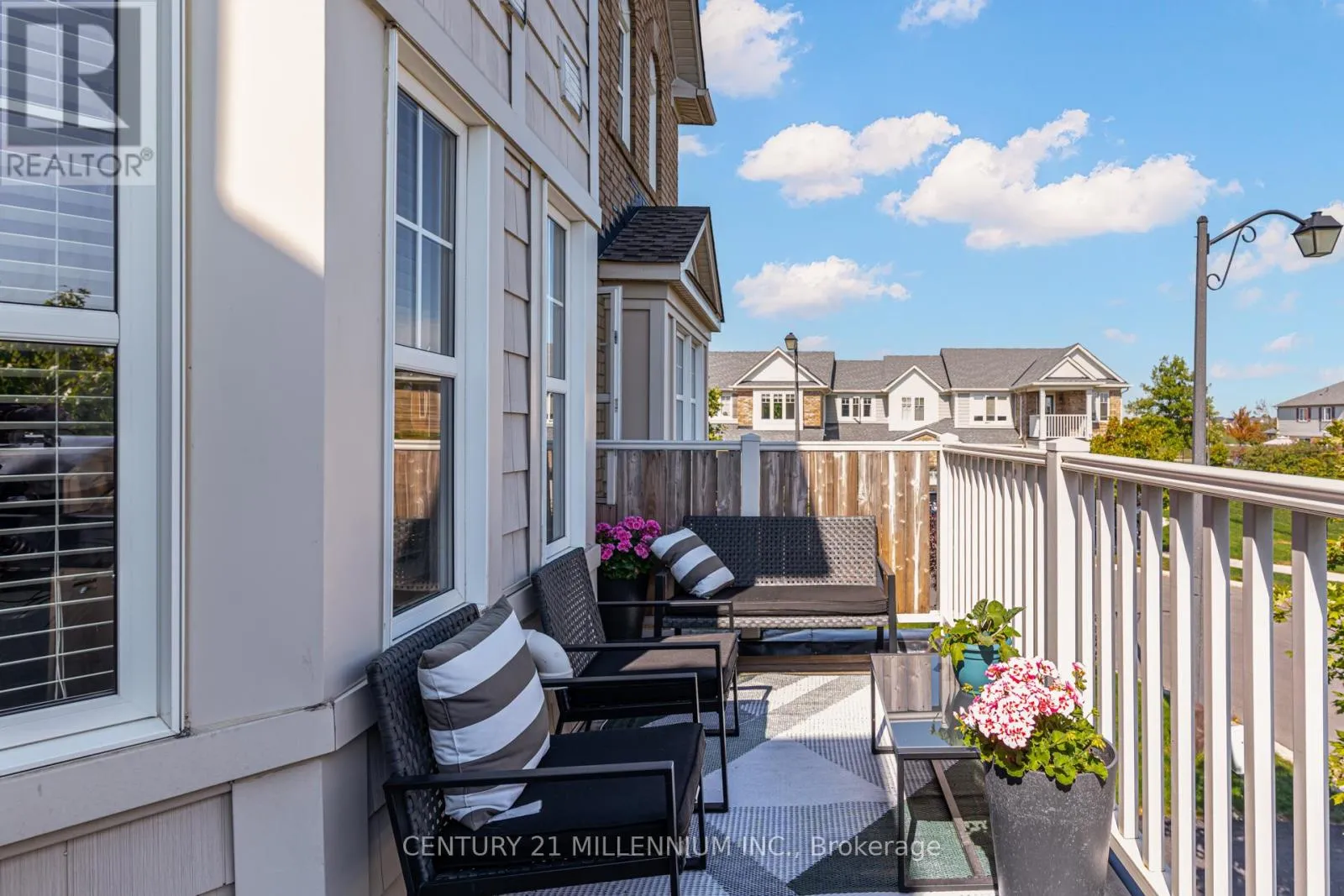 Cross Streets: Yates Dr and Hepburn Rd. ** Directions: Yates Drive and Hepburn Road. Freehold 3-story town home with all the extras! 2 Beds + den and 3 Baths: main, en-suite, and powder. The primary bedroom fits a king bed with extra space, full size walk-in closet and a 3 piece en-suite bath, 5 windows fill it with sunlight in the morning. The 2nd bedroom is sized with large closet and a charming nook. Stylish main bath has been updated and is in great condition. On the main floor you are welcomed by a full size chef's kitchen filled with upgrades; quartz counter, custom tile back splash, stainless steel appliances, industrial style faucet, oversized sink, modern finishes and an entertainers peninsula to top it all off. Open to the living and dining room, you are flooded by sunlight through the morning. The living room features a large bay window and trendy accent wall. The full size dining walks out to the oversized balcony. The balcony is near double the size of most similar models (over 17 feet long!) enough room for patio furniture, a BBQ and then some! Best of all, the balcony gets expansive views of the park immediately in-front of you, no front neighbours for staring in someones window only feet away, just beautiful greenery. (Not to mention all the added street parking). Further on the main floor we have a fully renovated powder room with mosaic tile floor and ship lap feature wall. Bonus main floor laundry. Entry floor boasts a full size den, utility room, added storage and interior garage access. Exterior features 3 car parking, 1oversized garage and 2 driveway parking spots, 1 is partially covered. Easy maintenance as theproperty is fully stone so no lawn to maintain! The full home is only 18 years old and has been loved and cared for. The neighbourhood is family oriented with great neighbours. Nearby is schools, grocery, restaurants, medical, pharmacy, shopping, parks, and more. All of the modern conveniences of a large city without all the crowding and chaos. Easy highway access, GO station and public transit near by. Don't miss this! (id:27476)