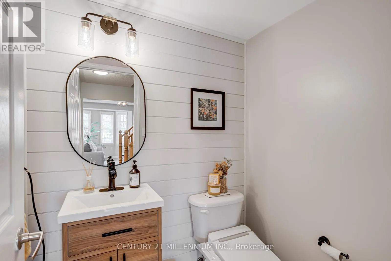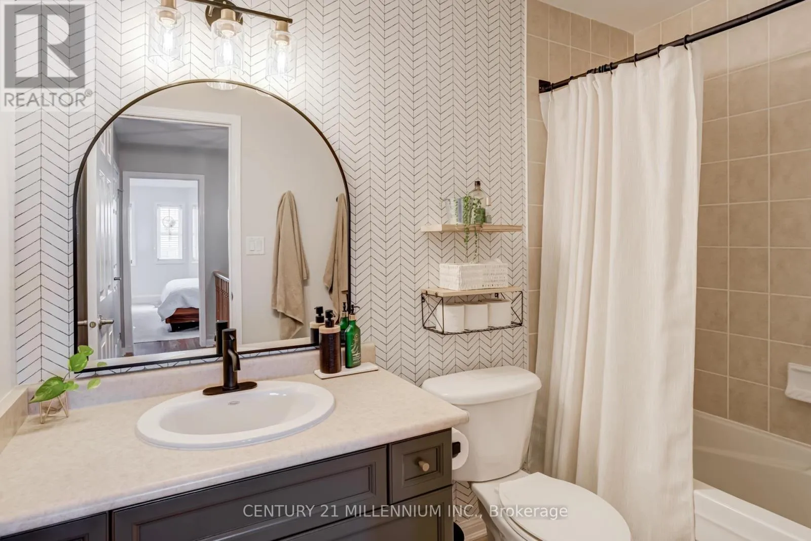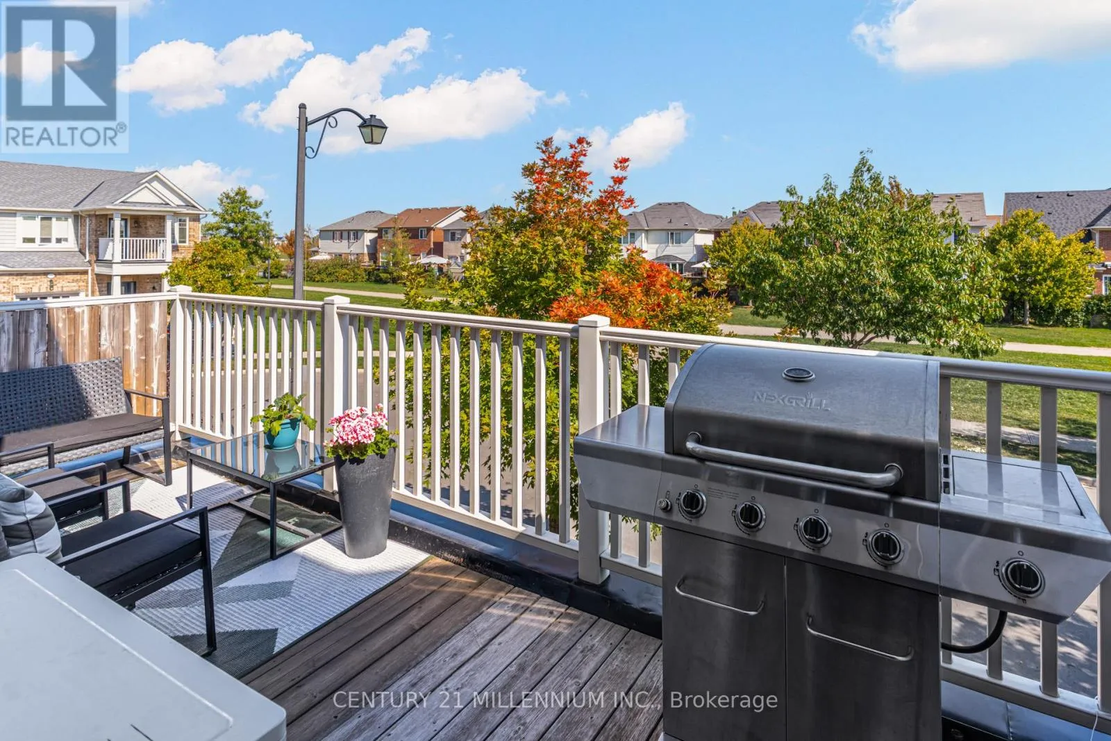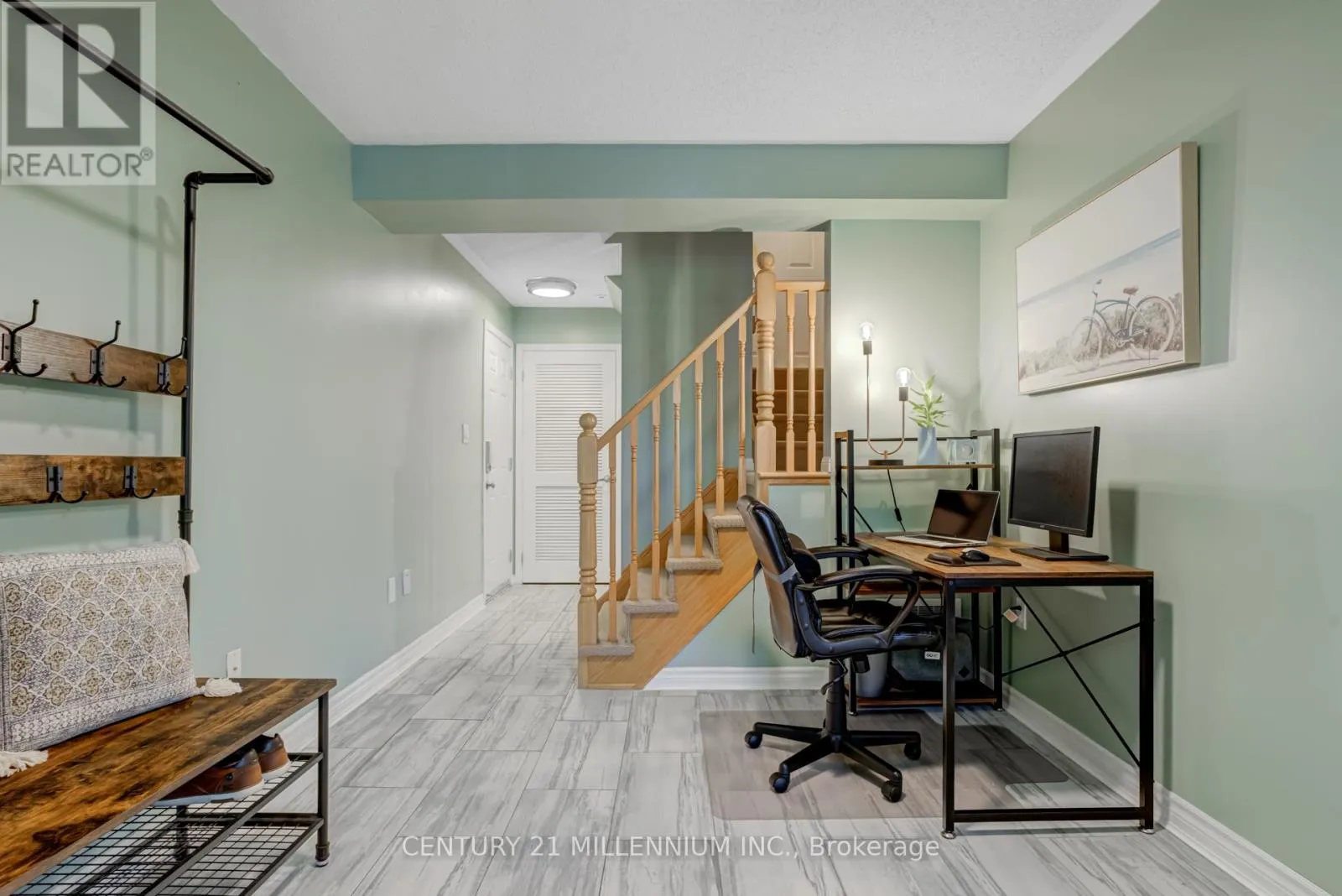 Cross Streets: Yates Dr and Hepburn Rd. ** Directions: Yates Drive and Hepburn Road. Freehold 3-story town home with all the extras! 2 Beds + den and 3 Baths: main, en-suite, and powder. The primary bedroom fits a king bed with extra space, full size walk-in closet and a 3 piece en-suite bath, 5 windows fill it with sunlight in the morning. The 2nd bedroom is sized with large closet and a charming nook. Stylish main bath has been updated and is in great condition. On the main floor you are welcomed by a full size chef's kitchen filled with upgrades; quartz counter, custom tile back splash, stainless steel appliances, industrial style faucet, oversized sink, modern finishes and an entertainers peninsula to top it all off. Open to the living and dining room, you are flooded by sunlight through the morning. The living room features a large bay window and trendy accent wall. The full size dining walks out to the oversized balcony. The balcony is near double the size of most similar models (over 17 feet long!) enough room for patio furniture, a BBQ and then some! Best of all, the balcony gets expansive views of the park immediately in-front of you, no front neighbours for staring in someones window only feet away, just beautiful greenery. (Not to mention all the added street parking). Further on the main floor we have a fully renovated powder room with mosaic tile floor and ship lap feature wall. Bonus main floor laundry. Entry floor boasts a full size den, utility room, added storage and interior garage access. Exterior features 3 car parking, 1oversized garage and 2 driveway parking spots, 1 is partially covered. Easy maintenance as theproperty is fully stone so no lawn to maintain! The full home is only 18 years old and has been loved and cared for. The neighbourhood is family oriented with great neighbours. Nearby is schools, grocery, restaurants, medical, pharmacy, shopping, parks, and more. All of the modern conveniences of a large city without all the crowding and chaos. Easy highway access, GO station and public transit near by. Don't miss this! (id:27476)