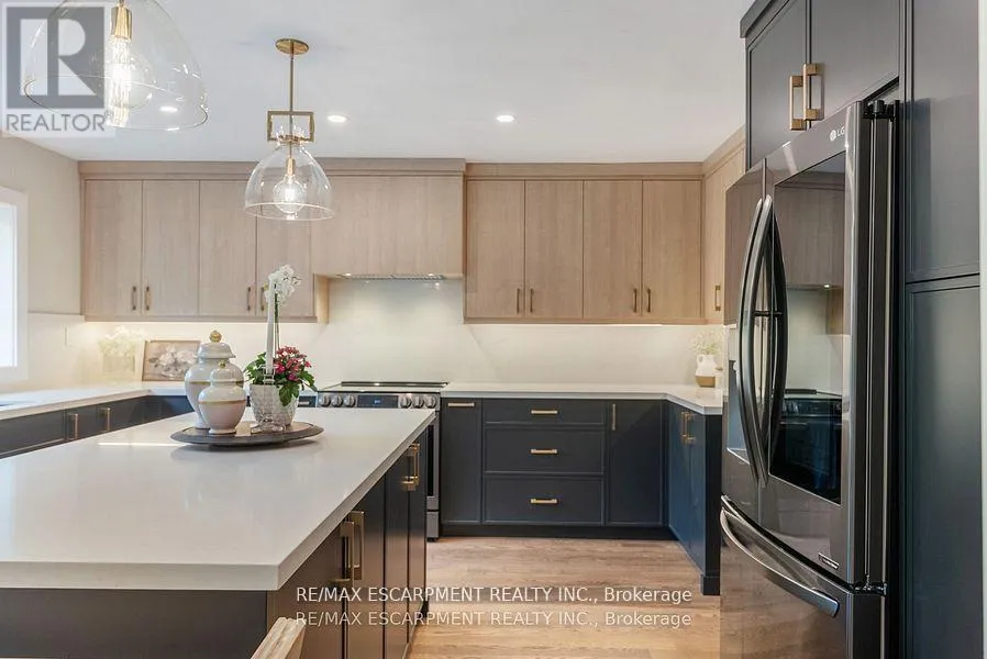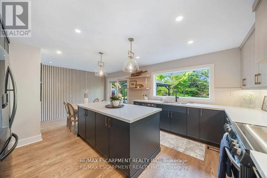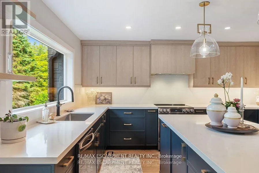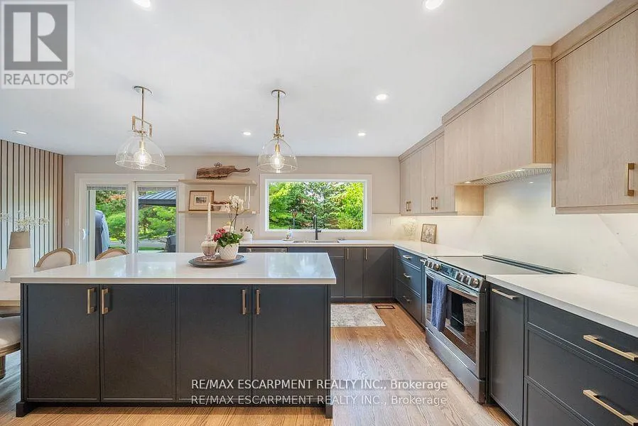 Cross Streets: 15 SIDEROAD + FIRST LINE. ** Directions: 401 W to Guelph Line North, turn Left on 15 Sideroad. Property on Left. As you approach 2038 15 Side Road, you're immediately welcomed by a long, tree-lined driveway framed by mature maple trees - there's a sense of privacy and tranquility even though you're just minutes from the city. Set on over an acre of land, this property provides space, seclusion, and convenience in an exceptional setting. The home has been thoughtfully renovated throughout. The kitchen features all-new custom cabinetry, quartz countertops, and a newly installed window overlooking a composite deck - perfect for outdoor dining and entertaining. The stunning hardwood floors have been professionally sanded, stained, and finished with tongue oil, while the lower level is enhanced with high-pile carpet. Upstairs, built-in cabinetry in the bedrooms maximizes storage while maintaining a clean, tailored aesthetic. Popcorn ceilings have been professionally removed and refinished, and upgraded lighting, pot lights, and designer fixtures have been installed throughout. Window coverings and drapery are all custom-fitted. The lower-level bathroom has been fully renovated, and the geothermal heating (fantastic for energy savings) system has been recently serviced for efficiency and reliability. With three bedrooms on the upper level and two additional bedrooms in the walk-out lower level, you've got plenty of space for family and friends. The basement receives tons of natural light and functions as an additional living space - a fantastic space for guests, a home office, or multi-generational living. Outdoors, the property continues to impress with a heated pool and hot tub. This is Muskoka in the city...combining over an acre of land with quality craftsmanship, privacy, and proximity to amenities, you can enjoy a peaceful, retreat-like lifestyle within close reach of the city. (id:27476)
