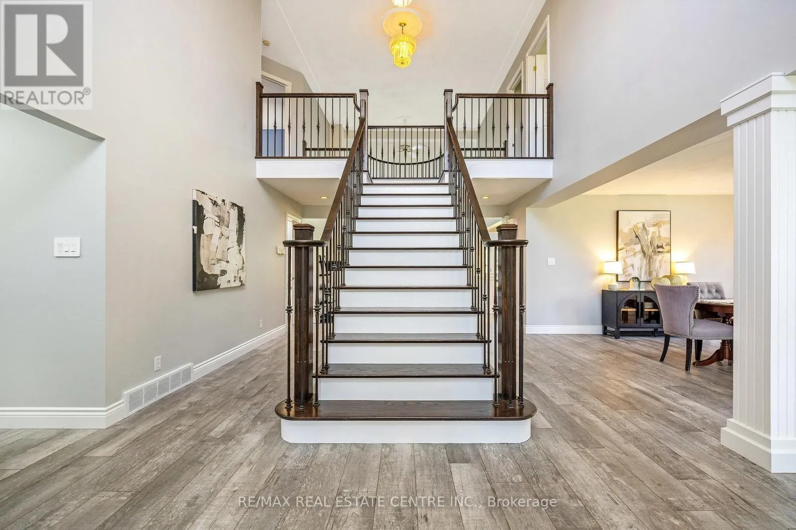 Cross Streets: Guelph Line-10th Sdrd. ** Directions: Guelph Line-10th Sdrd-2nd Line-Mohawk. Welcome to this exceptionally renovated and energy efficient R2000 4-bedroom masterpiece. Situated on a sprawling 2.18-acre corner lot in an exclusive executive cul-de-sac community in Campbellville, this stunning residence boasts a spacious layout, ideal for both family living and entertaining. As you enter the front door the oversized foyer with 2 separate closets and grand "Scarlett O'Hara" staircase will leave you breathless. The open concept main floor provides tons of room for the whole family along with a renovated Primary Bedroom Suite with Spa-like 5 Pcs Ensuite bathroom, massive walk-in shower and deep soaker tub. The heart of the home is the open-concept Great Room, including gas fireplace and vaulted ceiling with skylights, which flows seamlessly into a breakfast area and gourmet kitchen equipped with top-of-the-line appliances, beautiful cabinetry, elegant Quartz countertops and practical Farmers Sink. Step outside to enjoy your expansive outdoor space, perfect for hosting gatherings or simply enjoying the serene surroundings. As you ascend the gorgeous wood stairs to the second floor you are greeted with a Juliet Balcony overlooking the Greatroom below. Designed with comfort and style in mind and featuring tons of natural light there are 3 additional generous sized bedrooms along with a renovated 4 pcs bathroom. Additional highlights include a three-car garage with 2 EV Chargers, plenty of storage and parking spaces, as well as a separate entrance leading to a fully finished basement that can serve as an in-law suite, home office, or entertainment area. This property represents a rare opportunity with a potential 2nd driveway to the rear yard for future building opportunities (Buyer to confirm with township). Enjoy luxurious living in a prestigious neighborhood, combining privacy, space, and modern amenities. Don't miss your chance to call this exquisite property home! (id:27476)