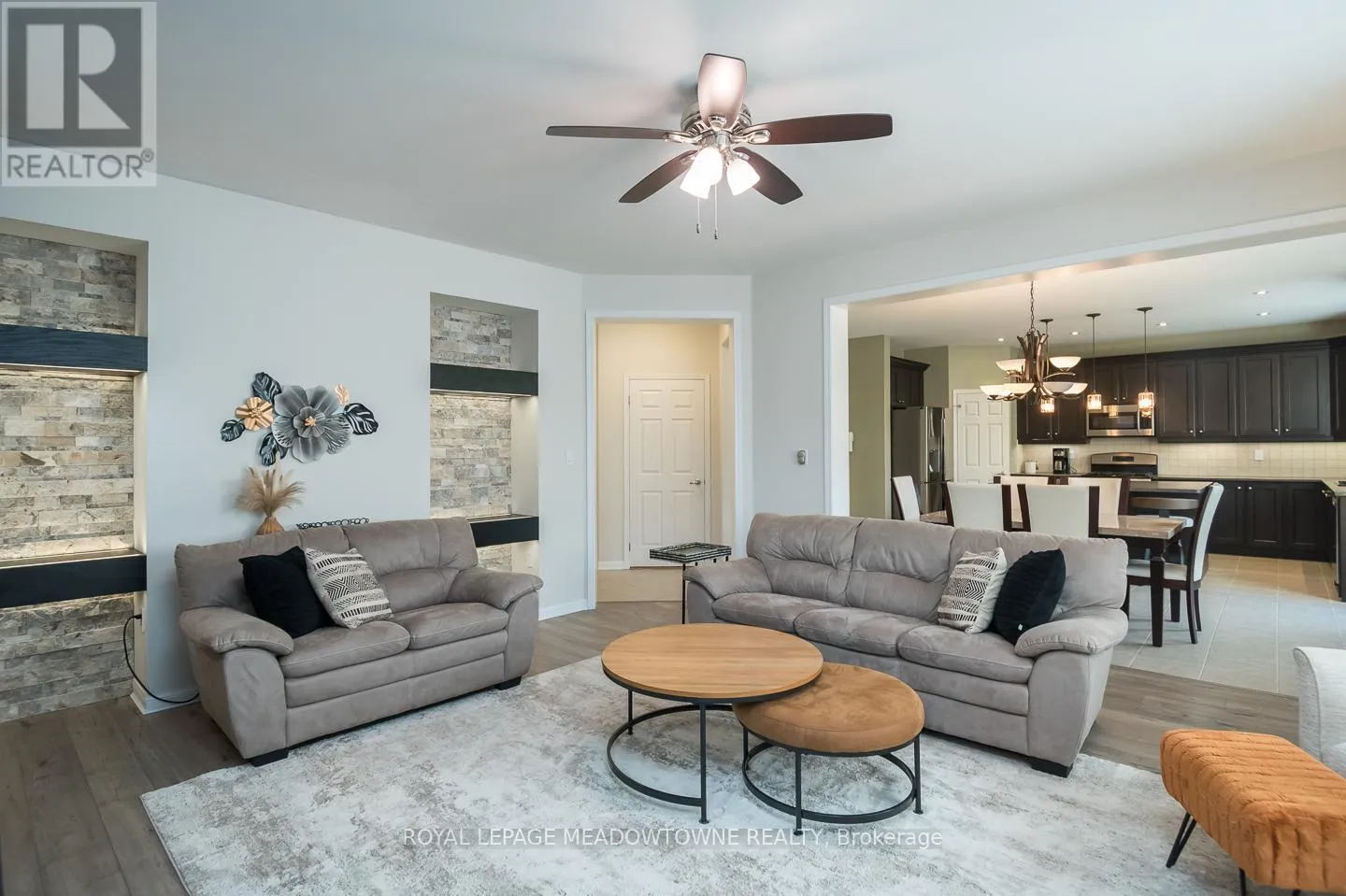 Cross Streets: Yates Dr & Livock Trail. ** Directions: Yates-Livock-Lingen. Welcome to this stunning detached 5+2 bedroom, 5-bathroom home located in the highly desirable Coates neighbourhood, known for its excellent schools, family-friendly parks, and easy access to amenities. Boasting parking for up to 7 vehicles (4 in the driveway and 3 in the garage), this home features a welcoming covered porch and a grand front foyer that sets the tone for the spacious layout throughout. The wide, private backyard is perfect for entertaining with hardscaping and beautiful perennial gardens, plus convenient garage access to both the mudroom and yard. The bright eat-in kitchen offers a large island with seating, rich dark cabinetry, a walk-in pantry, stainless steel appliances, and a gas cooktop, all overlooking the open-concept family room with custom built-in shelving. The formal living and dining rooms showcase luxury vinyl flooring, elegant wall features, and recessed lighting. Upstairs, find five comfortable bedrooms, including a primary suite retreat with a private balcony, 5-piece ensuite, and dual walk-in closets, along with Jack-and-Jill bathrooms, a powder room on the main floor, and convenient upper-level laundry. The finished basement expands the living space with two additional bedrooms, a 3-piece bath, a cozy sitting area with an electric fireplace, a wet bar, and extra laundry facilities-ideal for extended family or guests. This exceptional home blends functionality, comfort, and style in one perfect package. (id:27476)