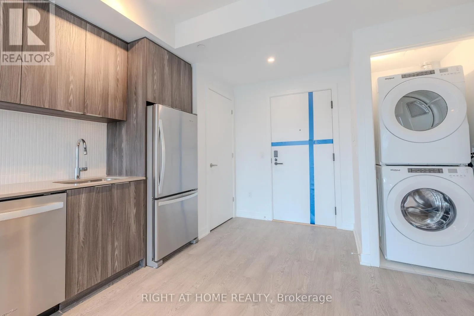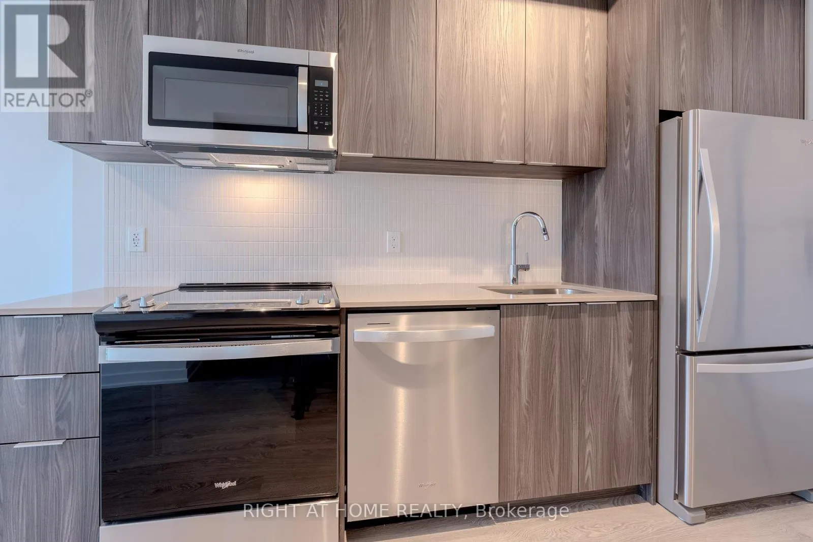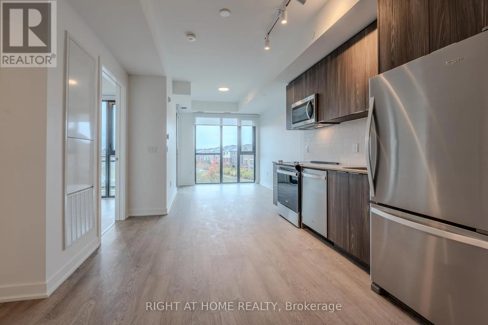 Thompson Rd S and Louis St Laurent Ave Experience upscale living - a modern haven designed for comfort and style! Enjoy bright, airy interiors with soaring 9' smooth ceilings, high-efficiency windows with roller shades, and sleek single-plank laminate floors throughout. The gourmet kitchen boasts quartz countertops, stainless steel appliances, and elegant finishes, while the spa-inspired bathroom offers porcelain tile and modern fixtures. Step out to your private balcony or terrace for fresh air and relaxation, and enjoy the convenience of in-suite laundry, smart thermostat climate control, and included parking and locker. Perfect for those seeking luxury, functionality, and a touch of sophistication in one of Milton's most desirable communities! (id:27476)
