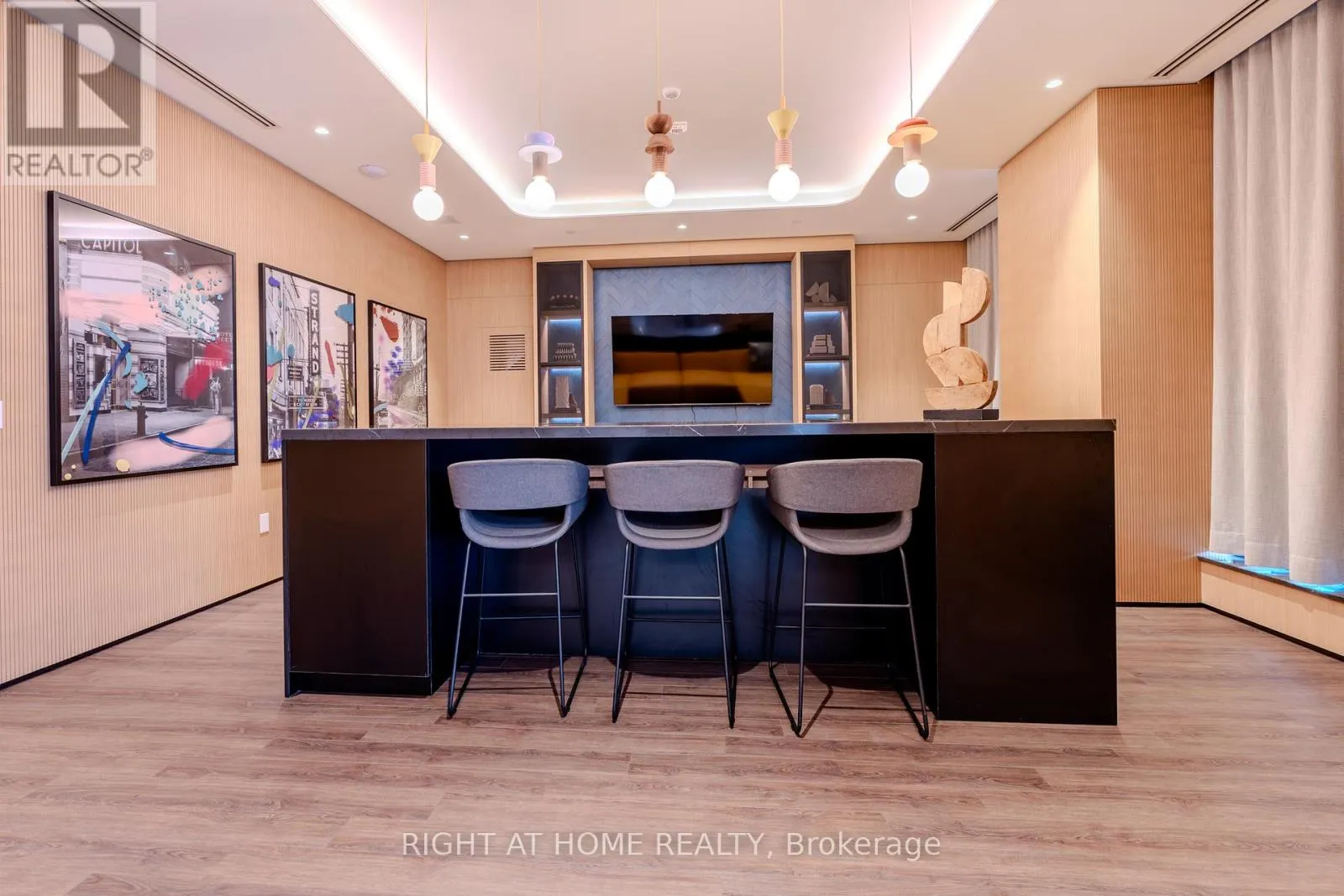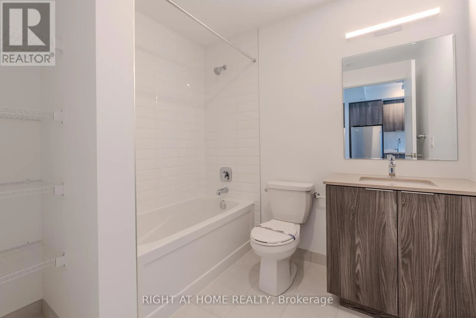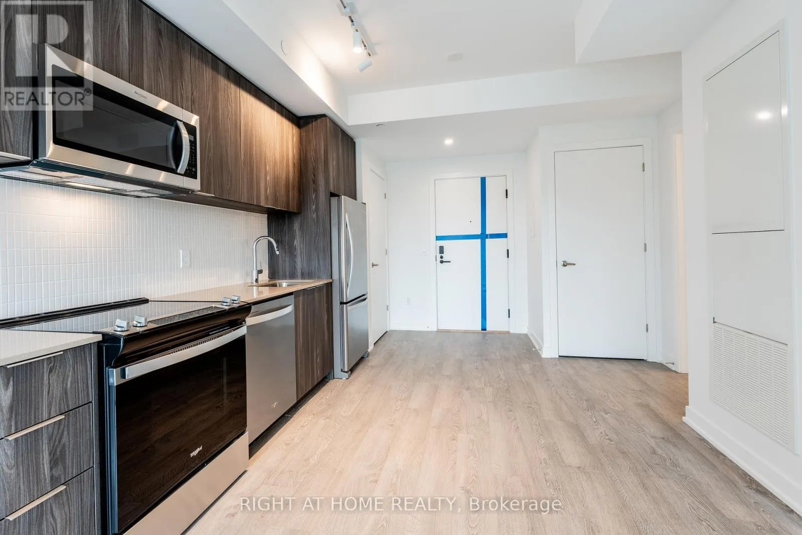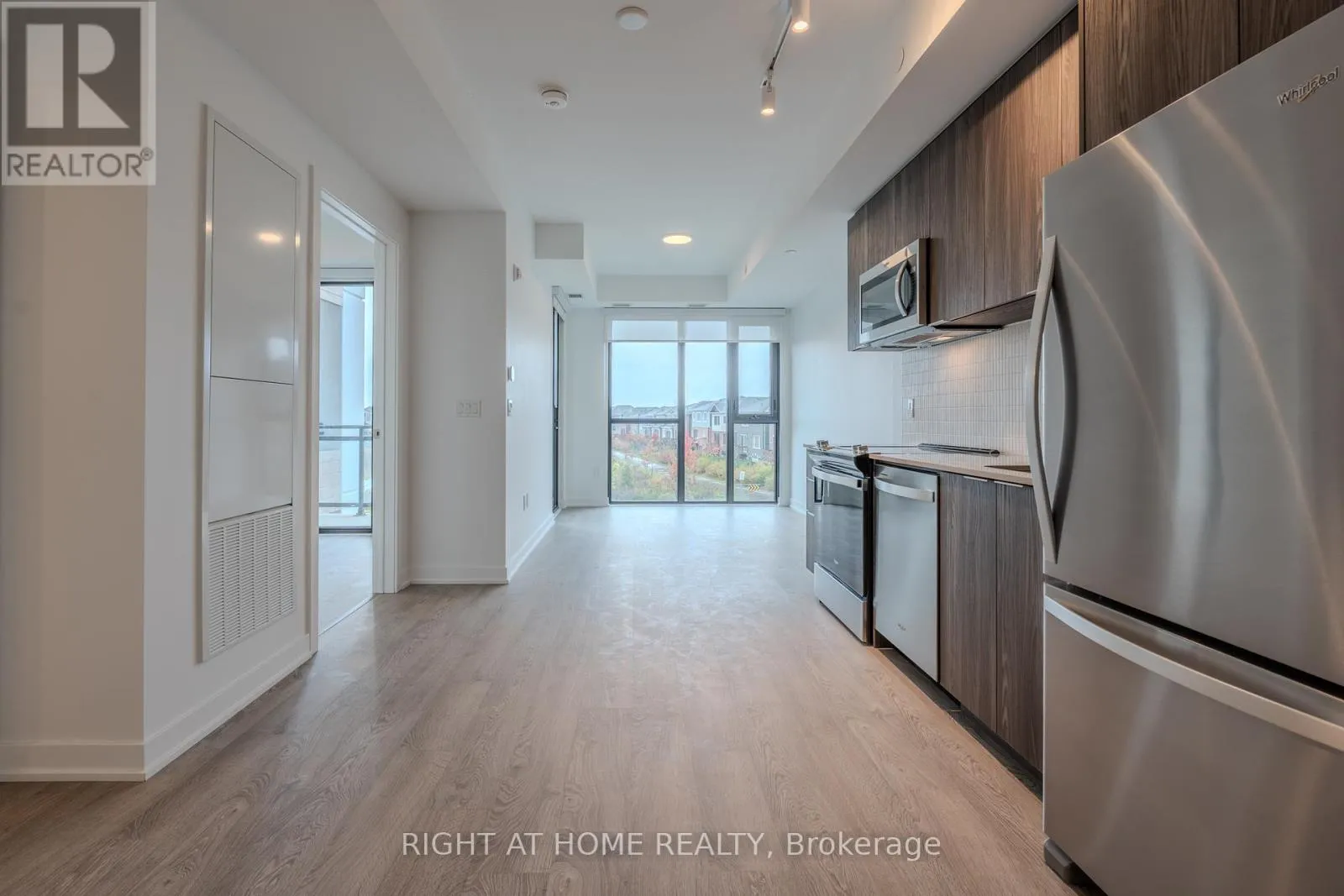 Thompson Rd S and Louis St Laurent Ave Experience upscale living - a modern haven designed for comfort and style! Enjoy bright, airy interiors with soaring 9' smooth ceilings, high-efficiency windows with roller shades, and sleek single-plank laminate floors throughout. The gourmet kitchen boasts quartz countertops, stainless steel appliances, and elegant finishes, while the spa-inspired bathroom offers porcelain tile and modern fixtures. Step out to your private balcony or terrace for fresh air and relaxation, and enjoy the convenience of in-suite laundry, smart thermostat climate control, and included parking and locker. Perfect for those seeking luxury, functionality, and a touch of sophistication in one of Milton's most desirable communities! (id:27476)