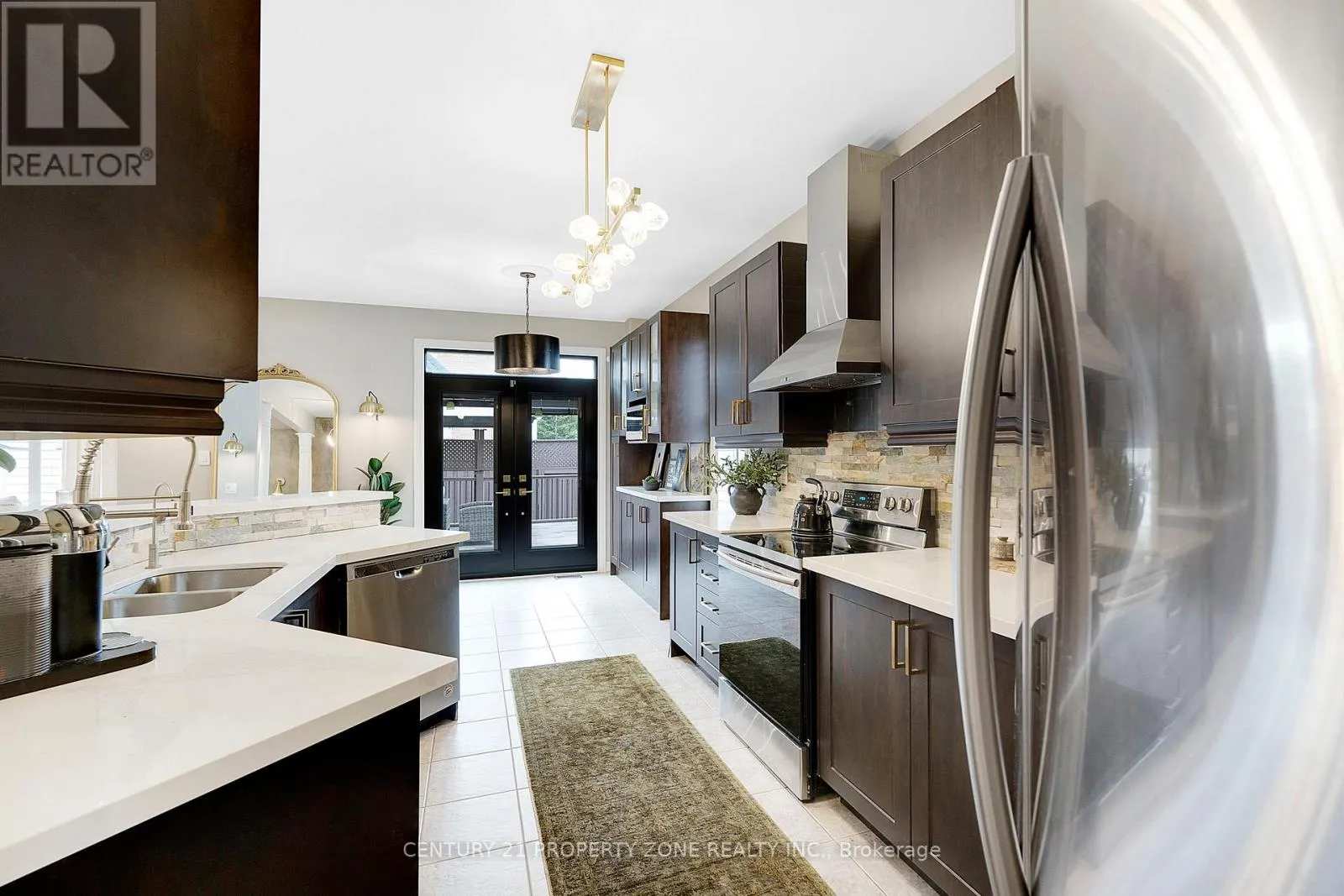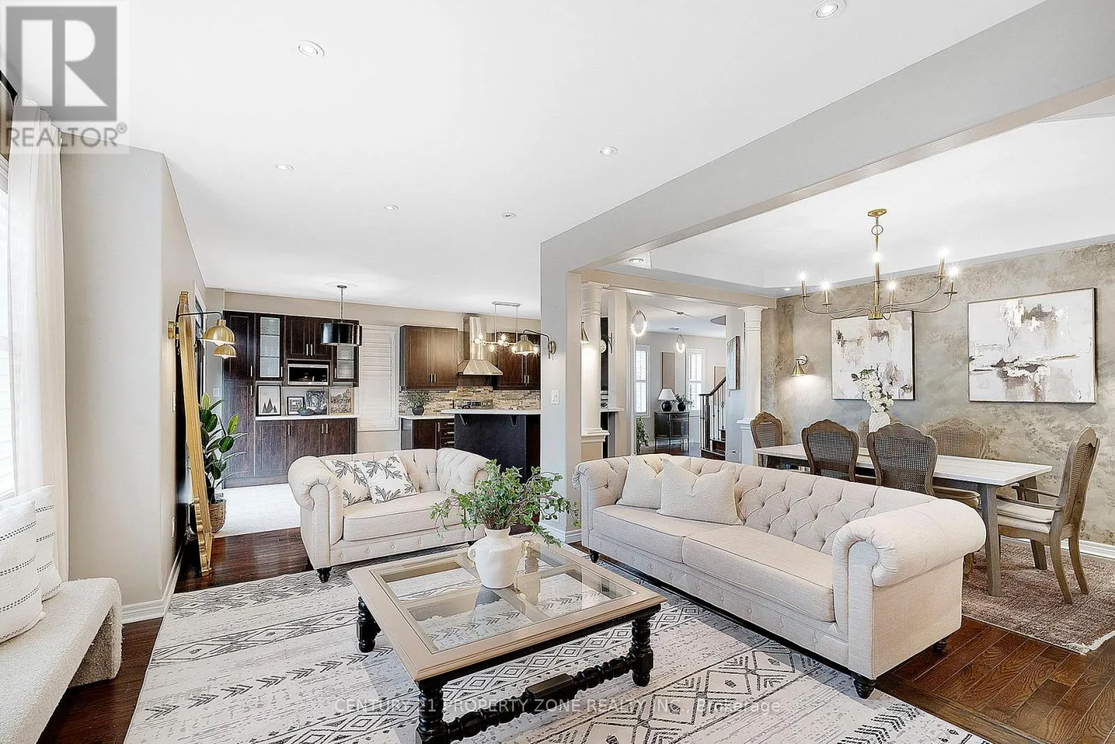 Main St & Scott Blvd Welcome to this stunning corner-lot detached home in one of Milton's most desirable neighborhoods. This beautiful residence sits proudly on a premium corner lot and features a double car garage, a bright and spacious floor plan, and countless upgrades throughout. As you enter, you're greeted by a welcoming foyer that opens to a separate family room and a large, sun-filled living area, both designed to create the perfect atmosphere for everyday living and entertaining. The formal dining area offers ample space for family dinners and gatherings, while the upgraded extended kitchen stands out with its sleek modern finishes, quartz countertops, stainless steel appliances, and plenty of cabinetry for extra storage. Upstairs, the home continues to impress with a second living area on the 1.5-level floor, ideal as a media room, study space, or cozy retreat. The entire home features California shutters, providing a clean and contemporary touch while maintaining privacy and light control. The upper level hosts four spacious bedrooms, each with custom-designed closets offering thoughtful organization and generous storage. The loft area adds flexibility, perfect for a home office or play area. The fully finished basement expands the living space even further with a modern kitchen, a full bathroom, and an open-concept recreation area - an excellent setup for in-laws, extended family, or guests. Step outside to enjoy the beautifully landscaped backyard, complete with an oversized deck that's perfect for summer barbecues, family gatherings, or simply relaxing outdoors. Ideally located close to top-rated schools, scenic parks, shopping, restaurants, the Milton GO Station, Highway 401, and the upcoming university campus, this home truly offers living with convenience. Recent Upgrades Include : Roof (2024), Furnace & A/C (2023), Updated Carpet (2024), New backyard door, Custom closets, Coffered ceilings. (id:27476)