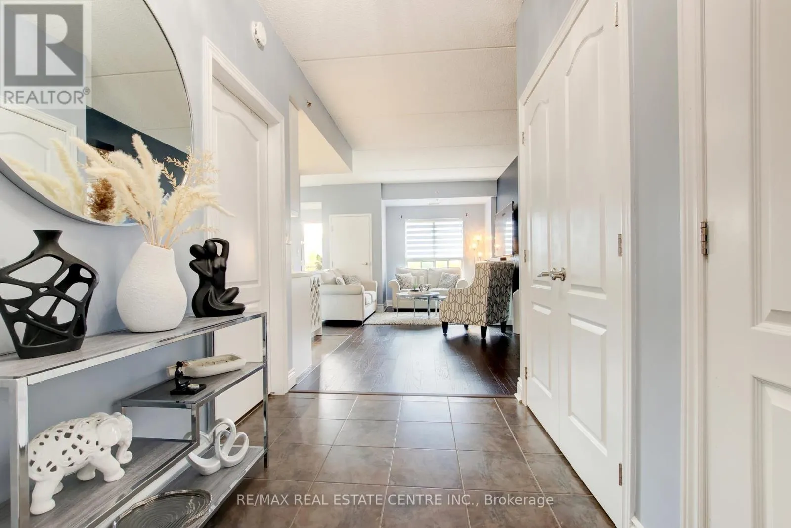Cross Streets: Thompson Rd. S./Derry Road. ** Directions: Thomson Road South to Costigan Road. Welcome to 1419 Costigan Road, #305 in the heart of Milton - a beautifully updated and well maintained 1,274 square foot unit offering a rare blend of space, upgrades and unobstructed views. Step inside this bright 2+1 bedroom, 2-bath unit (with a versatile "+1" den easily serving as a guest room or home office) and you'll immediately feel the generous size and lovely floorplan. The open-concept living and dining area is flooded with natural light, featuring hardwood floors, 9' ceilings, and a walk-out to your private balcony where you can wind down with a book and enjoy views of the greenspace. The well-appointed kitchen flows seamlessly into the living space, and features granite counters, backsplash, undermount sink, stainless steel appliances and ample cabinet space. Two generous sized bedrooms including an oversized primary with a massive walk-in closet and a convenient 3-piece ensuite bath. The den is not your average den, it is a spacious (120 square feet) separate room that offers flexible usage as an additional space for guests, a private home office, or just a large storage space. Convenient in-suite laundry with built-in cabinetry. Two designated parking spaces (1 underground and 1 surface level), plus a separate storage locker. Located in the beautiful town of Milton, you are never far from whatever you might need. Whether it's quick access to amenities, or a day spent on a nearby nature trail, Milton offers a range of amenities for all lifestyles. Building amenities include an exercise room, party room, and plenty of visitor parking. Just minutes to the 401, 407, GO train and Milton Transit. Walking distance to schools, parks, restaurants, and shopping. A peaceful retreat, right at home, don't miss this one. (id:27476)