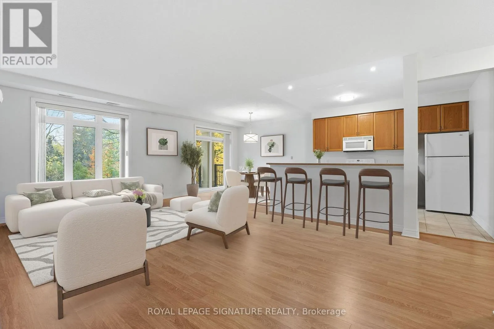 Ontario St & Laurier Ave Tucked Away in the Heart of Old Milton. 1,335sqft, this rarely offered large corner unit - 2-bedroom condo is finally available! Nestled in one of Old Milton's most sought-after buildings, this exclusive pocket features only one condo building and neighbours the 55+ bungalow community, giving it a truly private and welcoming feel. Surrounded by mature trees and ravine views, this location is loved for its peaceful setting - yet it's just steps to the shops, restaurants, and charm of Milton. Inside, you'll find the most desirable layout in the building, featuring a bright open-concept kitchen and spacious living area. The kitchen includes a large island with breakfast bar - perfect for casual dining or entertaining - and the laundry is conveniently tucked away from the main living space with amazing views. This thoughtfully designed 2-bedroom layout offers plenty of storage and natural light through large windows. The primary bedroom features two closets and a private ensuite, while the second bedroom includes a generous walk-in closet. Step out onto your private balcony with no neighbouring balconies on either side - offering total privacy and unobstructed ravine views of lush, mature trees. Two parking spaces, separate storage locker, Hydro/ Water included with fees - this home truly has it all. A rare find in Milton - space, nature, and location all in one. (id:27476)