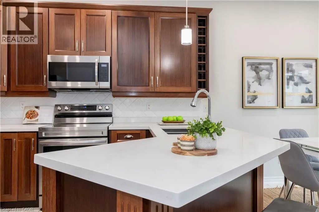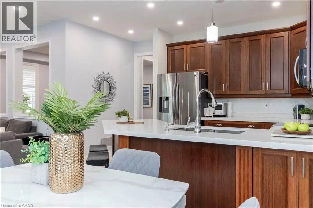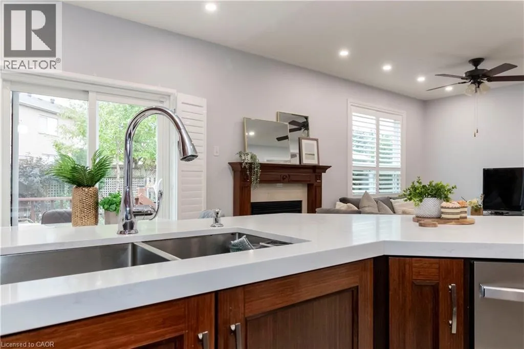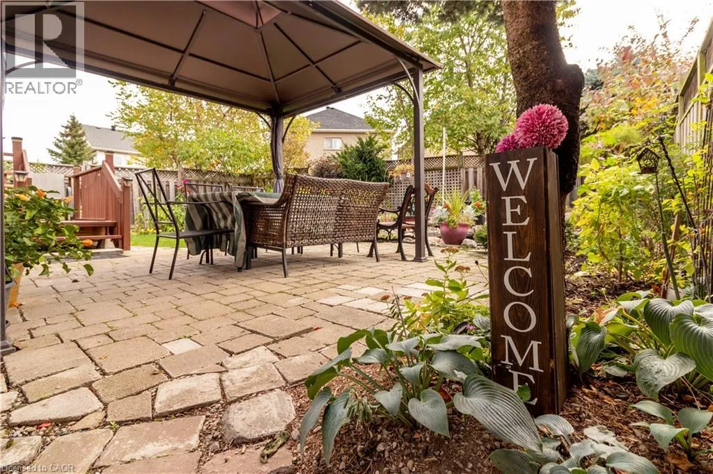 Main and Maple Beautifully Updated Family Home in a Desirable Milton Neighbourhood! Pride of ownership shines in this move-in ready 3-bedroom, 4-bath home located on a quiet, family-friendly street in one of Miltonâs most sought-after areas. Recent upgrades include brand new hardwood floors, a modern staircase, and triple-pane windows installed in 2025, including the patio door. The open-concept kitchen features quartz countertops, stainless steel appliances, and direct access to the backyard, overlooking a cozy family room with a gas fireplace. Upstairs, the primary suite offers a peaceful retreat with a walk-in closet, granite vanity, separate shower, and corner soaker tub. Two additional bedrooms and a 4-piece bath complete the level. The finished basement includes a 3-piece bathroom, cold storage, and fresh paintâperfect for a rec room or guest suite. Step outside to a fully fenced backyard with a new deck, gazebo, and serene pondâideal for relaxing or entertaining. Additional highlights include custom shutters, a front porch enclosure, an insulated 2-car garage, and roof shingles replaced in 2019. Close to schools, parks, shopping, and major commuter routes, this beautifully maintained home offers style, comfort, and convenience. (id:27476)