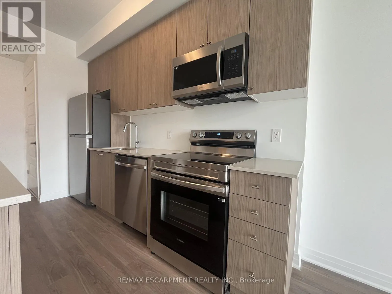 Cross Streets: Tremaine Rd. ** Directions: Tremaine & Louis St Laurent. Rare opportunity to rent a corner unit at Mattamy's latest luxury project, 'Soleil'. This bright and spacious unit has beautiful views of the Escarpment and boasts one bedroom plus den. Thousands spent on upgrades include a custom kitchen islands with extra cabinet space, upgraded counter tops, engineered hardwood flooring throughout, and stainless steel appliances. Rent includes very large underground parking spot and one storage locker. Building amenities include: fitness studio, yoga room, meeting rooms, party hall, conference rooms, rooftop patio lounge area with fire tables, and barbecues. Perfectly situated at Britannia and Tremaine, a must see! Photos are from a previous listing. (id:27476)