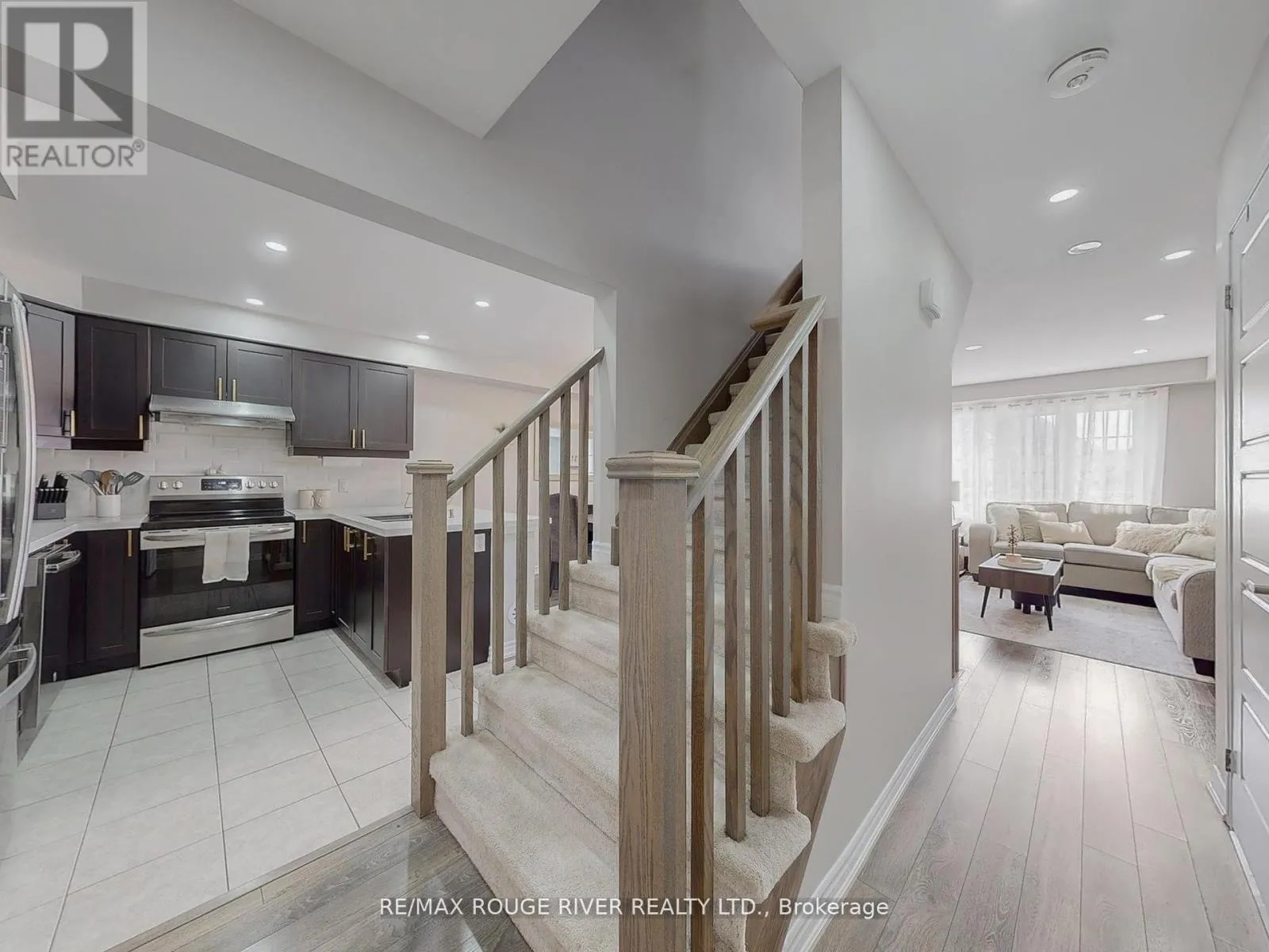 Louis St. Laurent Ave & Bronte St. S. Welcome to this immaculate three storey freehold townhome in Milton's Hawthorne south enclave. All brick exterior with coveted three parking. This bright, beautifully maintained home offers 3 bedrooms, 3 bathrooms, and a versatile main floor den with direct garage access. Laminate floors throughout. The second level features an open layout with ceiling pot lights, dining area walkout to spacious balcony and an elegant kitchen with stainless steel appliances, longer upgraded cabinets and a breakfast bar. Upstairs you will find three spacious bedrooms and two full baths. No sidewalk at front. Close to top schools, parks, trails, kelso conservation and many other amenities. (id:27476)