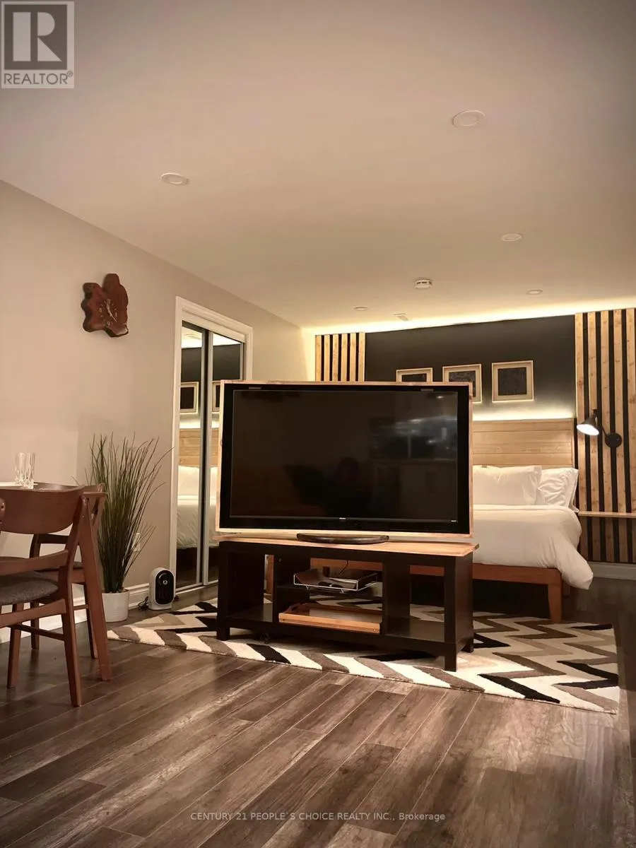 Thompson and Derry Fully furnished Basement Bachelor apartment w/ King bed, Living room, Kitchen, Den, 3 Pc Bath, Laundry, and separate entrance. Come with one driveway parking, and 30% utilities. Includes cooking wares, utensils, bedding and TV. Comes with Separate Laundry (id:27476)