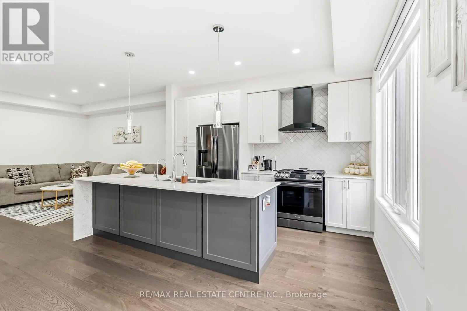 BRITANNIA RD & HWY 25 Stunning semi-detached home built by Country Homes, less than 5 years old and impeccably maintained-feels like new! Featuring 3+1 bedrooms, 3.5 baths, Separate Family Rm, and a spacious 2667 sq ft layout including a 647 sq ft builder-finished basement with a separate entrance, bedroom, kitchen, and full bath-ideal for in-laws or rental potential. Elegant double door entry opens to a bright, open-concept main floor with soaring 9' ceilings, oak staircase, and over $50K in builder upgrades, including quartz countertops, extended-height cabinets, chimney hood fan, custom pantry, upgraded flooring, and a cozy gas fireplace. The chef's kitchen boasts a large island with BBQ gas line for indoor-outdoor entertaining. Enjoy a premium lot with extended driveway, no sidewalk, concrete patio in backyard, and large storage space in the basement. Located in a growing family-friendly neighbourhood close to schools, parks, and amenities. A perfect blend of luxury, space, and function, Must See! (id:27476)